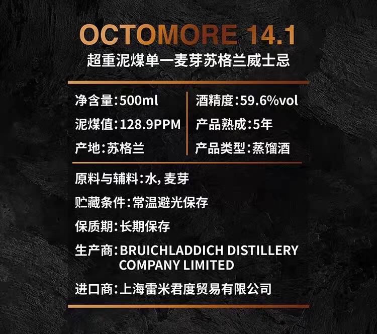 布赫拉迪泥煤怪兽14.1单一麦芽苏格兰威士忌700ml进口洋酒