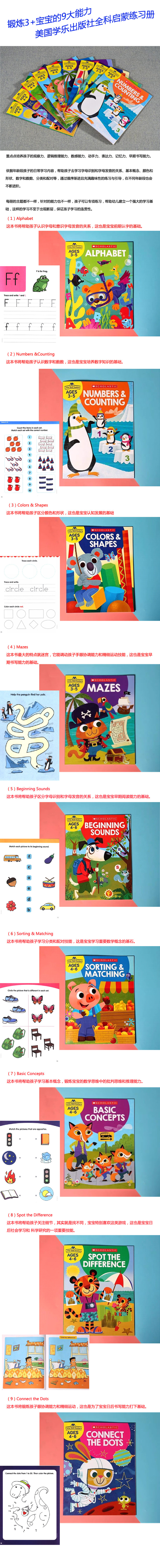 【寒假必囤·3-6岁】Scholastic 学乐幼儿练习册,锻炼孩子9大能力,适合3~6岁,循序渐进,充满趣味!(9本/套)