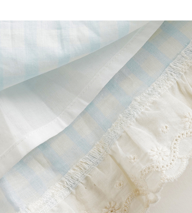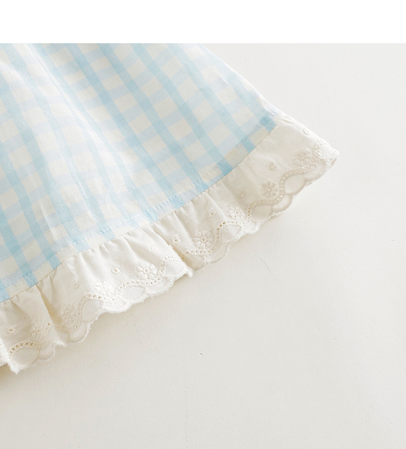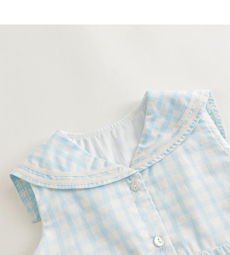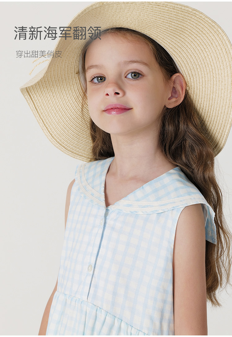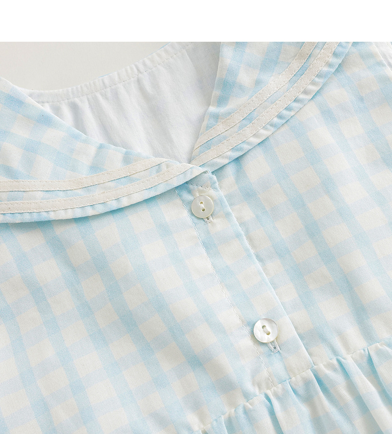 马克珍妮2024年夏装新款女童海军风格纹蕾丝花边短袖连衣裙240661