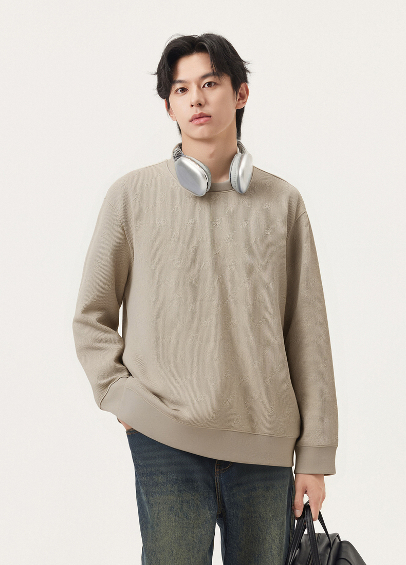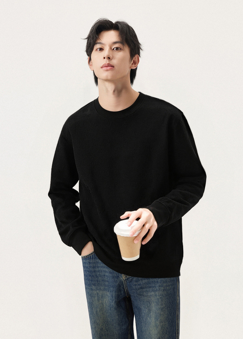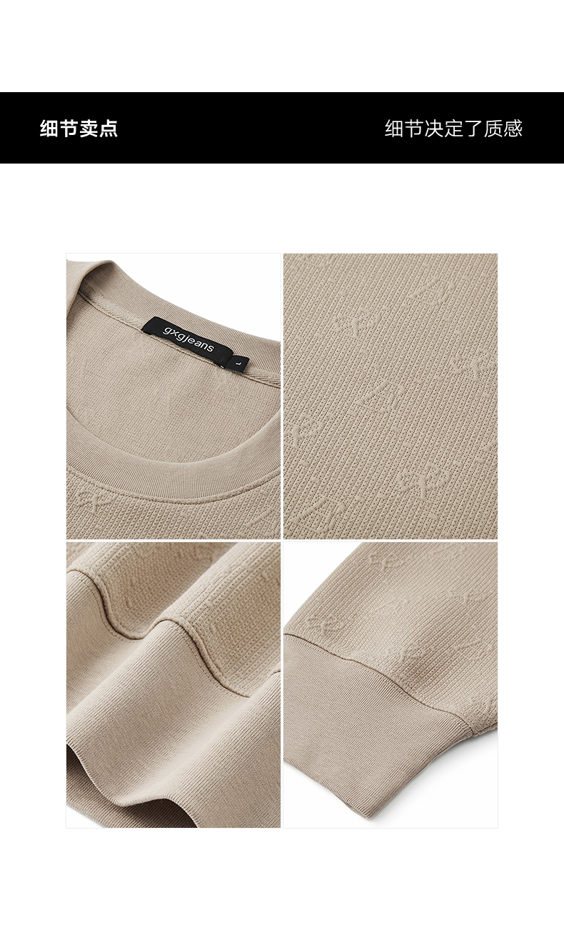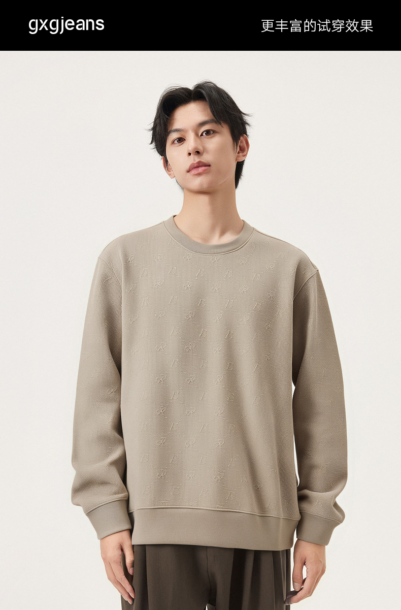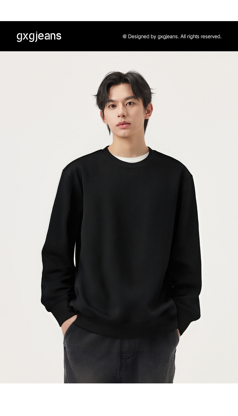 gxg.jeans男装 多色立体肌理宽松简约休闲圆领卫衣男士 25秋热卖