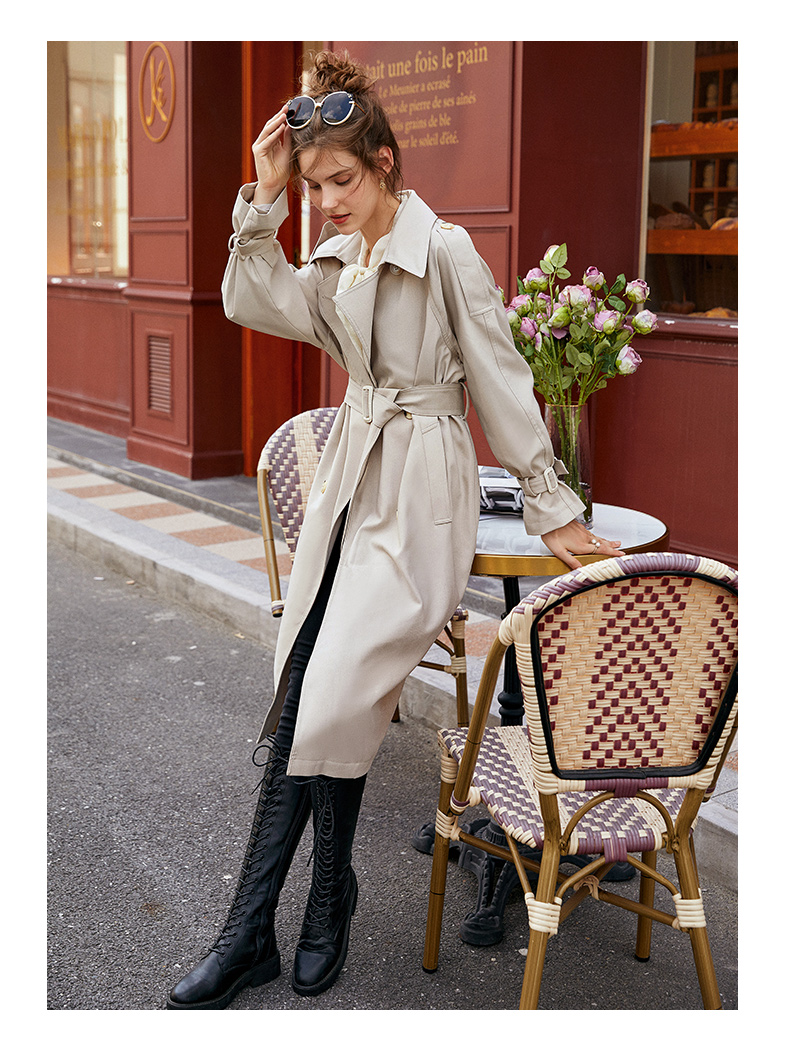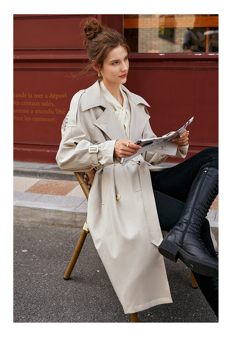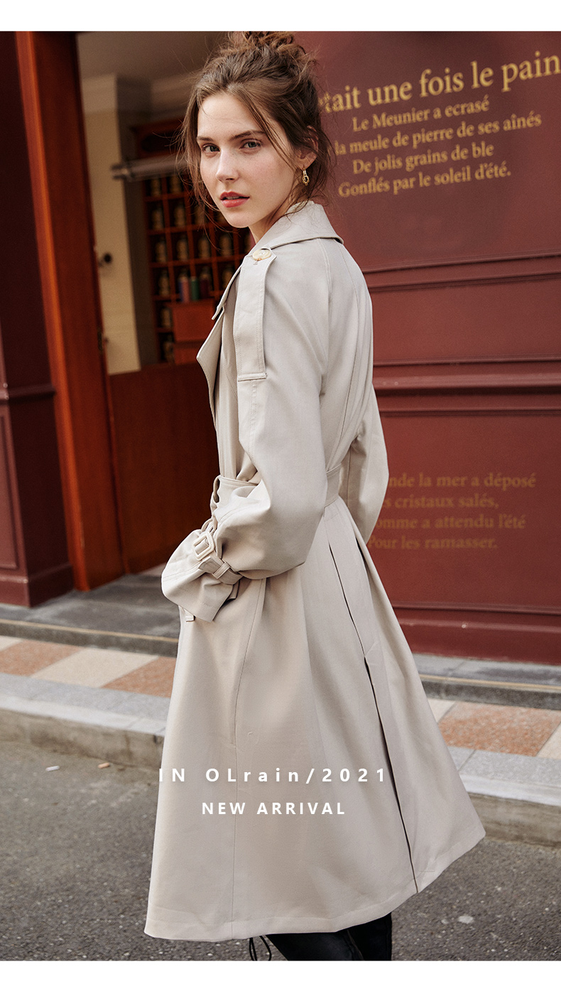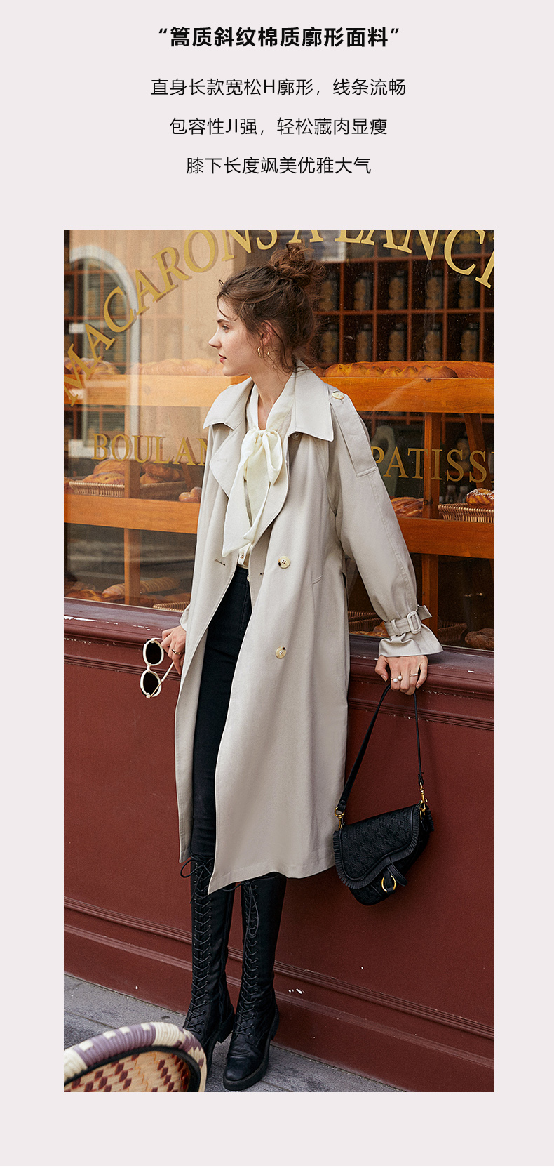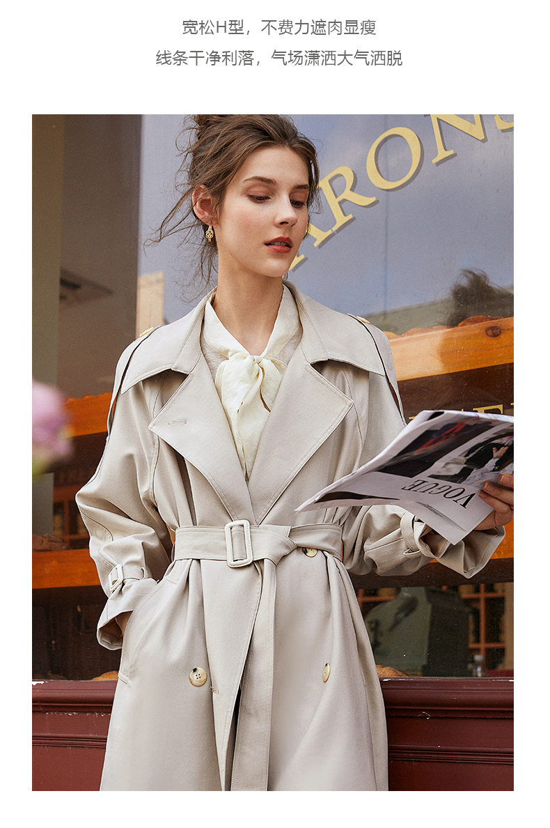 欧芮儿长款风衣外套女新款2021宽松显瘦英伦风双排扣过膝大衣