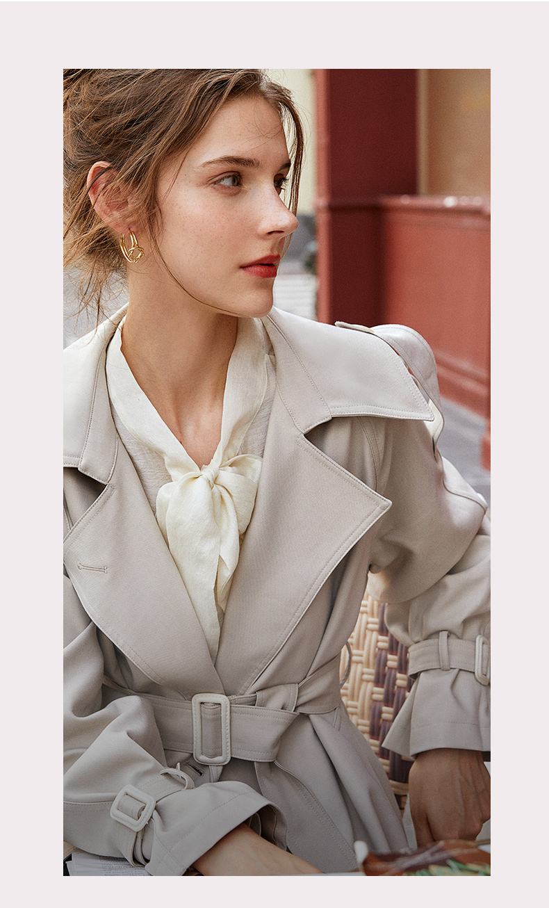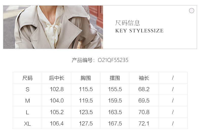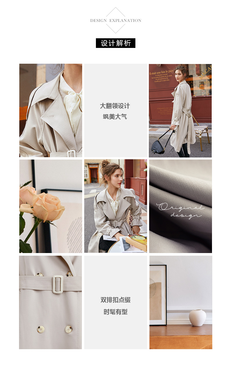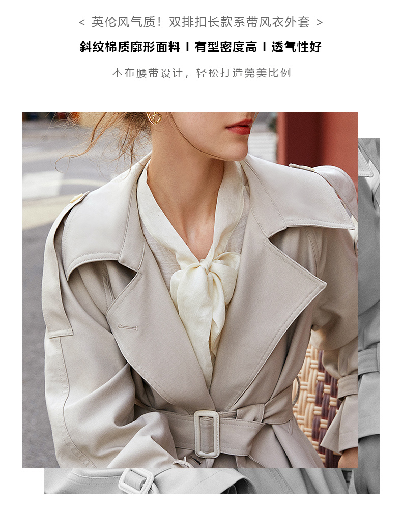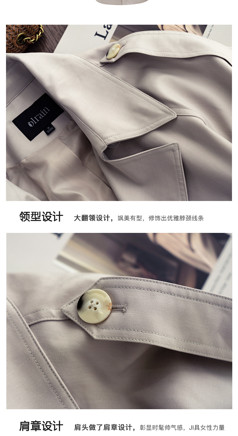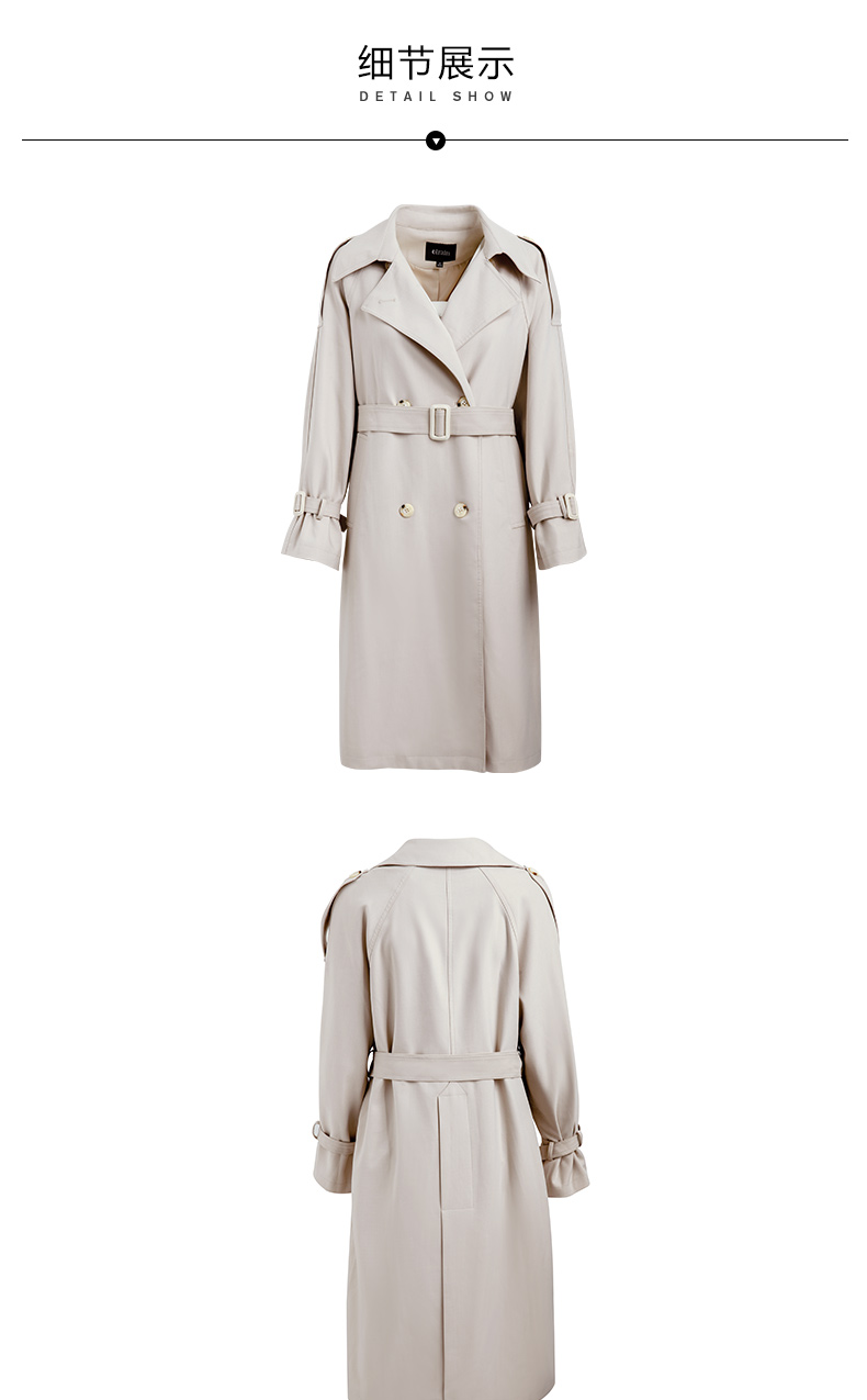 欧芮儿长款风衣外套女新款2021宽松显瘦英伦风双排扣过膝大衣