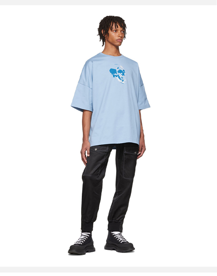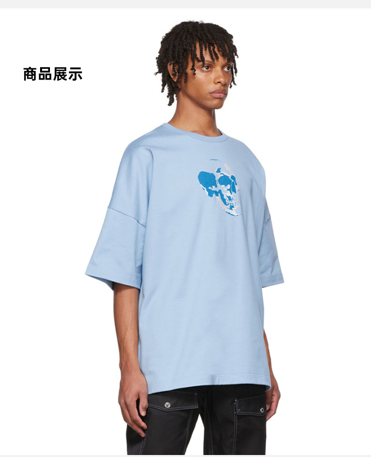 ALEXANDER MCQUEEN 亚历山大麦昆 男士骷髅印花超大款棉质圆领短袖T恤 浅蓝色 704984 QTZ07 0903