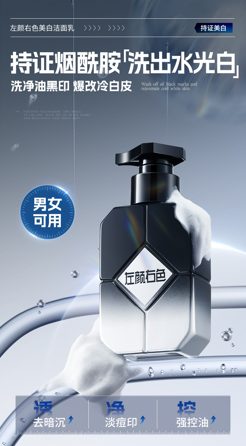 💥买即送‼冰川水💥秒杀‼【到手¥53/瓶】左颜右色 美白淡印三件套(美白洁面乳150g+烟酰胺亮肤精华液30ml+美白保湿面膜10片/盒)