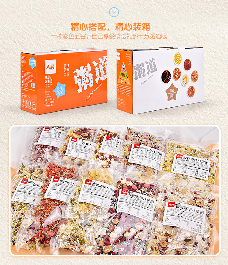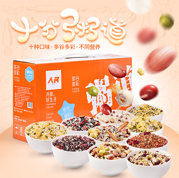 人民食品 杂粮礼盒 十种口味 五谷礼盒五谷杂粮礼盒装杂粮粥组合1.8kg
