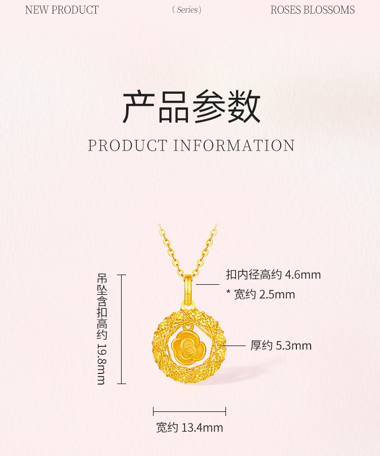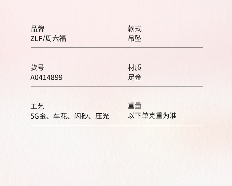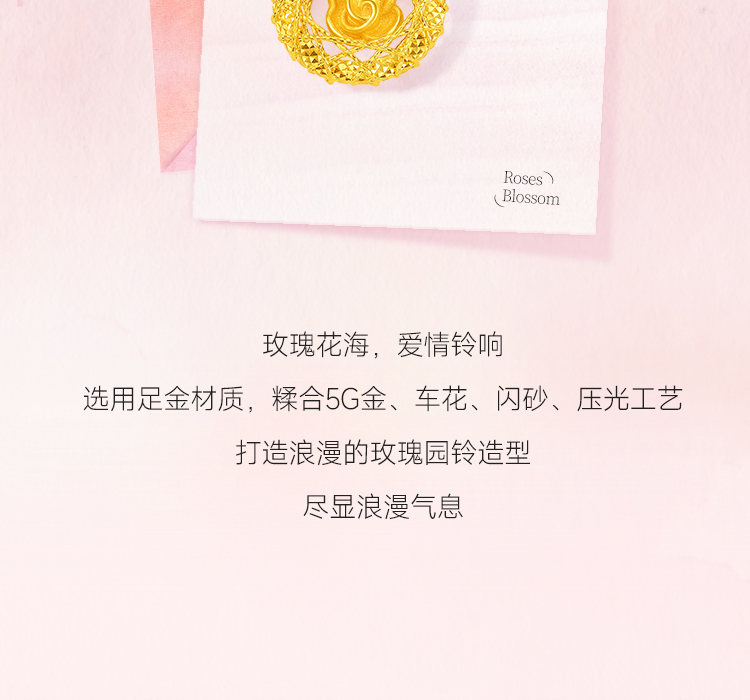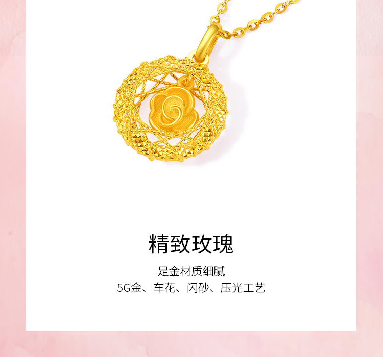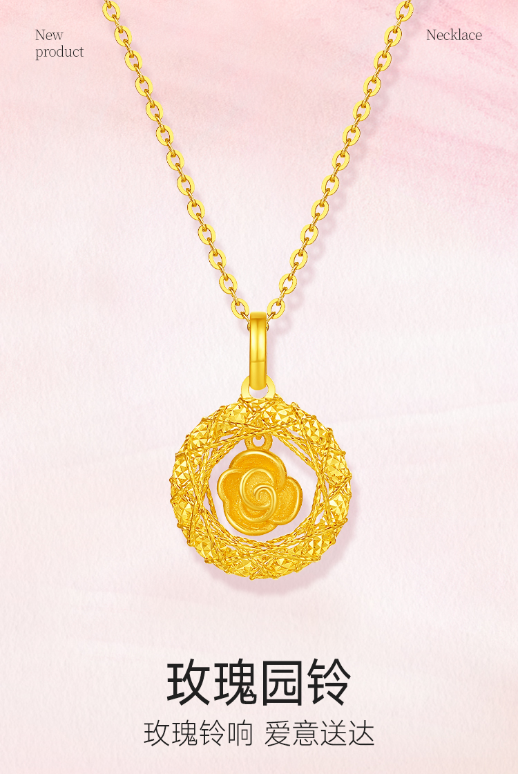 周六福5G黄金计价足金吊坠爆闪玫瑰园铃花园情人节新品情人节礼
