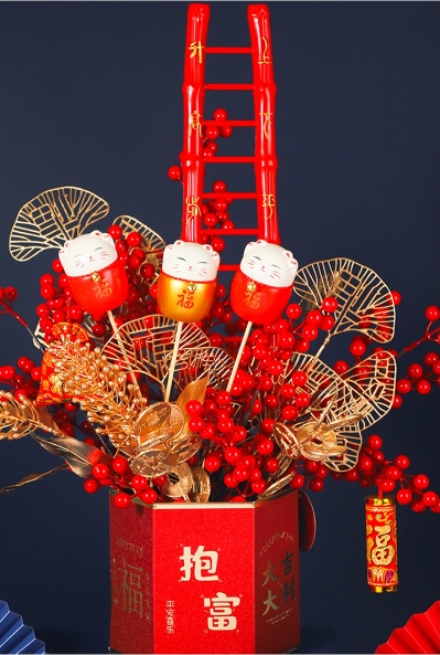 年宵系列-- 步步高升梯子摆件-招财猫