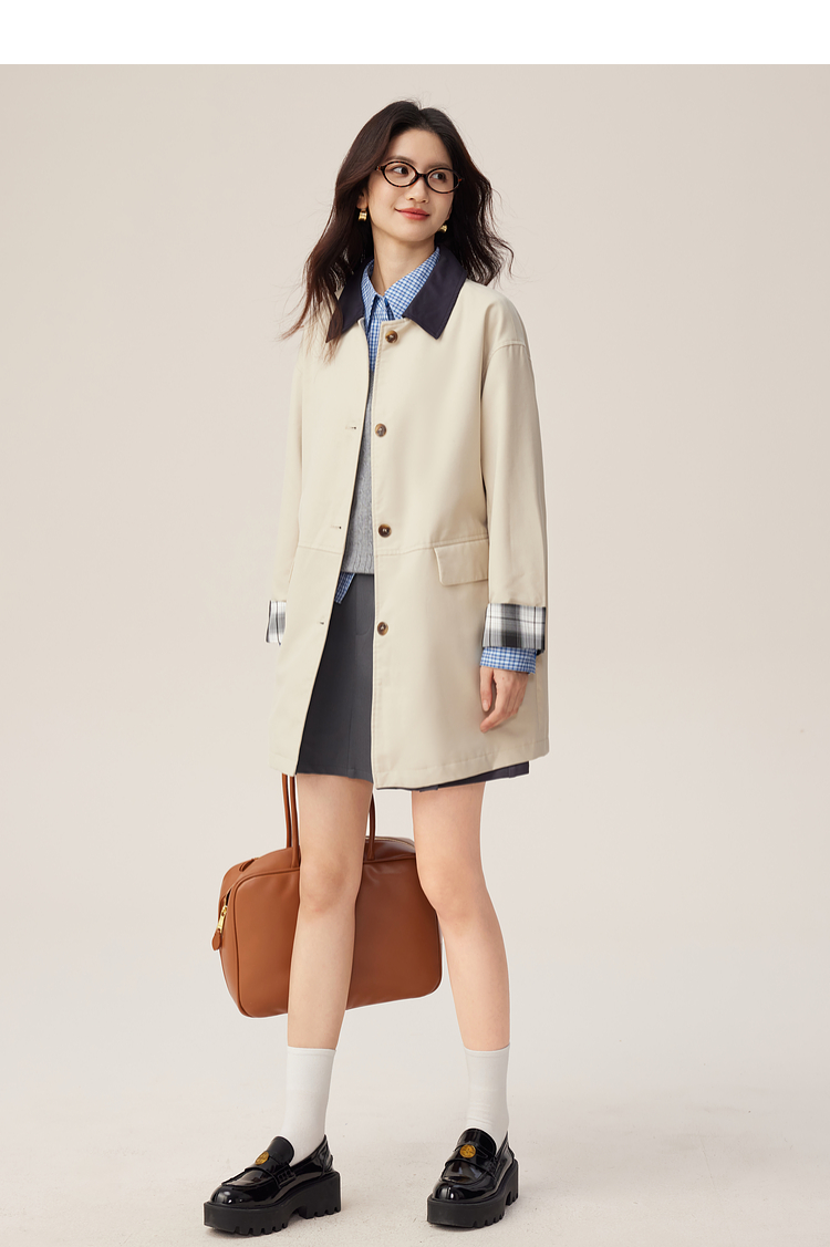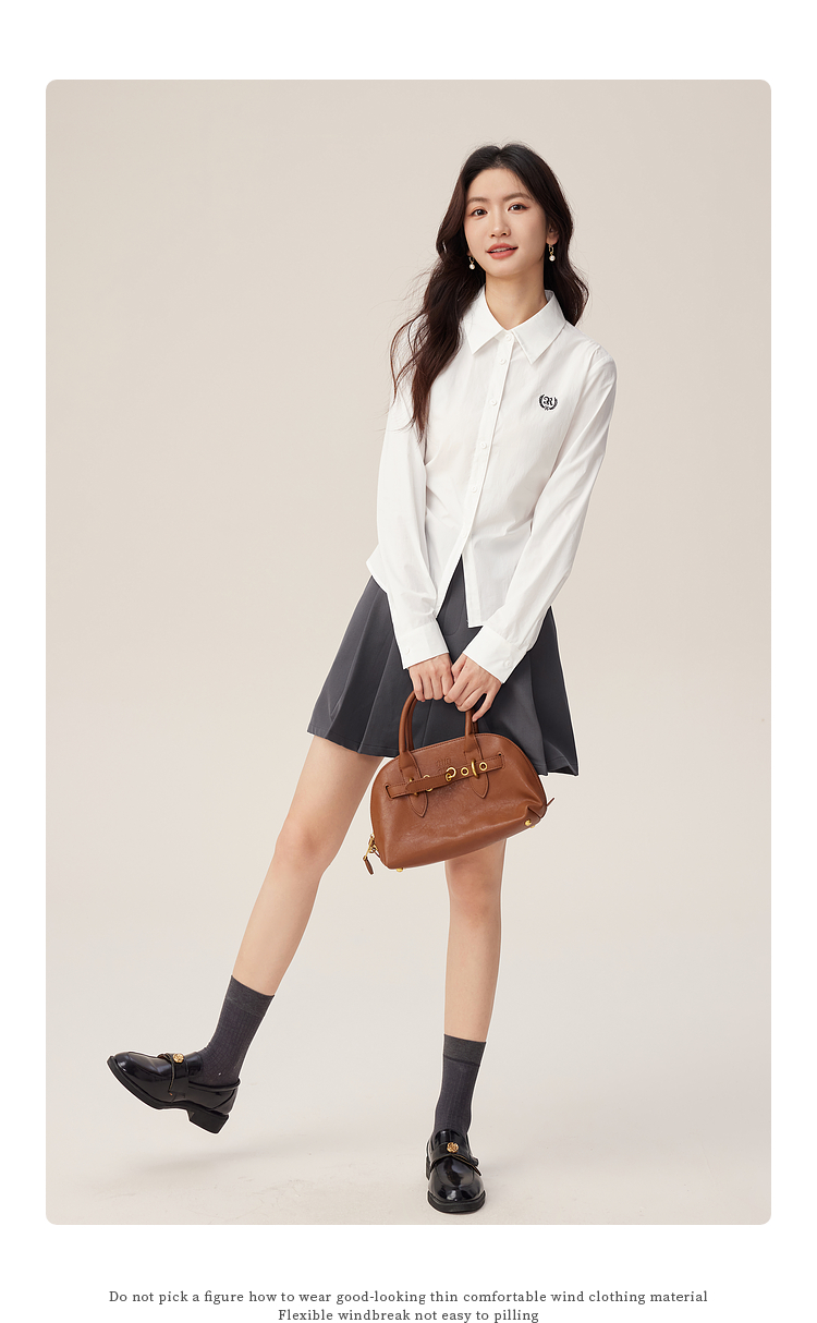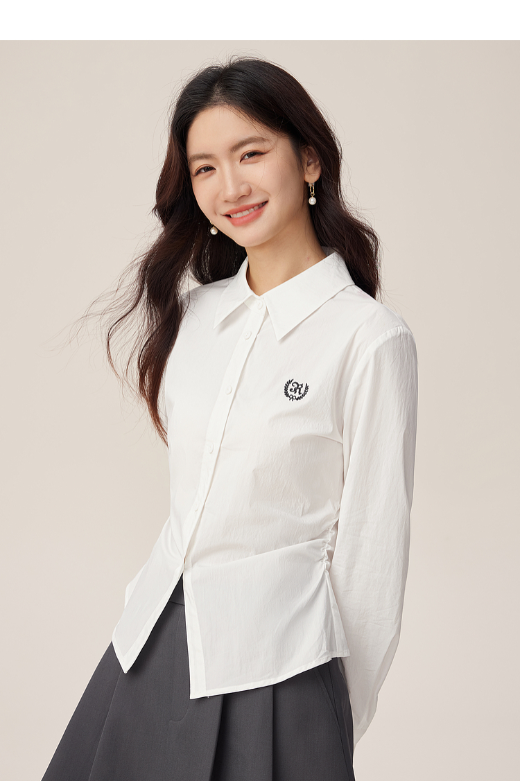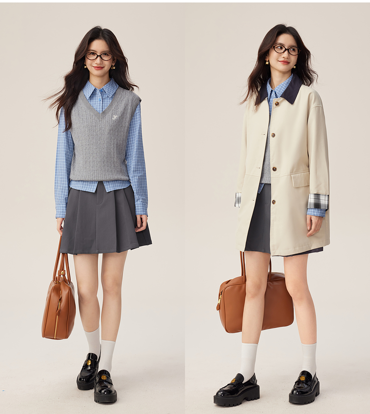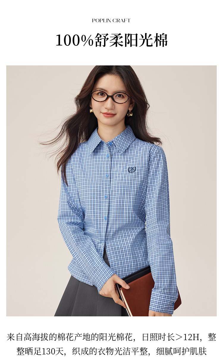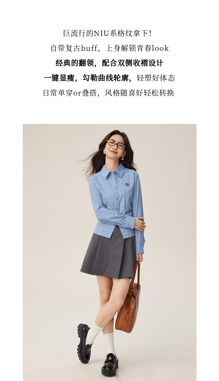 【09/03新品】熙世界【MIU系】蓝色格纹衬衫女收腰显瘦长袖衬衣上衣2025秋新款