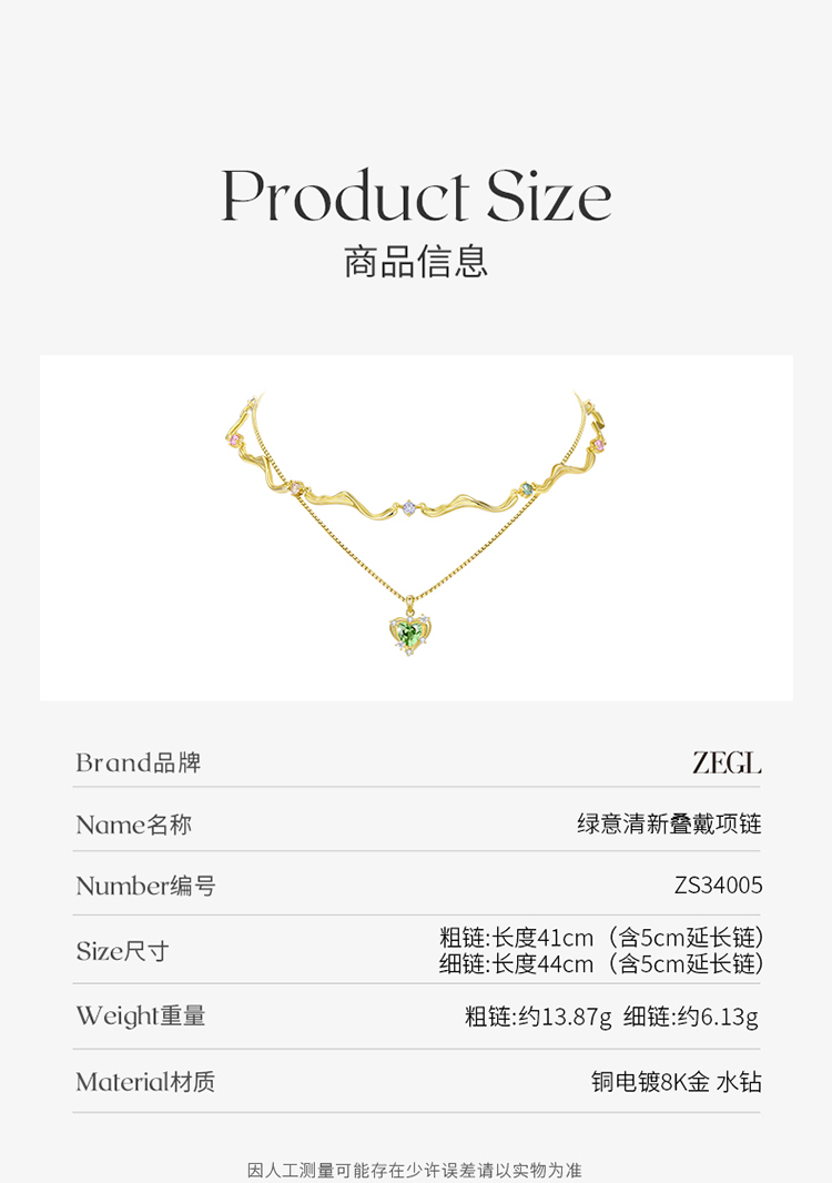 ZEGL设计师早春调色盘系列双层叠戴爱心项链女轻奢小众锁骨链配饰