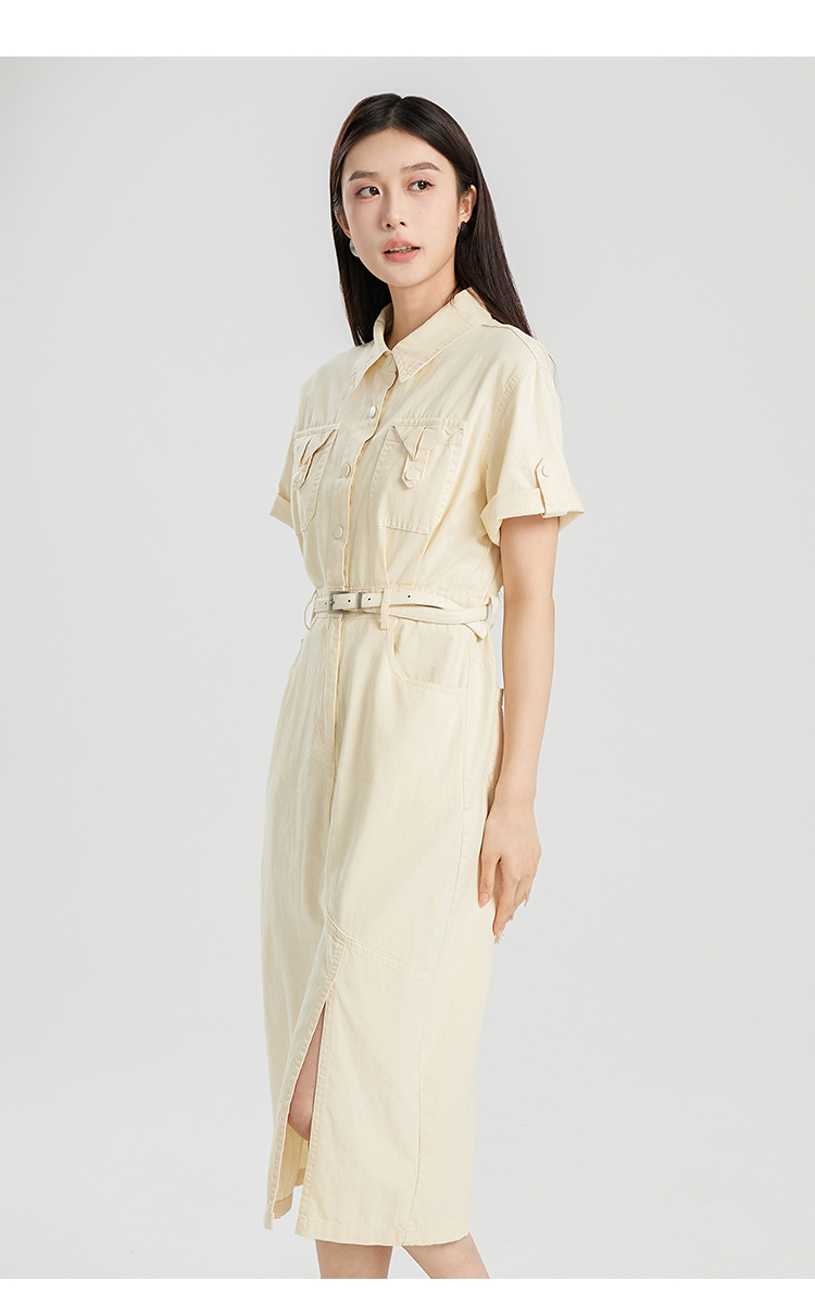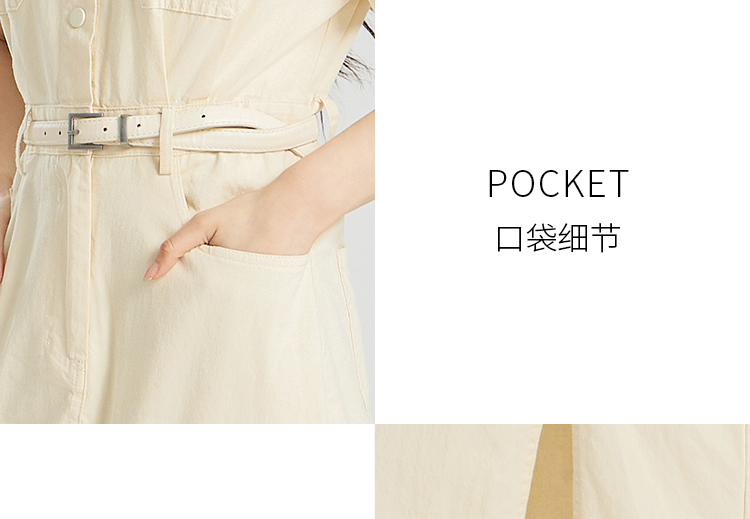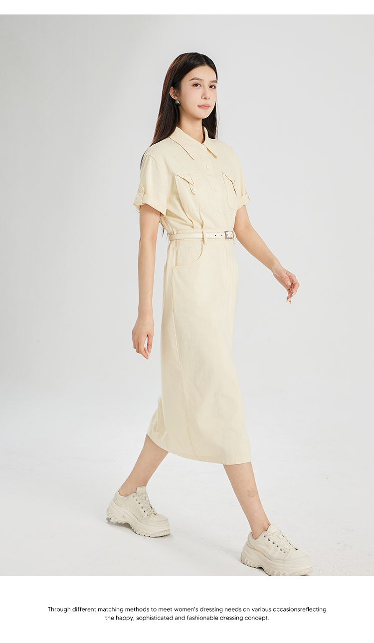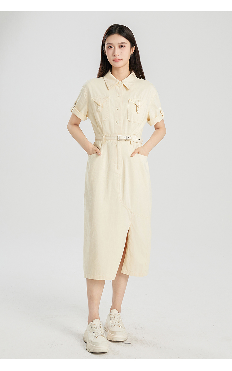 NUTS商场同款夏季杏色简约气质高腰纯棉短袖连衣裙428103408