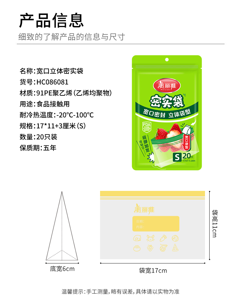 【批发】美丽雅彩唇双封口密实袋17*11cm立体袋 20个/袋