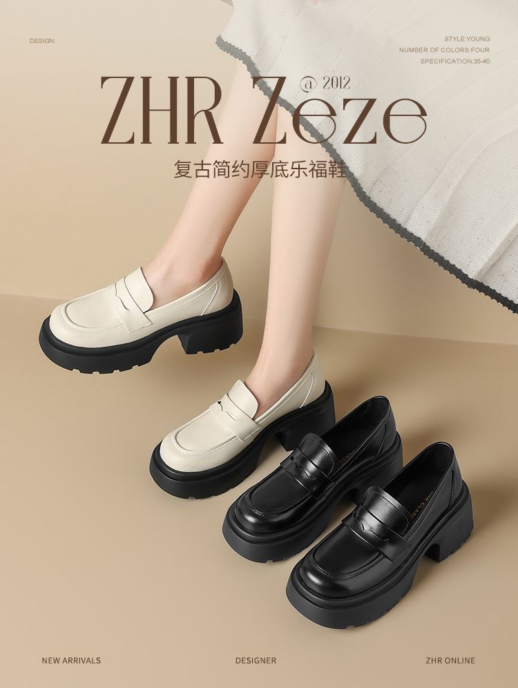 ZHR则则厚底百搭乐福鞋2024新款气质英伦单鞋松糕底小皮鞋jk女鞋