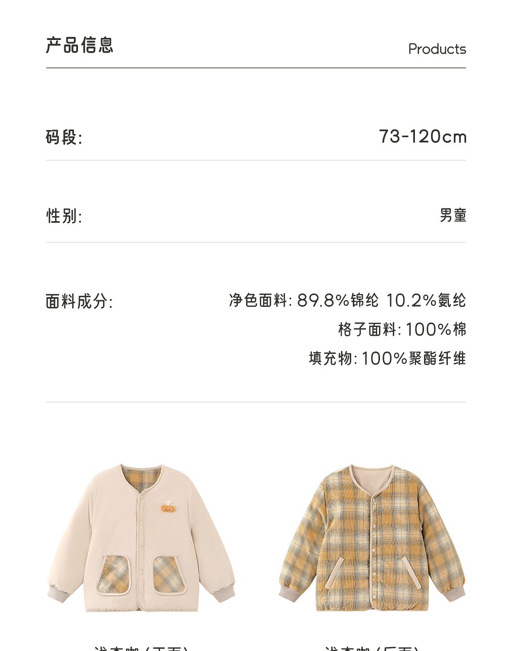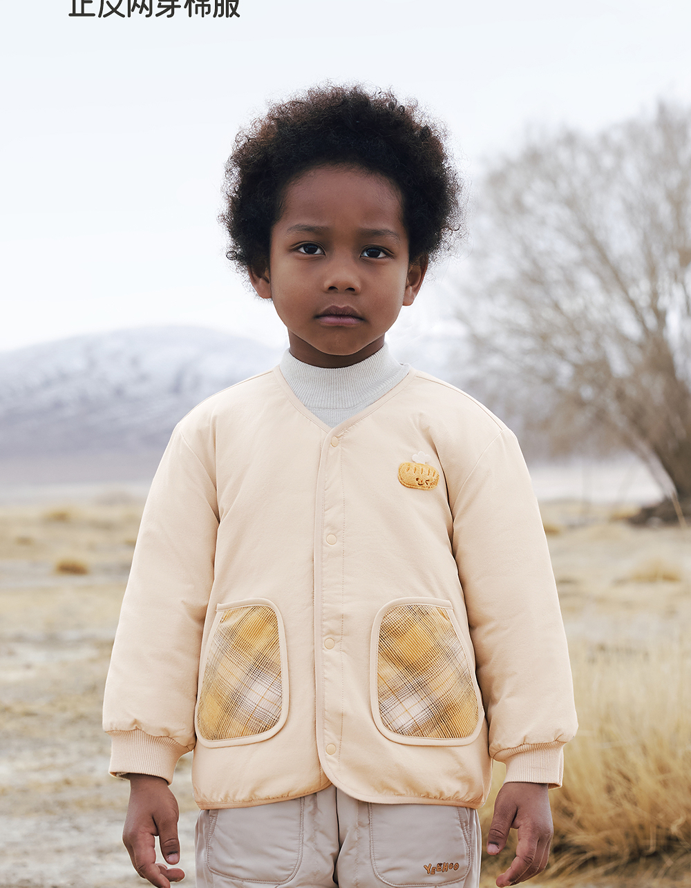 英氏男宝宝双面穿外套秋冬新款加厚保暖男童格子夹克YRWQJ4R026A