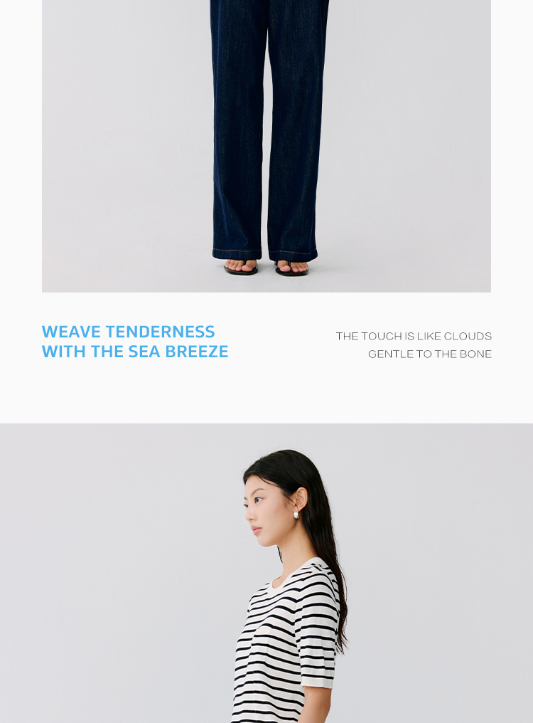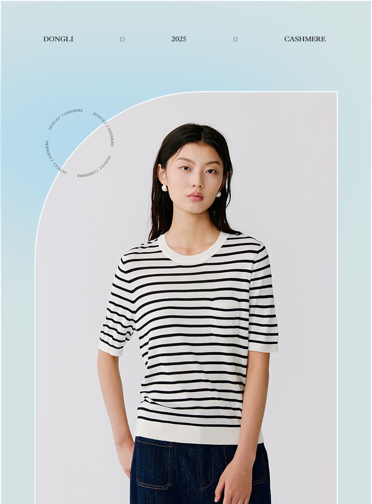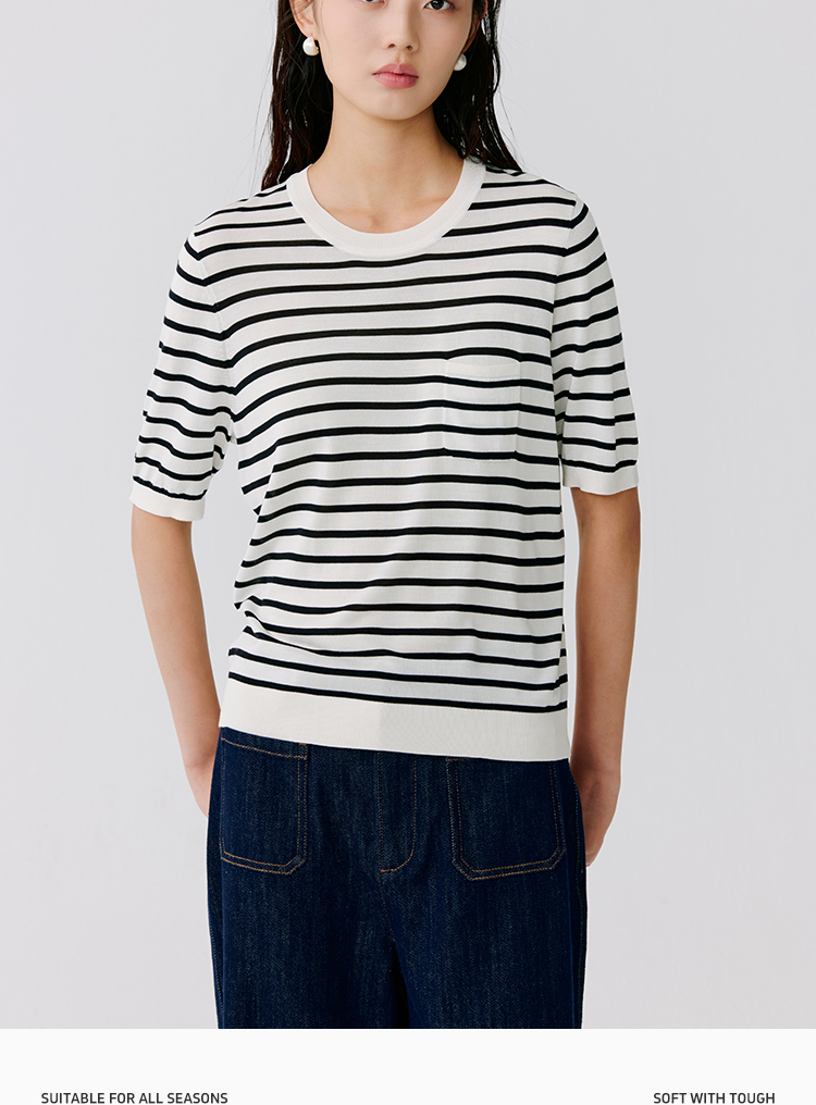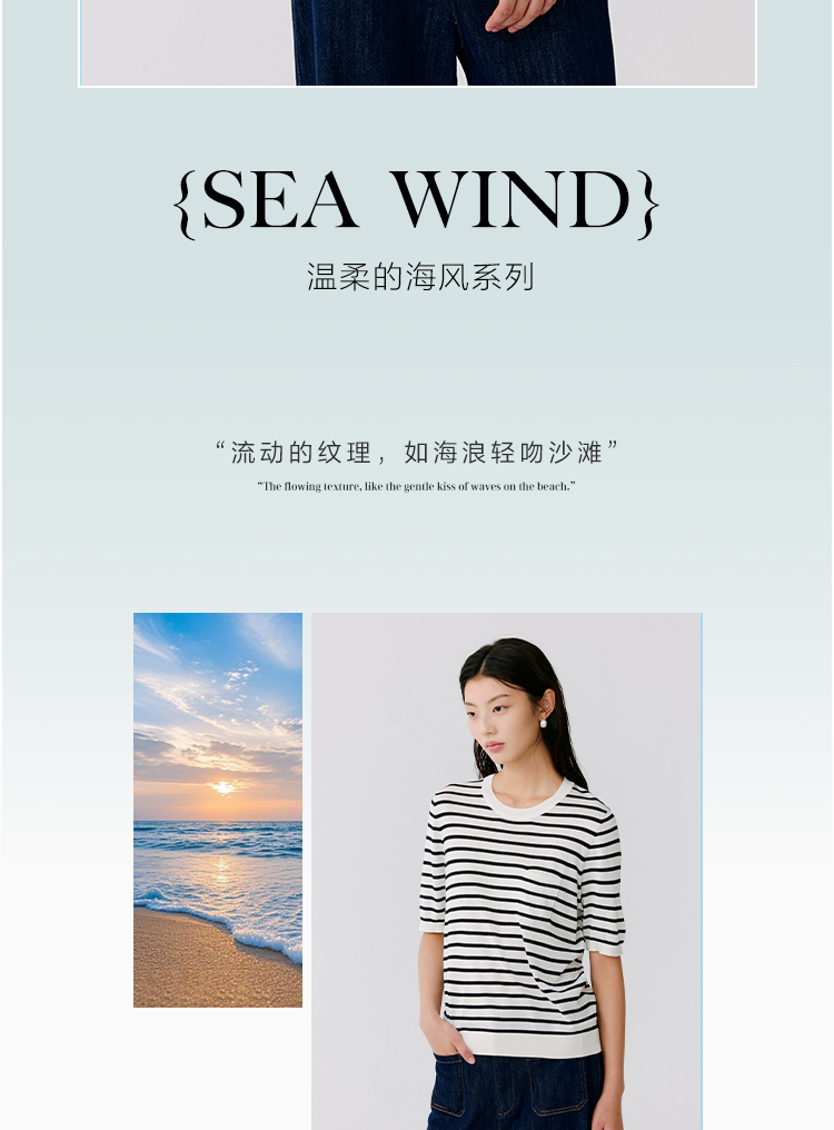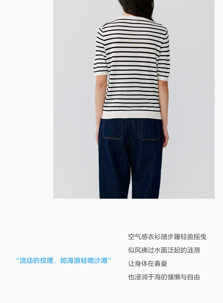 东黎 • 温柔的海风 海魂衫 桑蚕丝女士圆领彩条短袖 5223