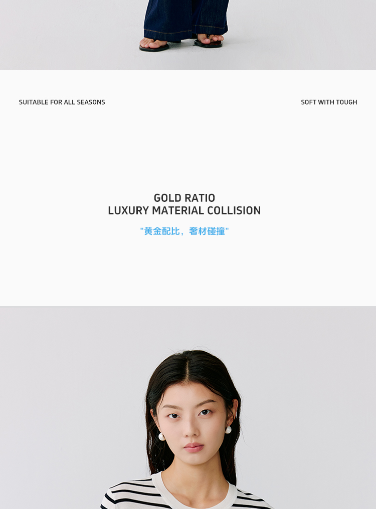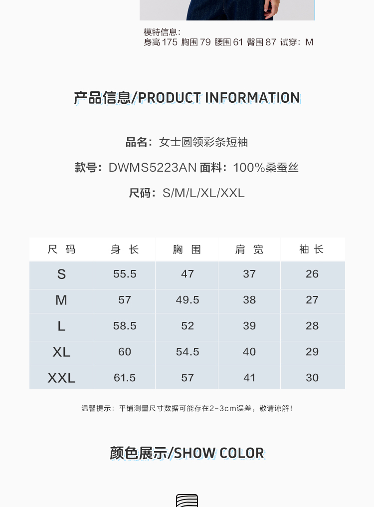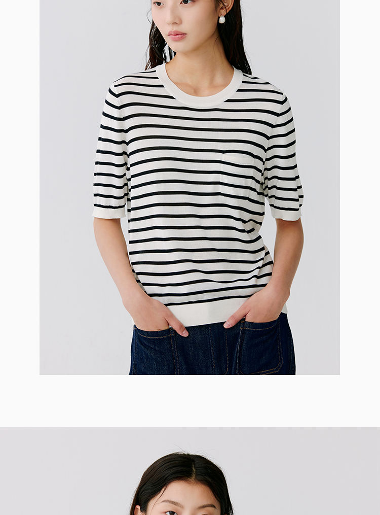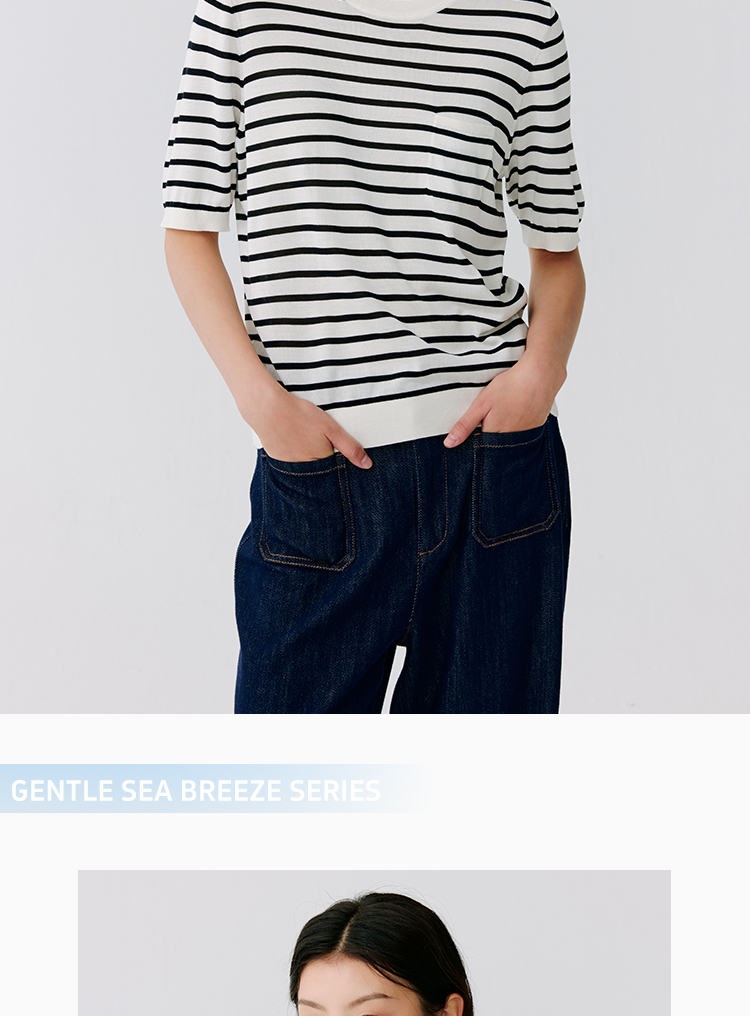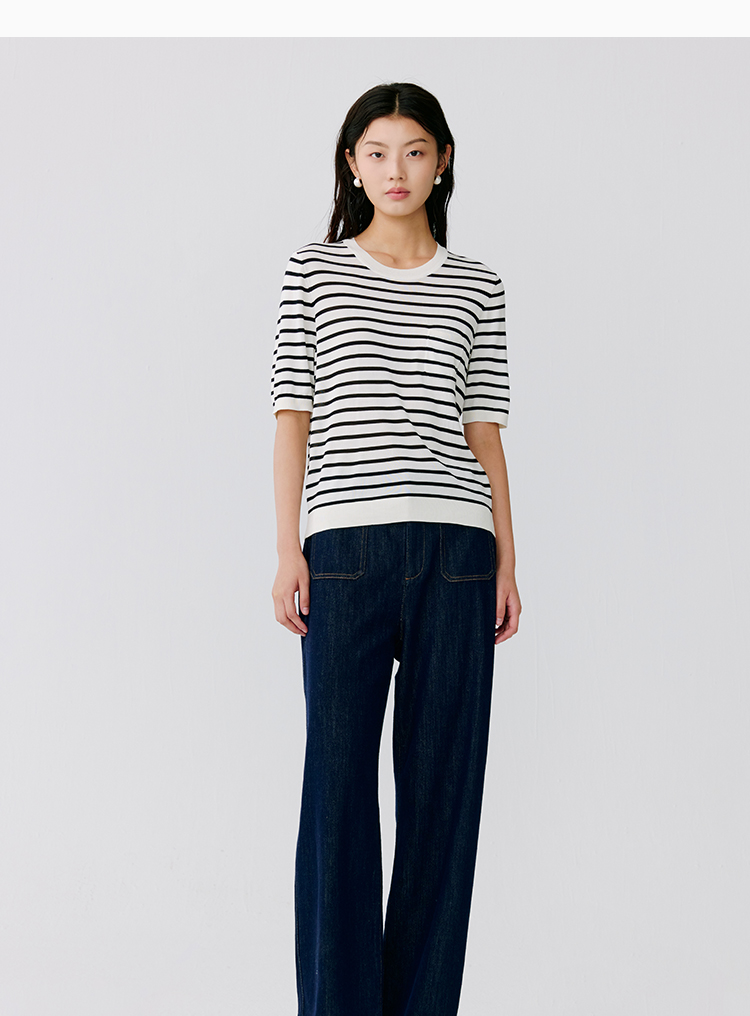 东黎 • 温柔的海风 海魂衫 桑蚕丝女士圆领彩条短袖 5223