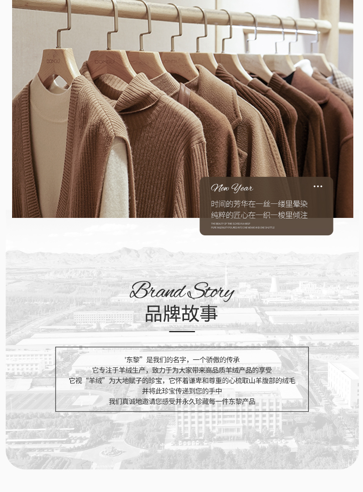 东黎羊绒是赤峰东荣集团自主品牌,自有牧场/羊绒制品全产业链优势,实现了羊绒从“牧场”到“商场”的华丽转变。