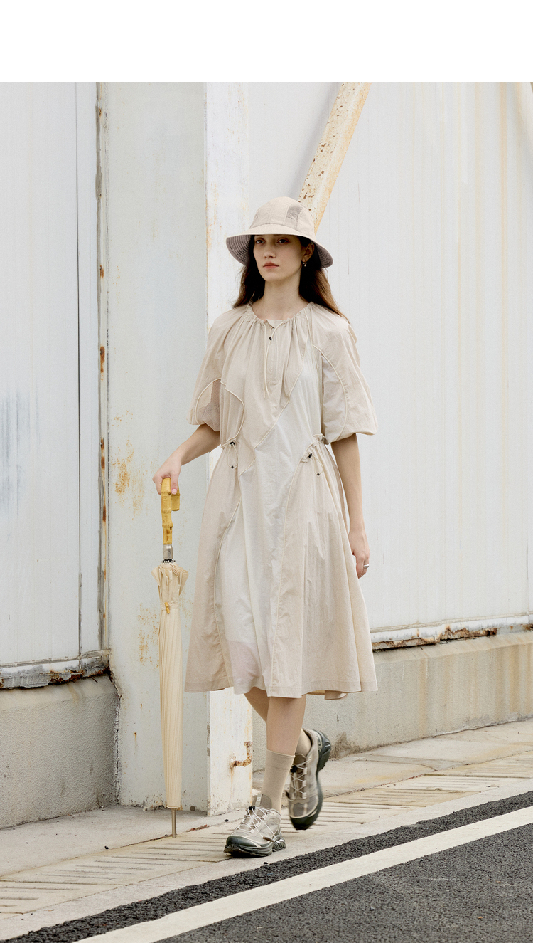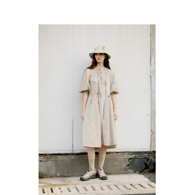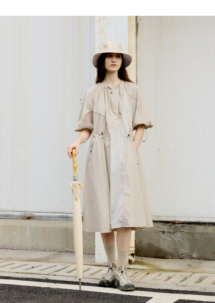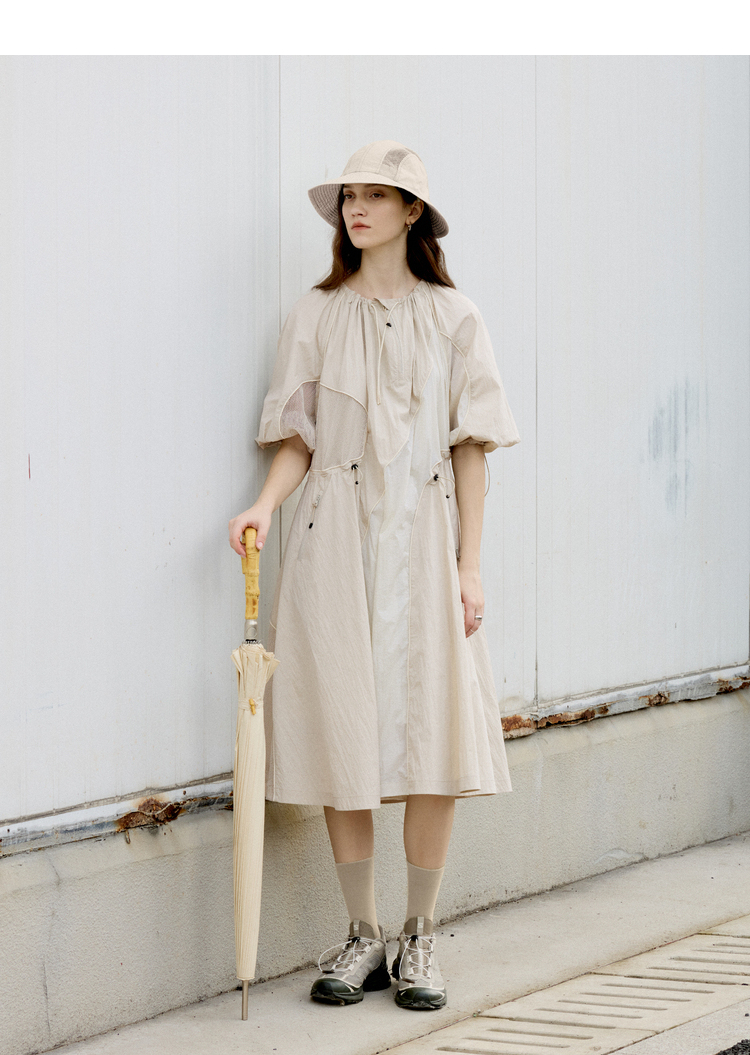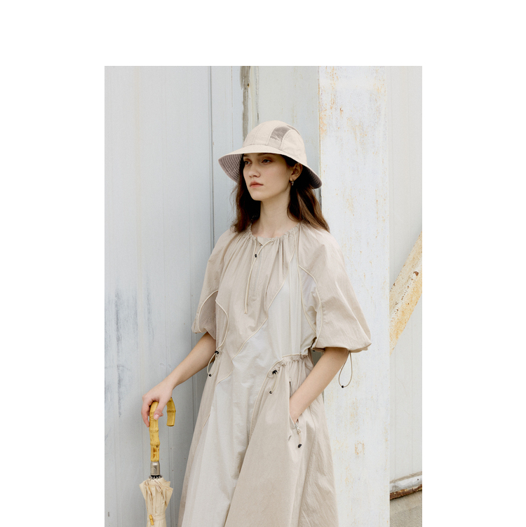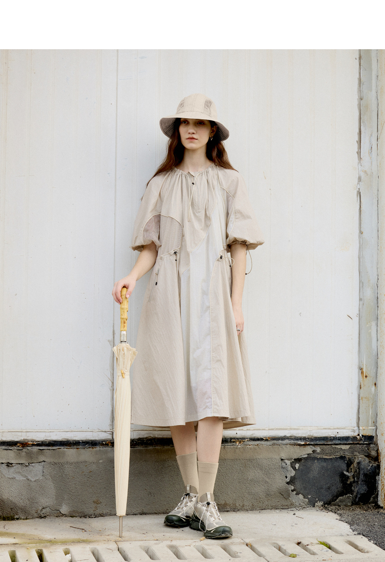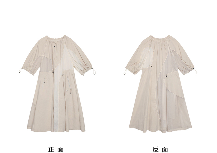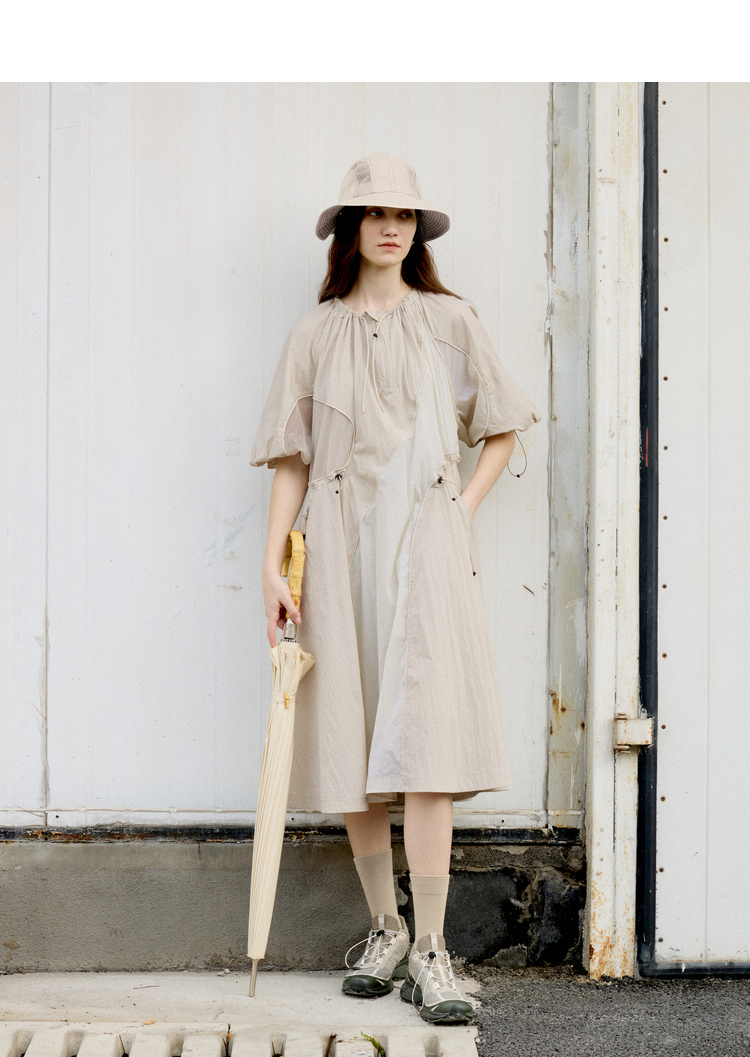 半圆/D24201323/不规则拼接抽绳连衣裙