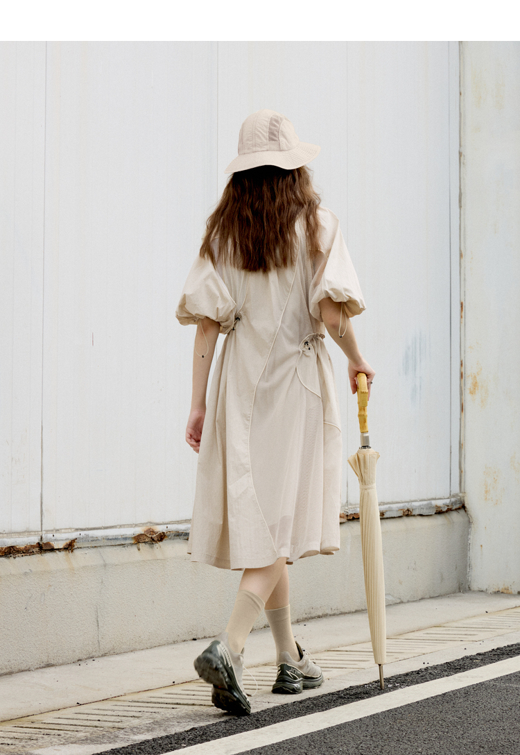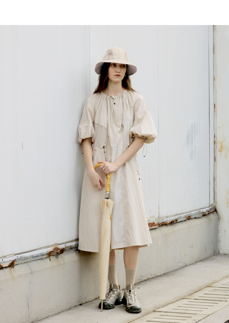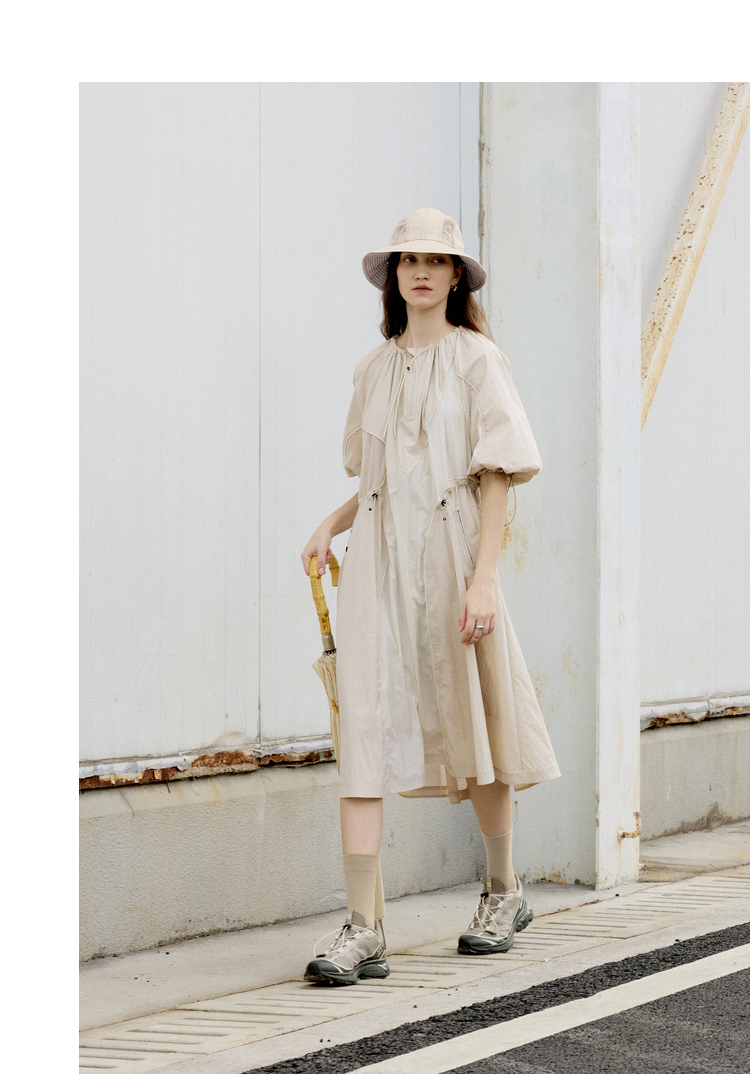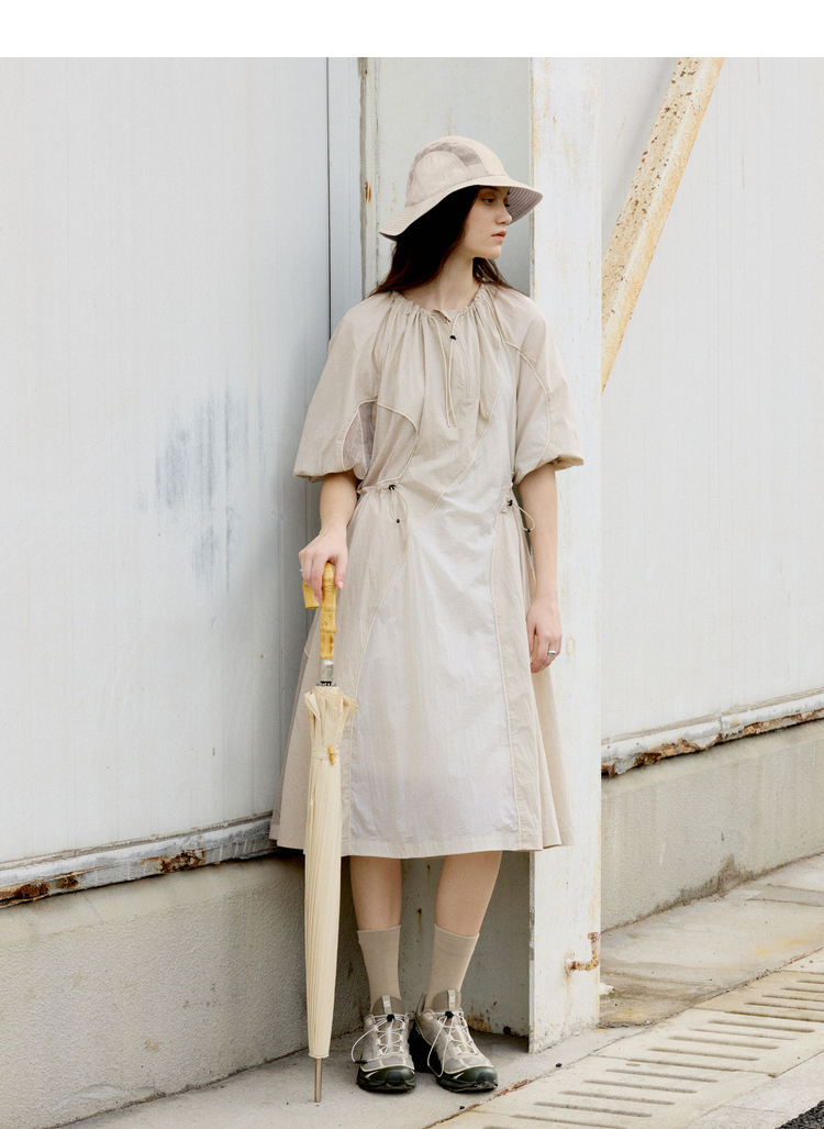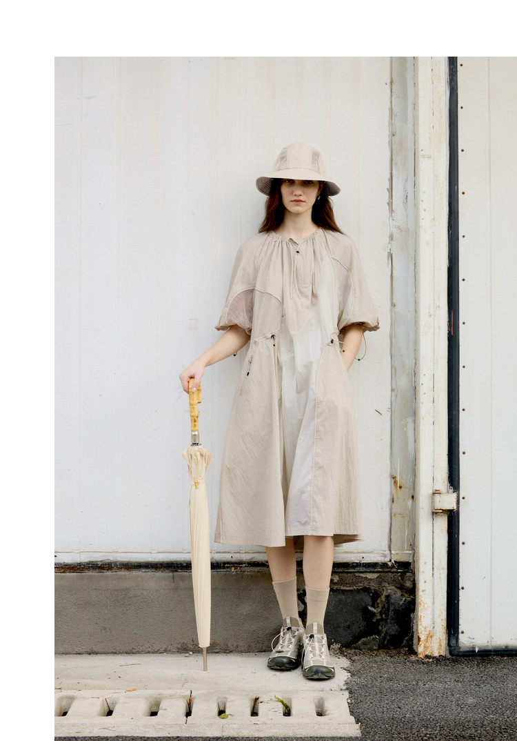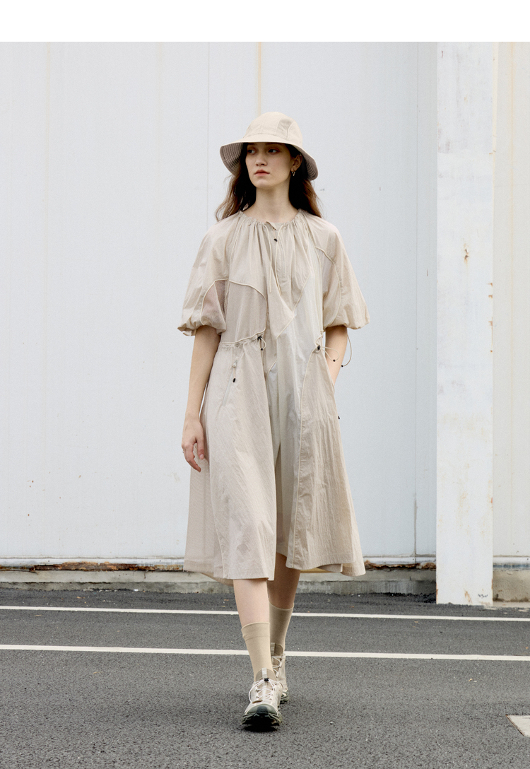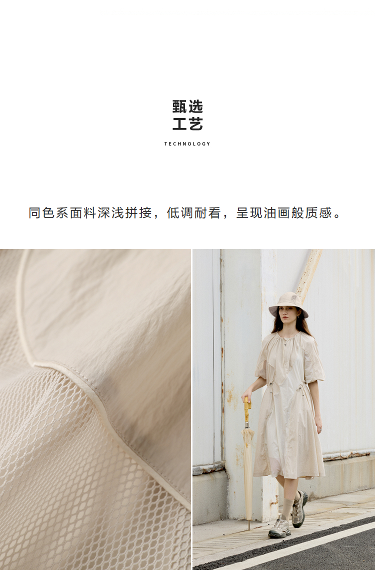 半圆/D24201323/不规则拼接抽绳连衣裙
