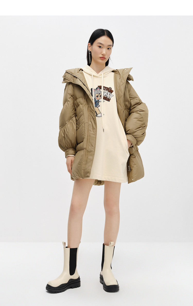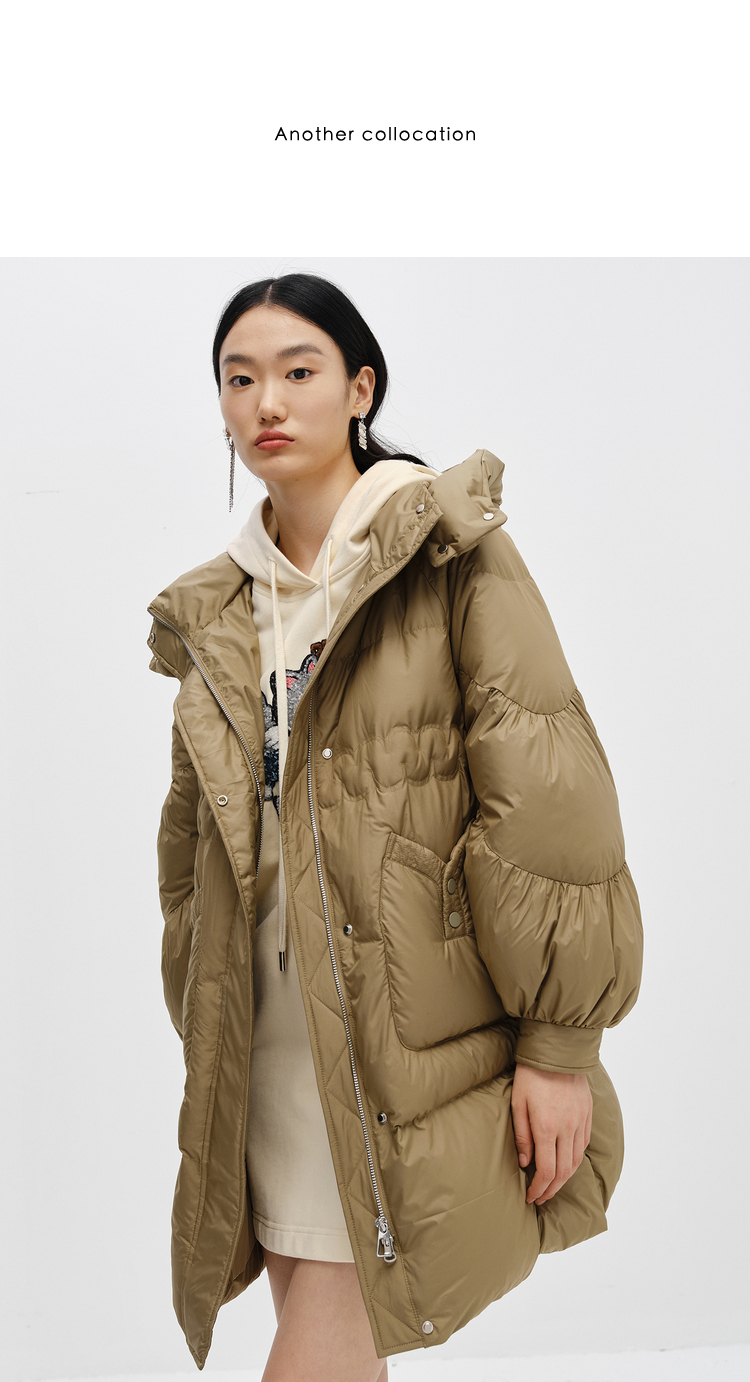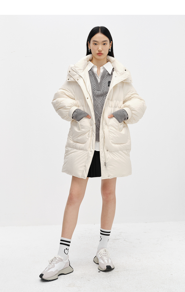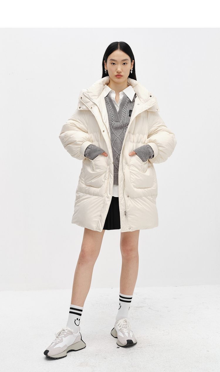 NEELLY纳俪商场同款2022冬季新款连帽羽绒服女可脱卸中长款外套潮N22102L01051