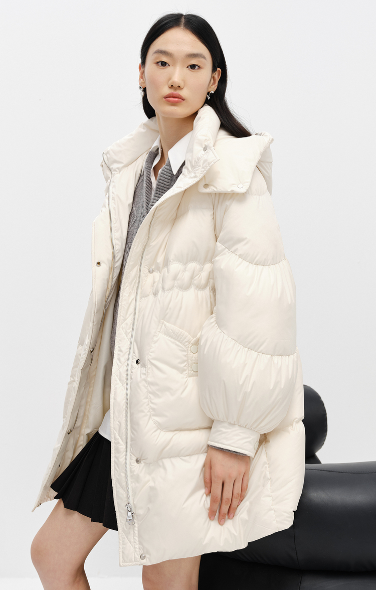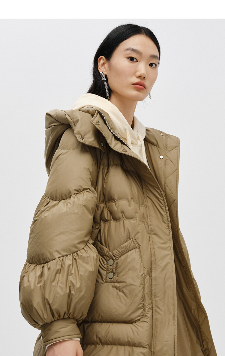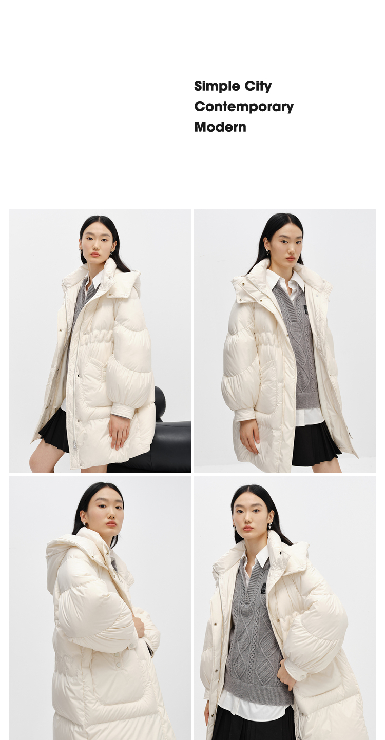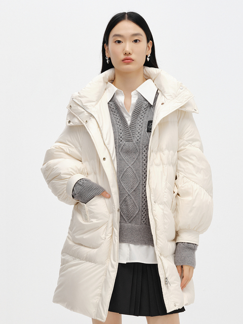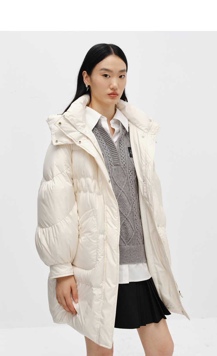 NEELLY纳俪商场同款2022冬季新款连帽羽绒服女可脱卸中长款外套潮N22102L01051
