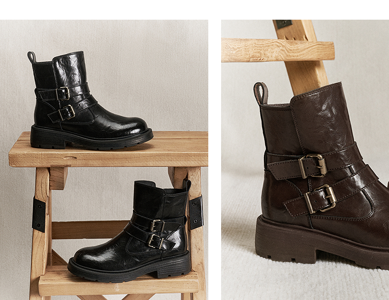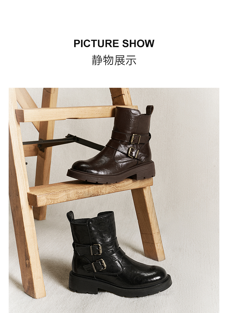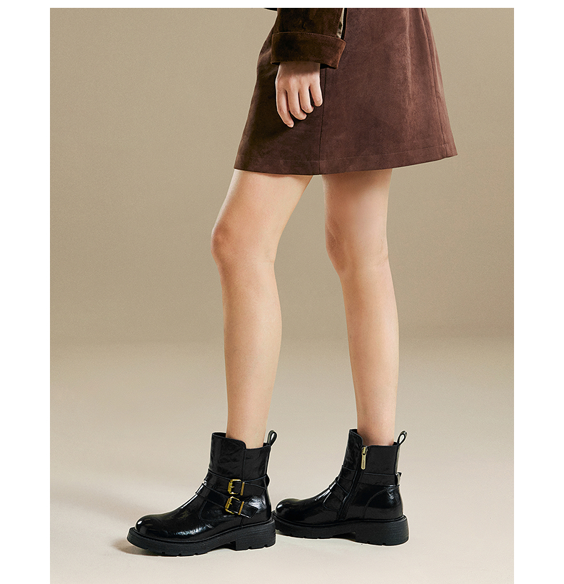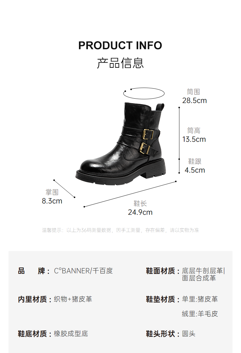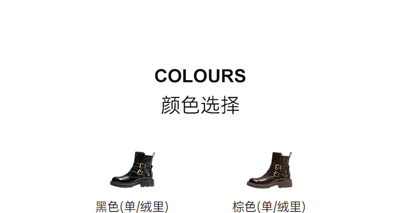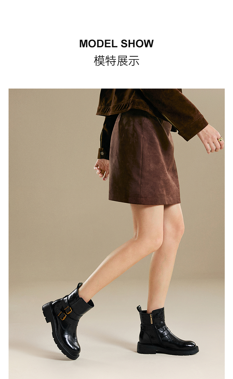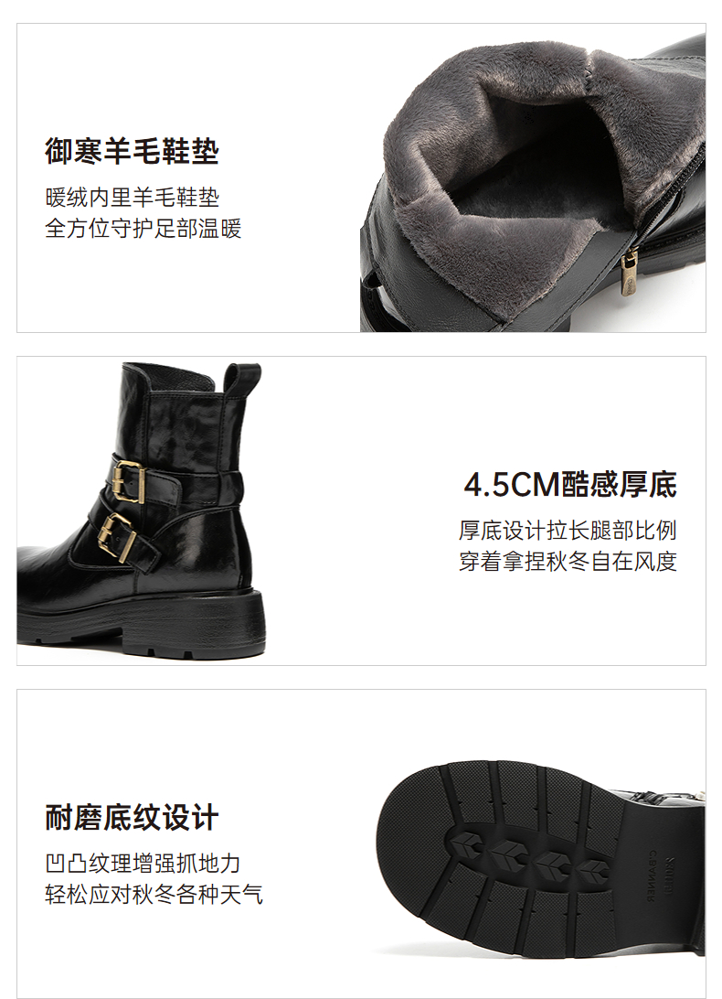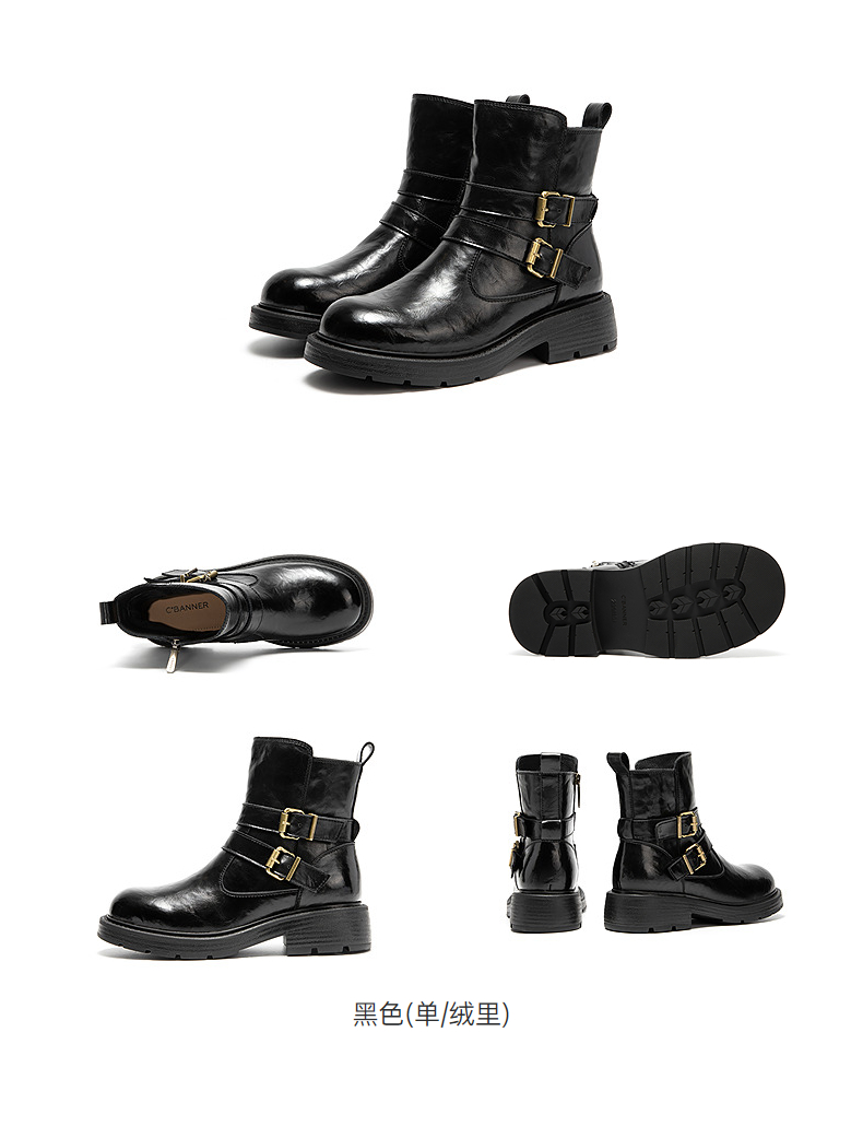 千百度厚底西部牛仔靴女加绒保暖增高时装靴超火短靴A25525012