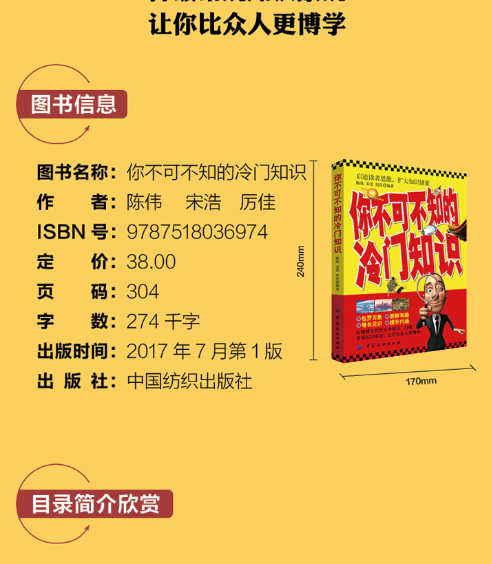你不可不知的冷门知识 陈伟,宋浩,厉佳 编著 社会科学其它经管、励志 新华书店正版图书籍 中国纺织出版社