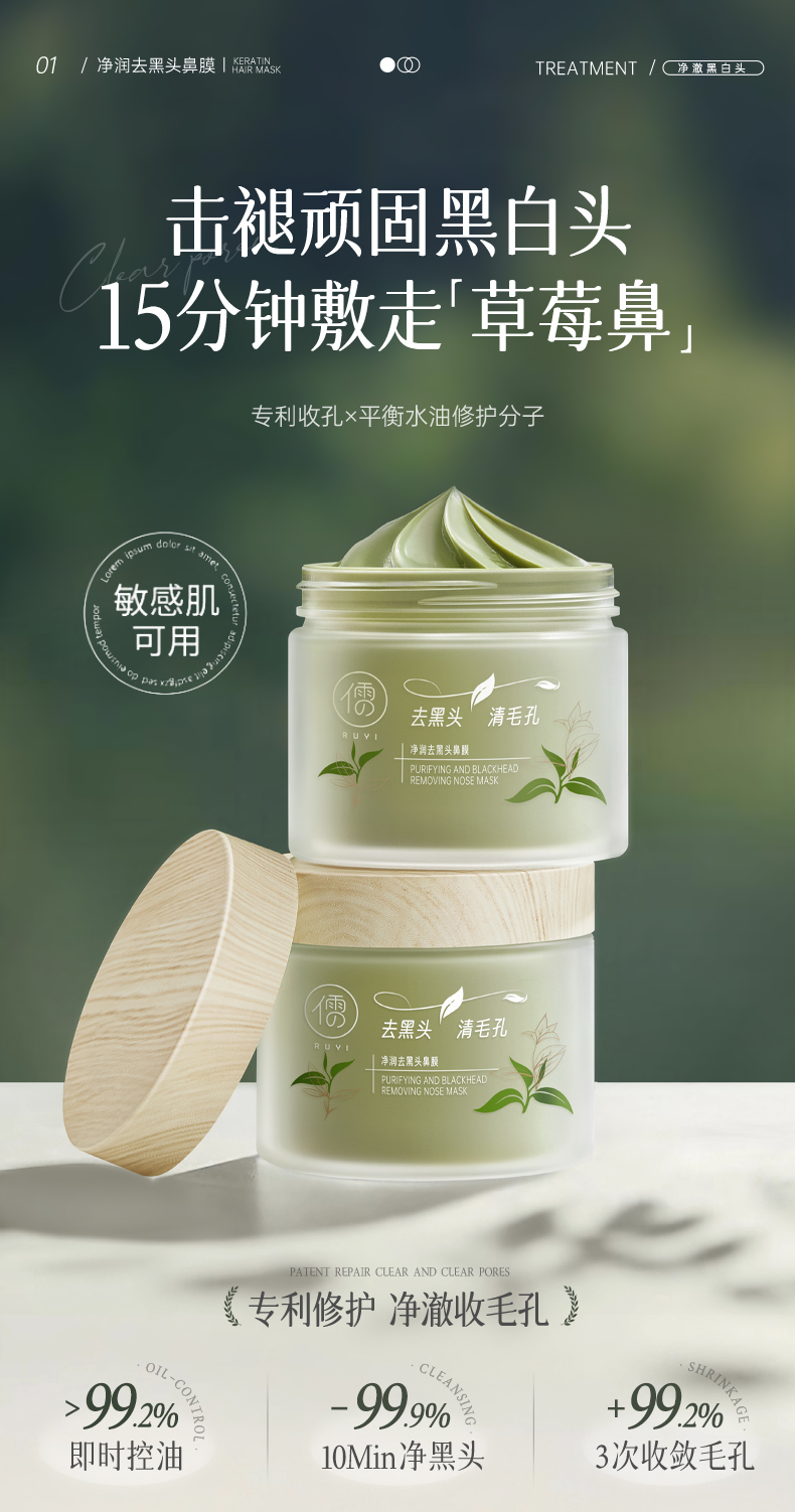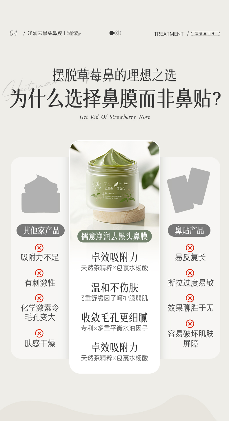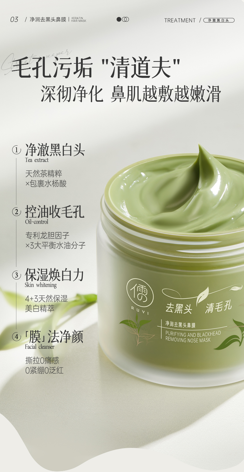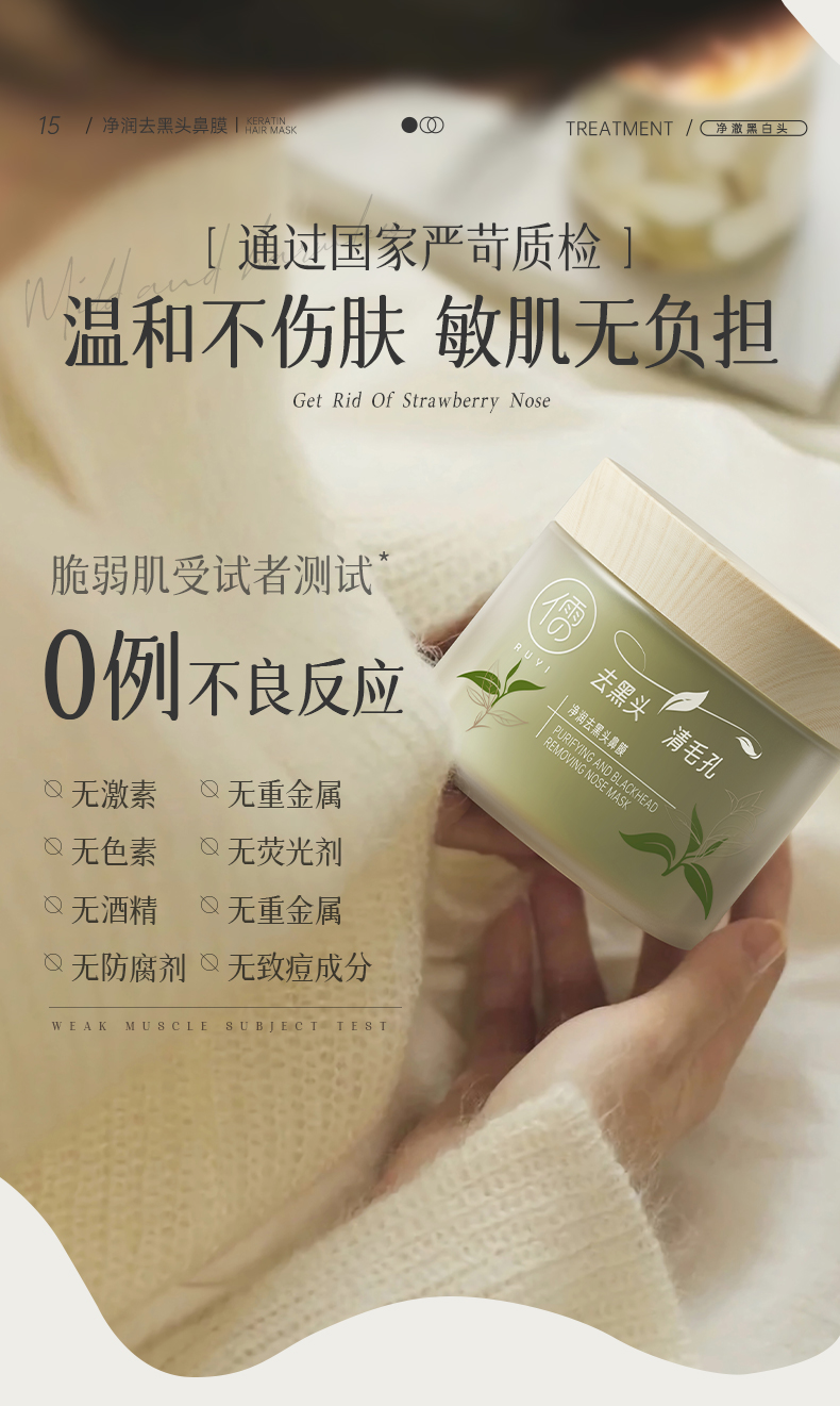 儒意净润去黑头鼻膜100g 去黑头粉刺 收缩毛孔 深层清洁 鼻膜鼻贴吸祛撕拉面膜|儒意官方商城