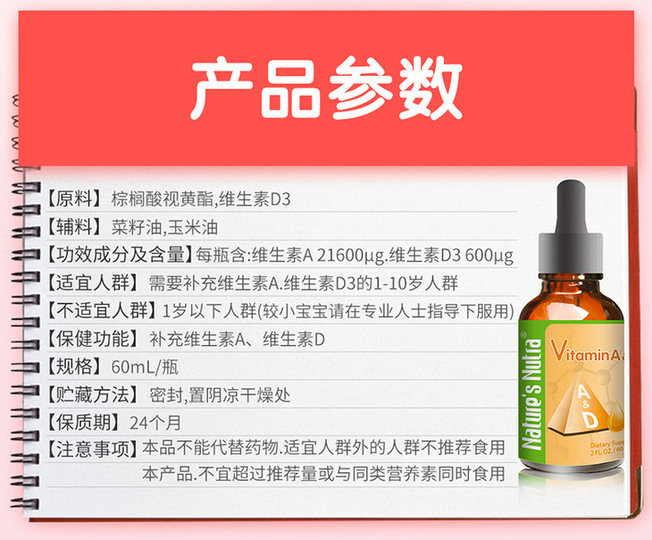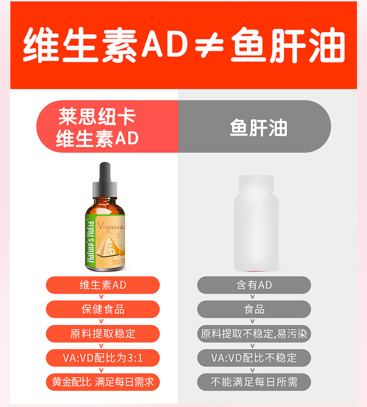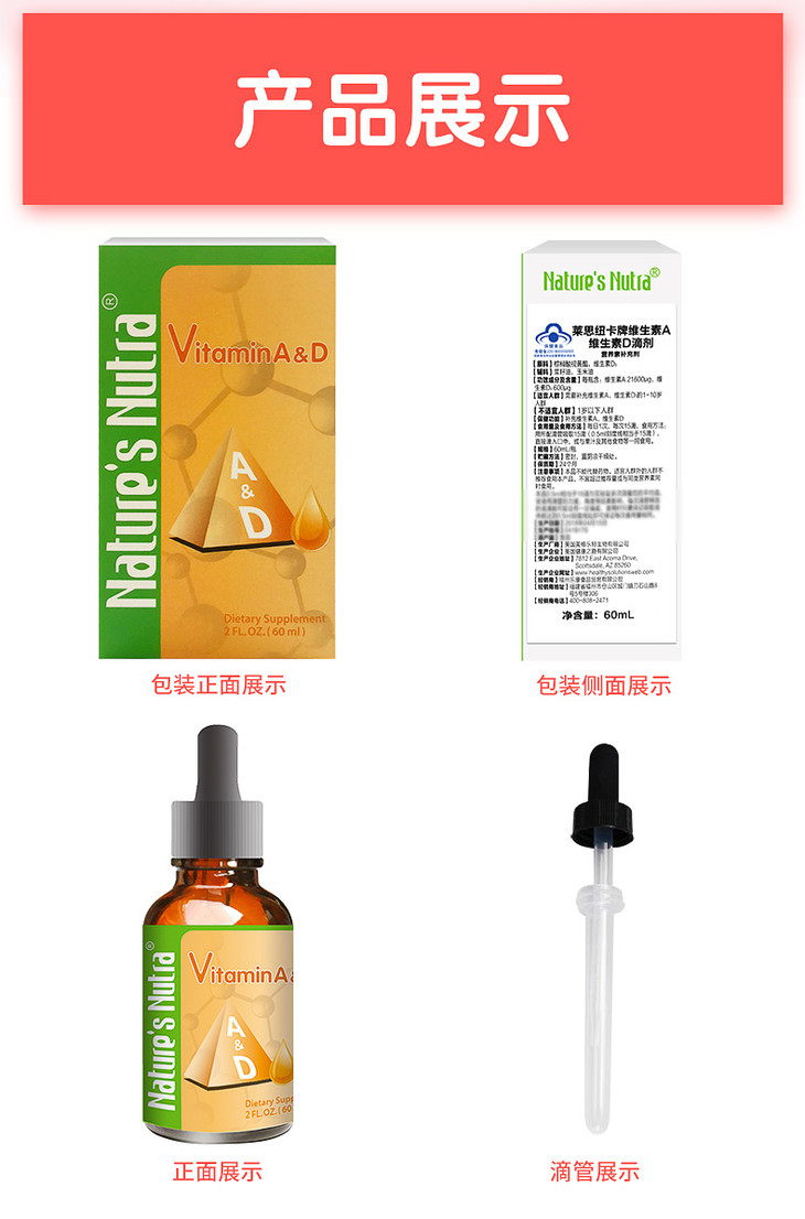 美国莱思纽卡维生素A+维生素D滴剂60ml(莱思纽卡任选2个包邮)