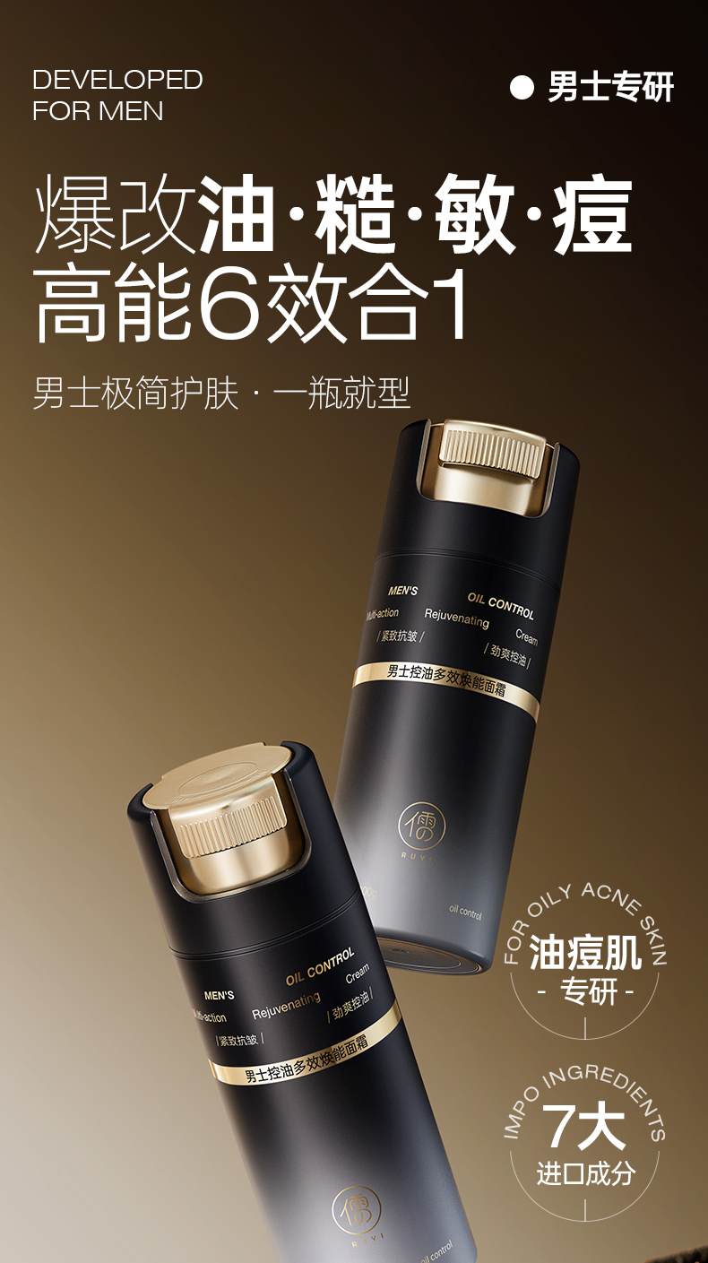 【🔥119选4件】再送面膜𝟏𝟐片 儒意男士控油多效焕能面霜100g 男士面霜秋冬季补水保湿霜乳液润肤擦脸护肤品脸部|儒意官方商城