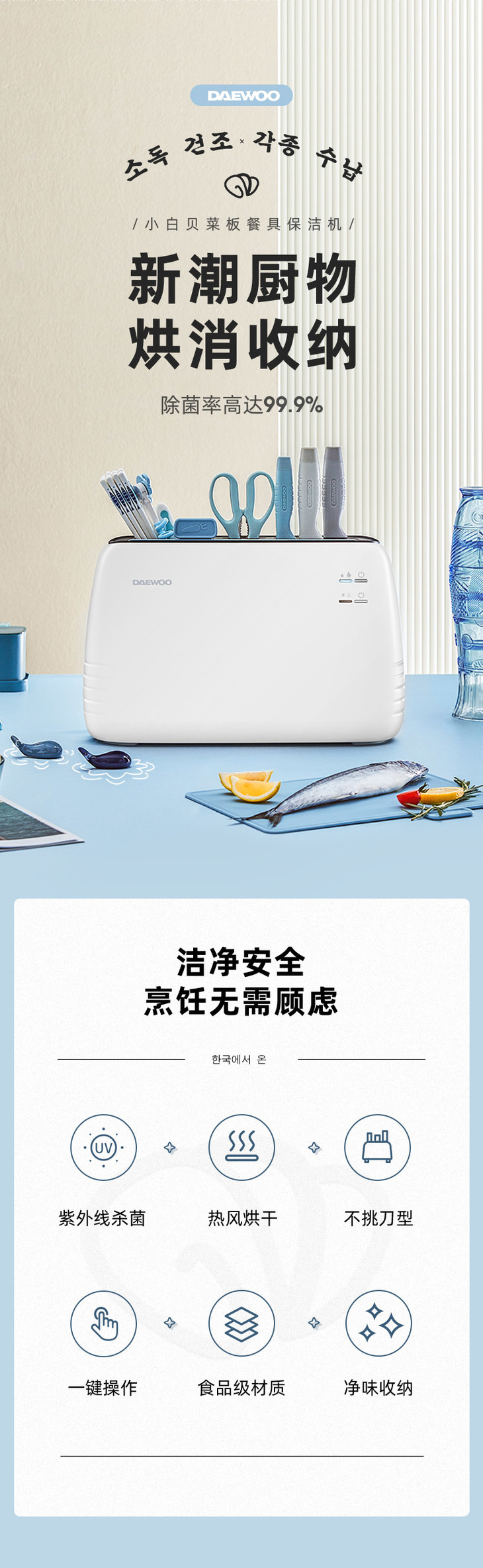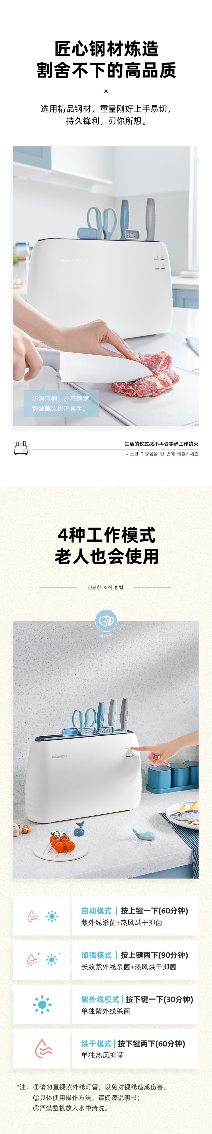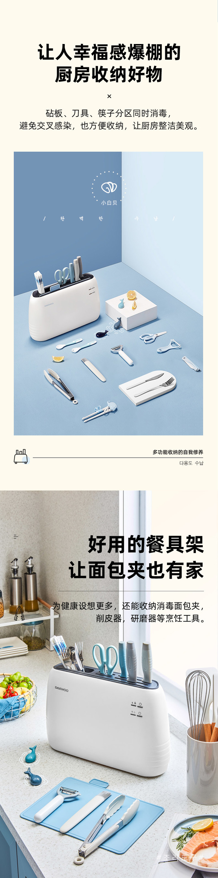【大宇】【收纳消毒一体的餐具保洁】韩国大宇智能消毒刀架砧板筷子烘干保洁紫外线消菌配刀具+菜板