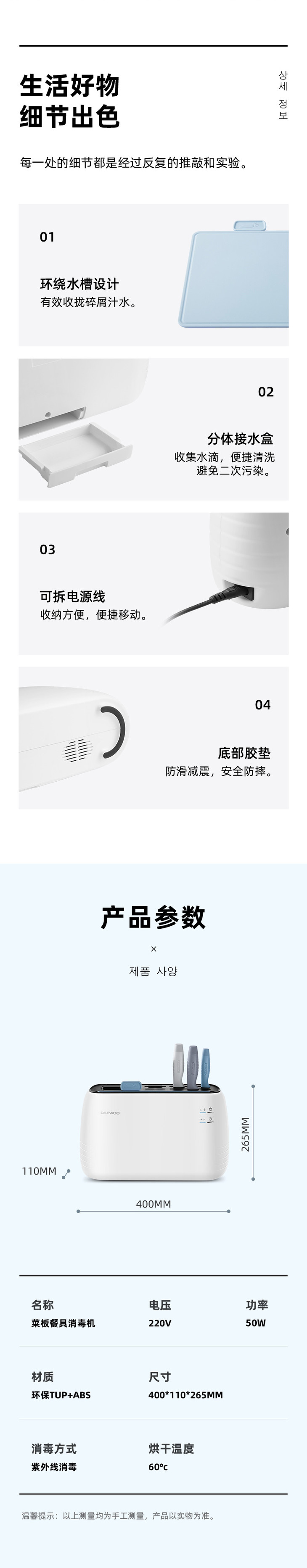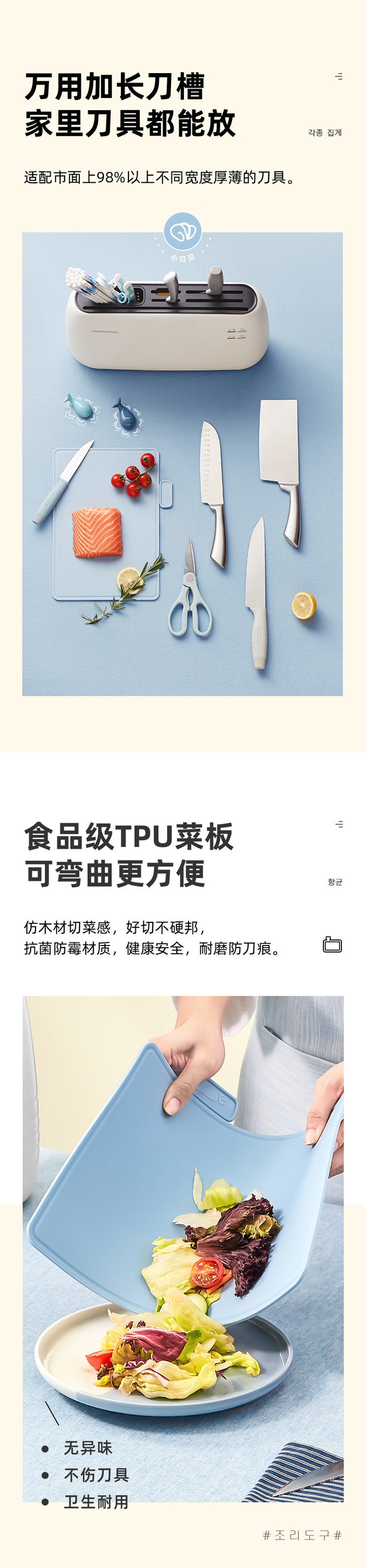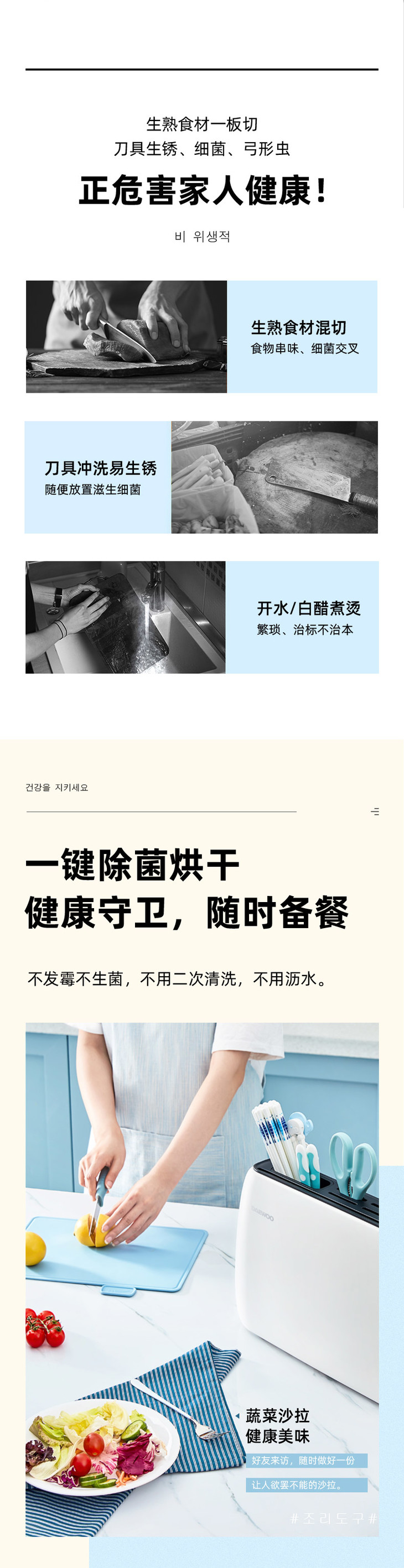 【大宇】【收纳消毒一体的餐具保洁】韩国大宇智能消毒刀架砧板筷子烘干保洁紫外线消菌配刀具+菜板