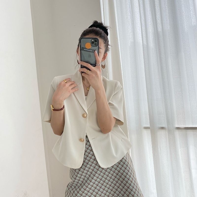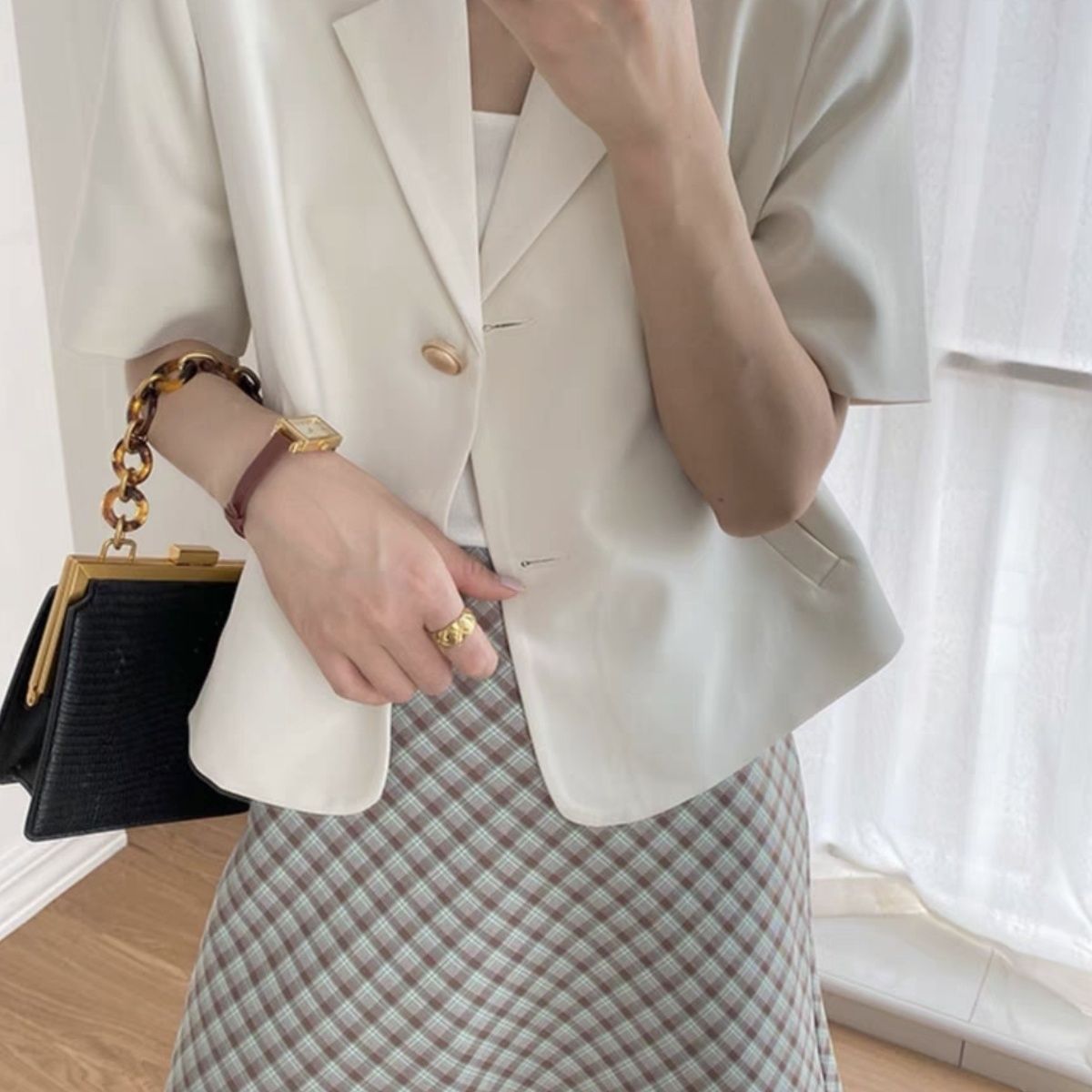 (清仓现货)【社群供V】薄款短袖小西装外套女设计感小众洋气休闲西服上衣涤纶