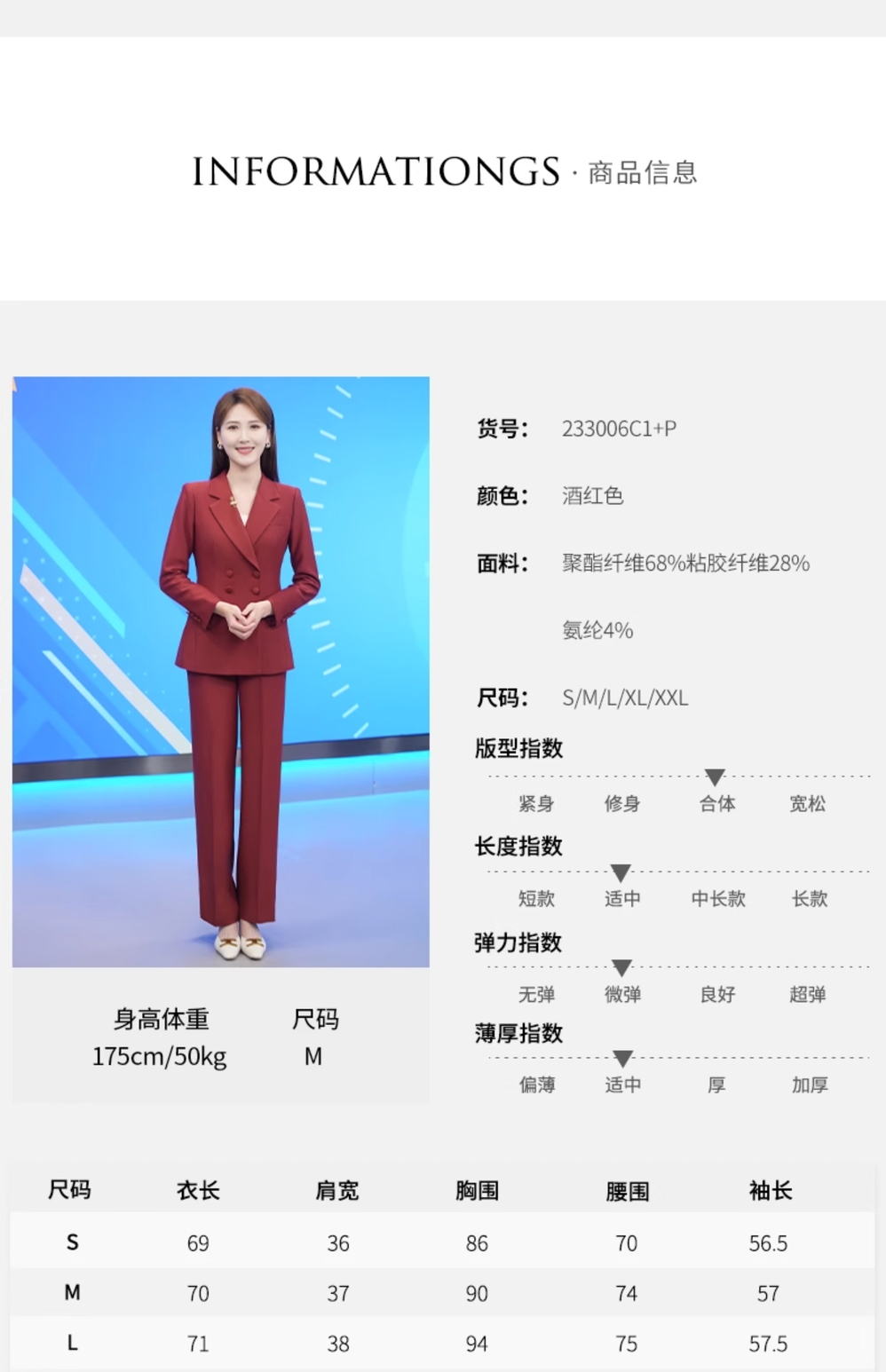 IWY/高端酒红色西装外套女2023新款艺考主持人西服套装秋季正装233006C1+P6