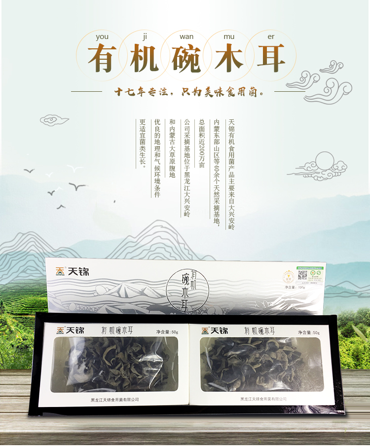 天锦有机手选碗木耳100g/盒