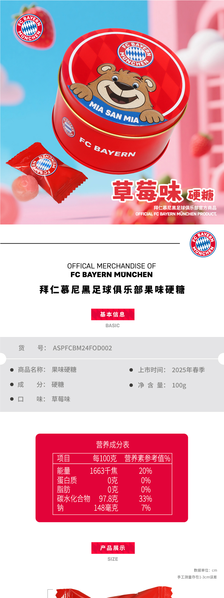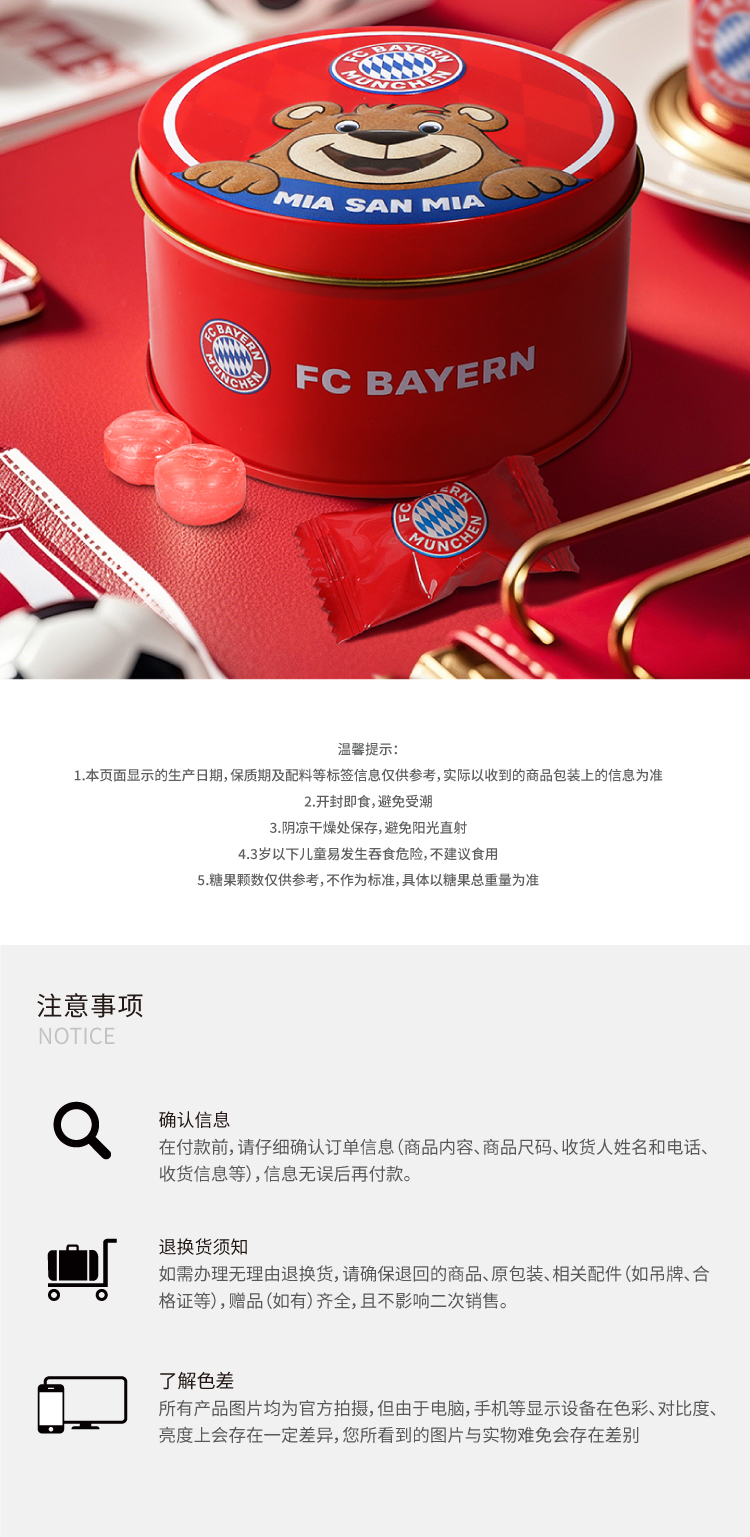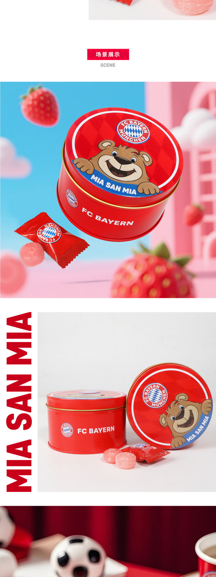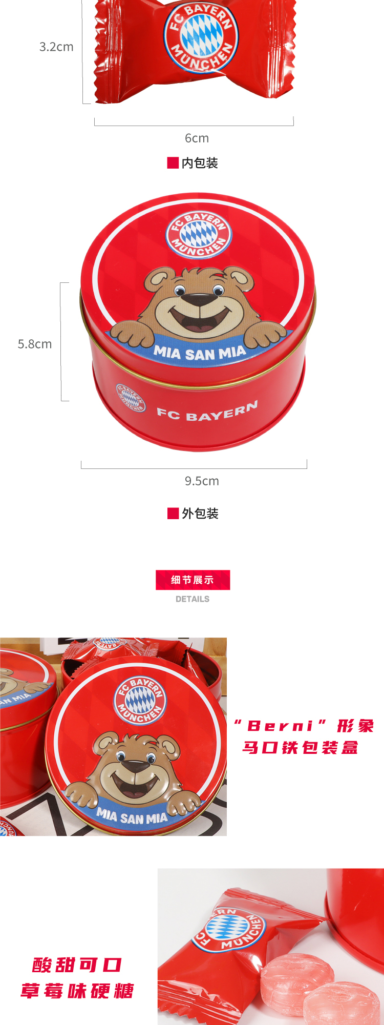 【官方正版】拜仁慕尼黑足球俱乐部丨草莓味硬糖伯尼熊红色马口铁盒包装