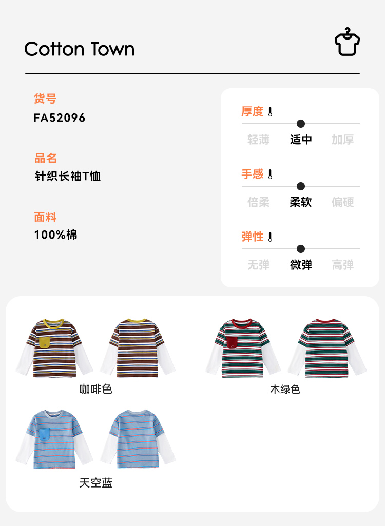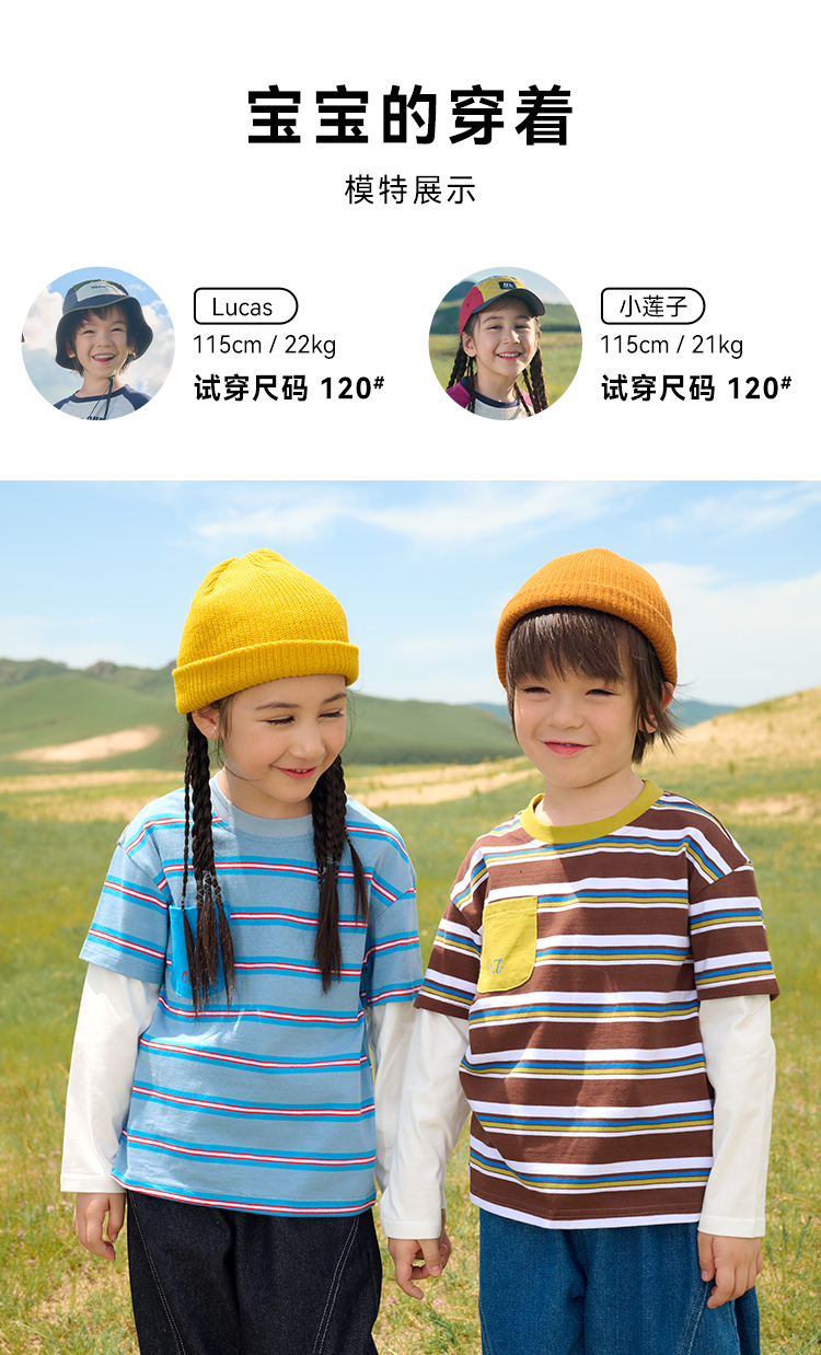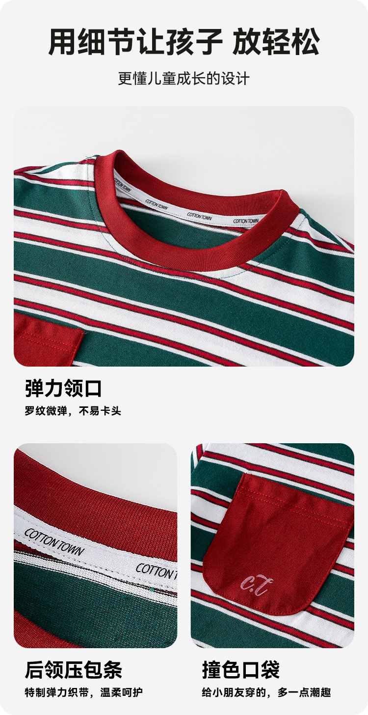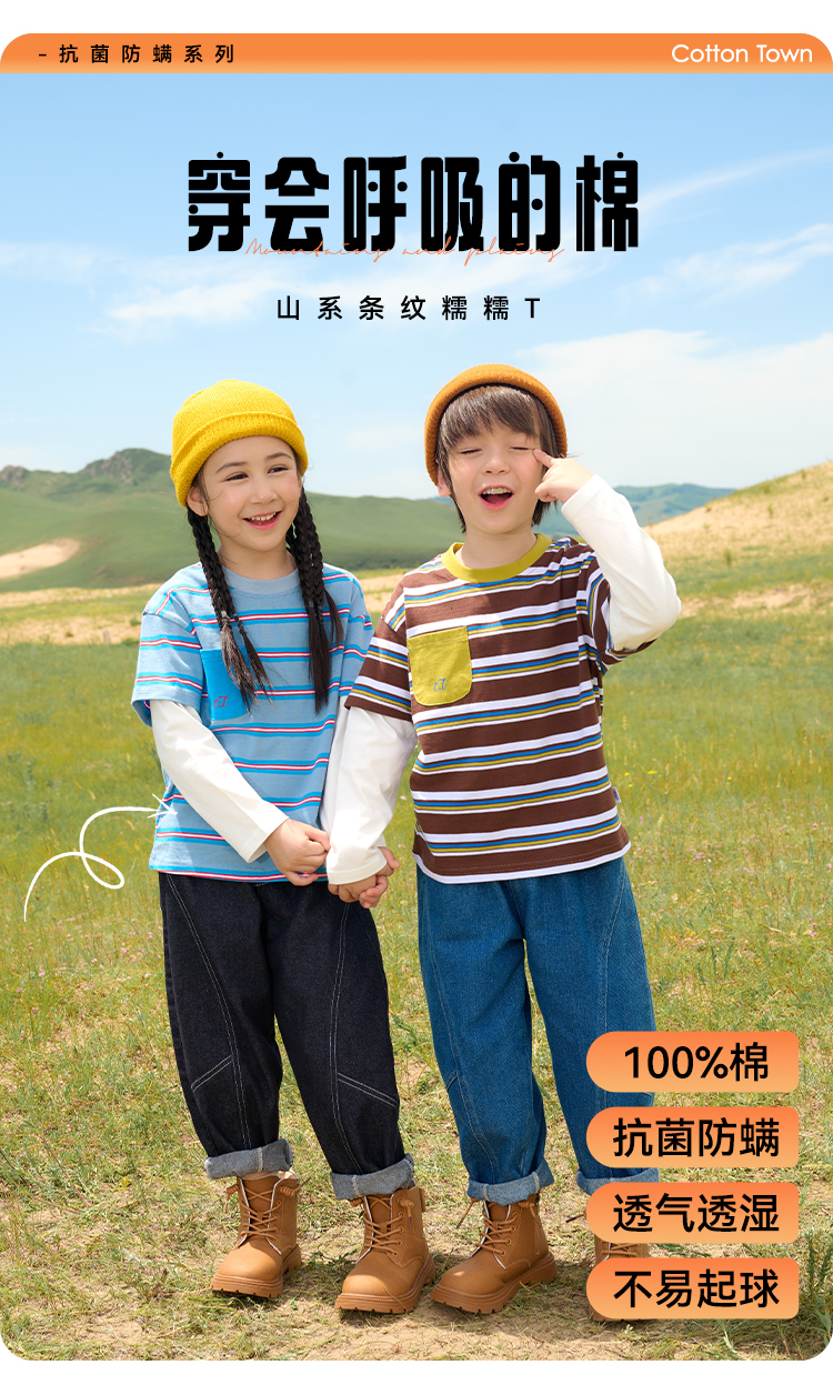 【7A抗菌纯棉】棉花堂山系条纹糯糯童装T恤——FA52096
