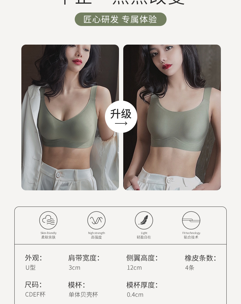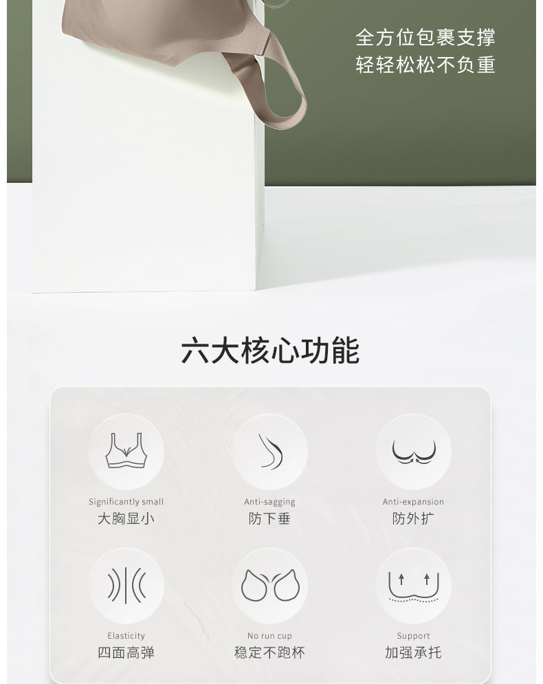 C-F杯 大码无痕内衣女大胸显小舒适无钢圈文胸收副乳防下垂胸罩