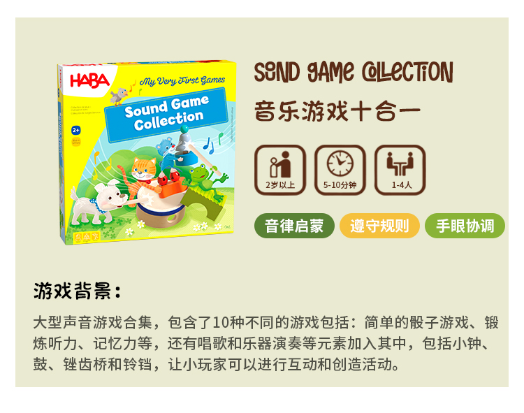 HABA 音乐游戏 十合一 桌游 适合2岁+ 多种玩法,锻炼各项能力 德国品牌-1307105002