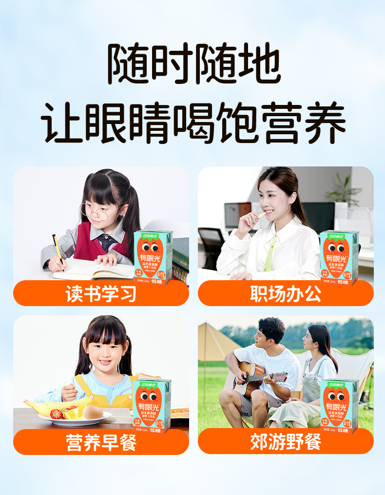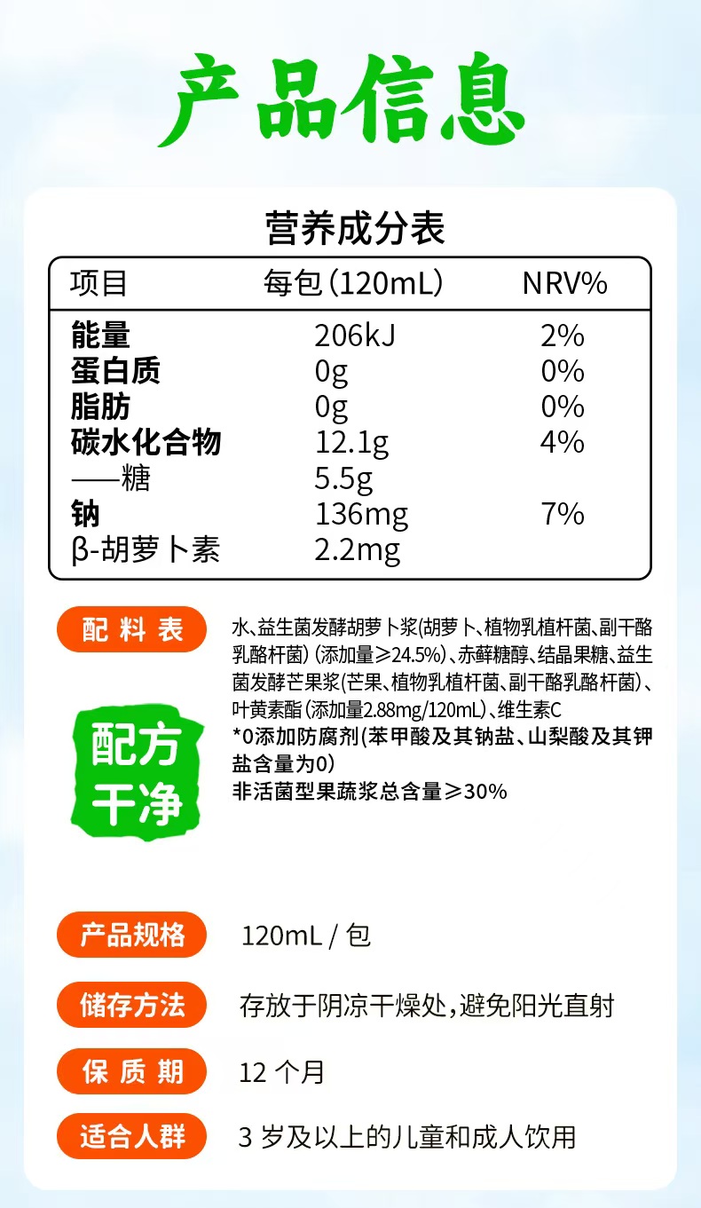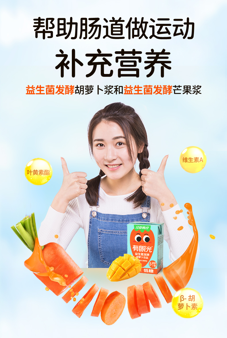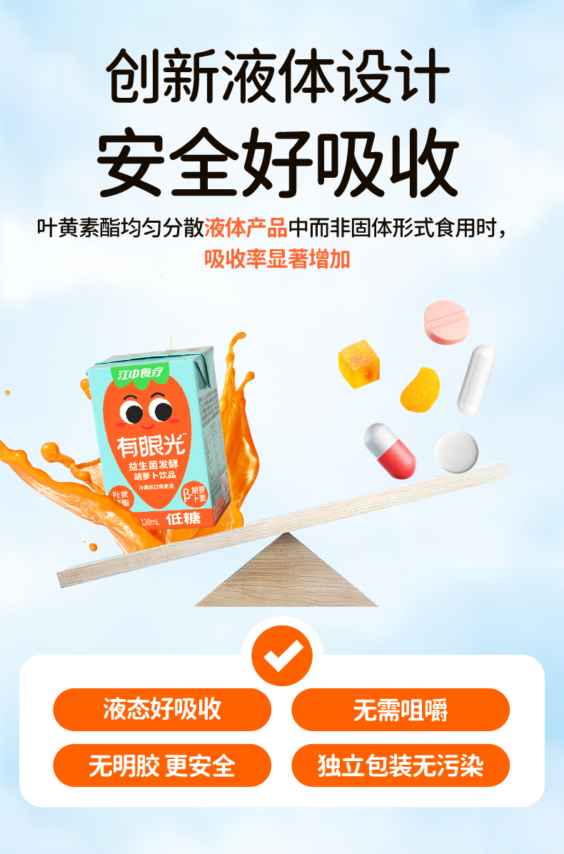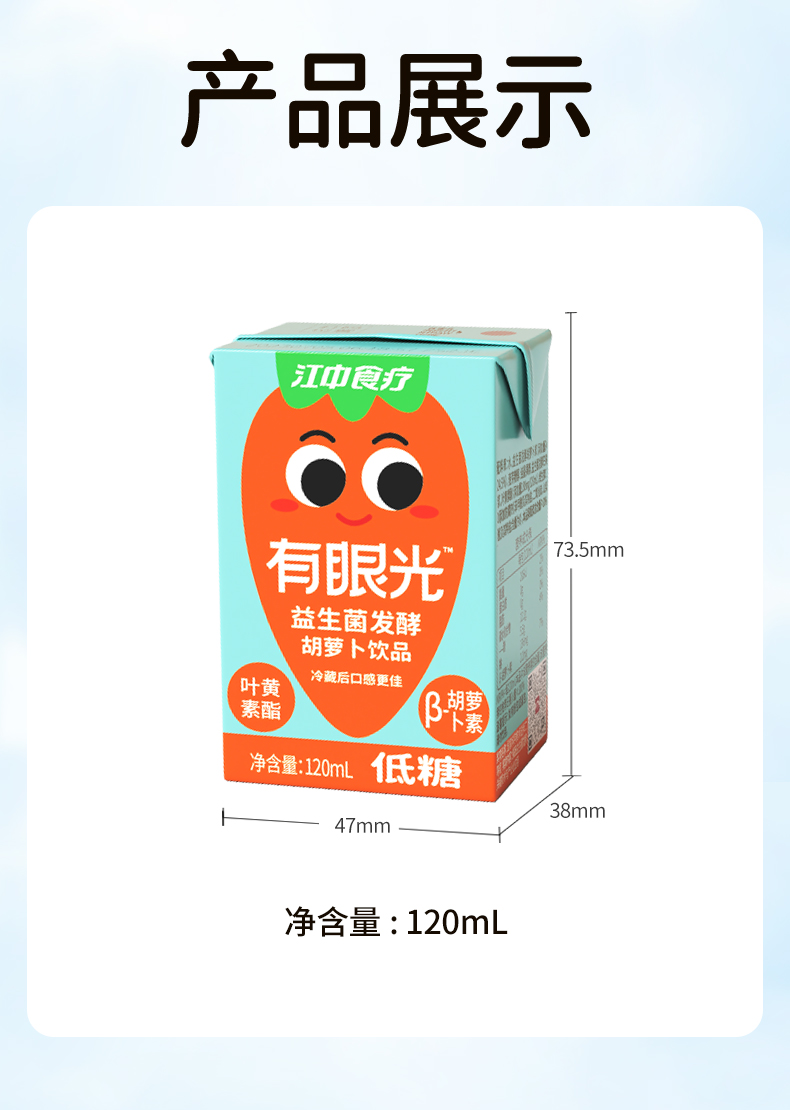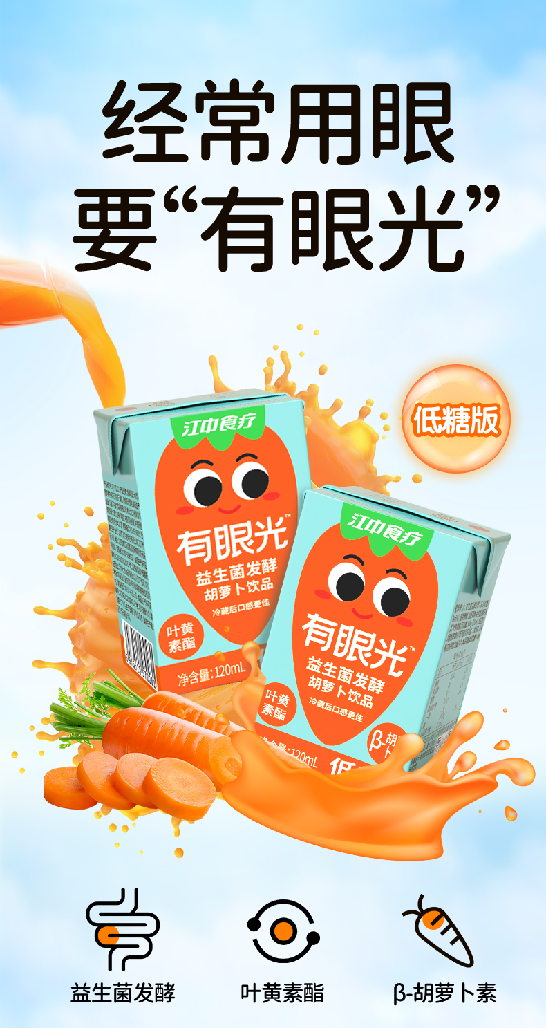 江中食疗有眼光益生菌发酵胡萝卜饮品【低糖】好喝的胡萝卜汁 低糖无添加 护眼/帮助肠道做运动 120ml*20瓶 2025年10月生产 保质期12个月