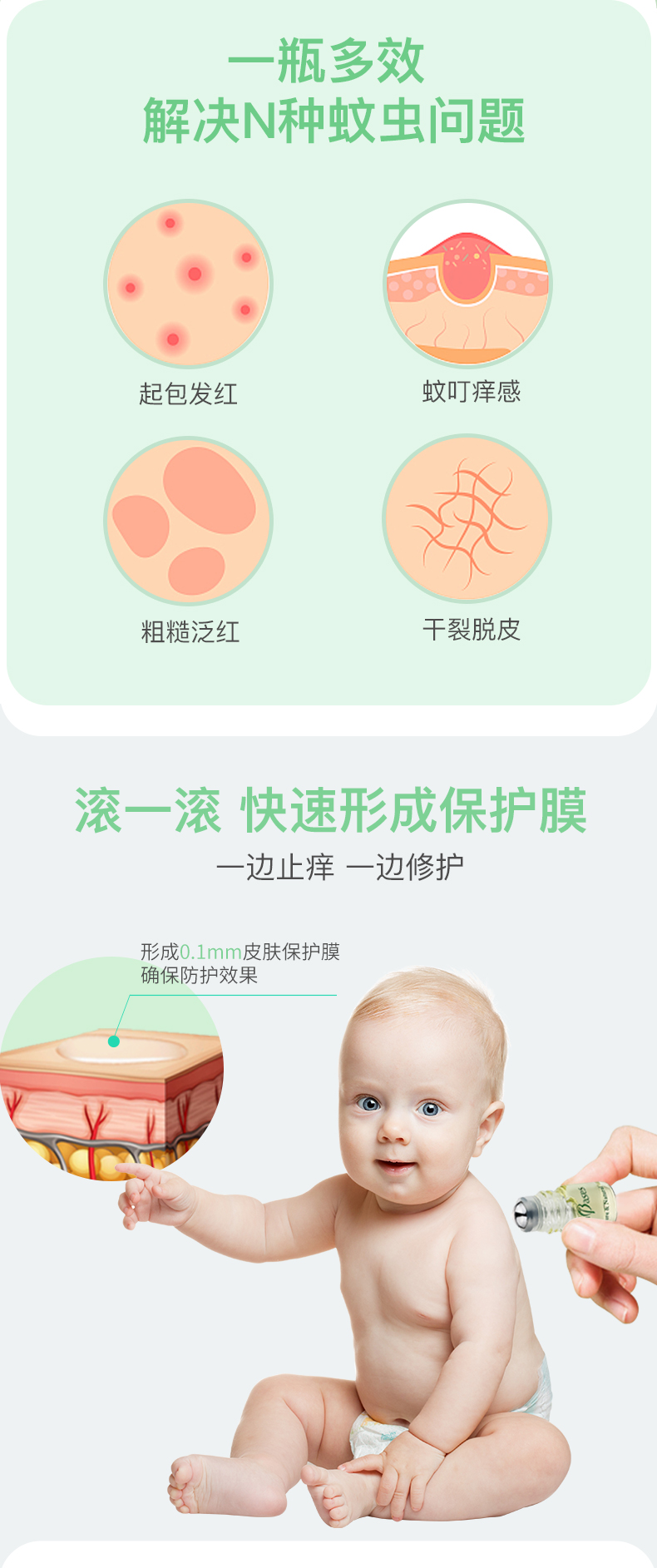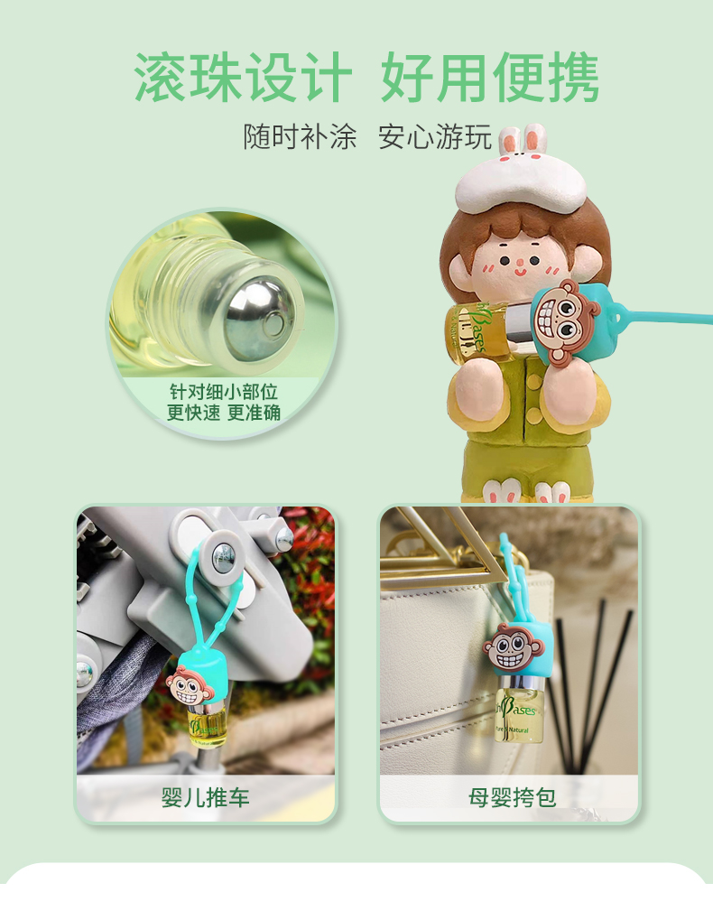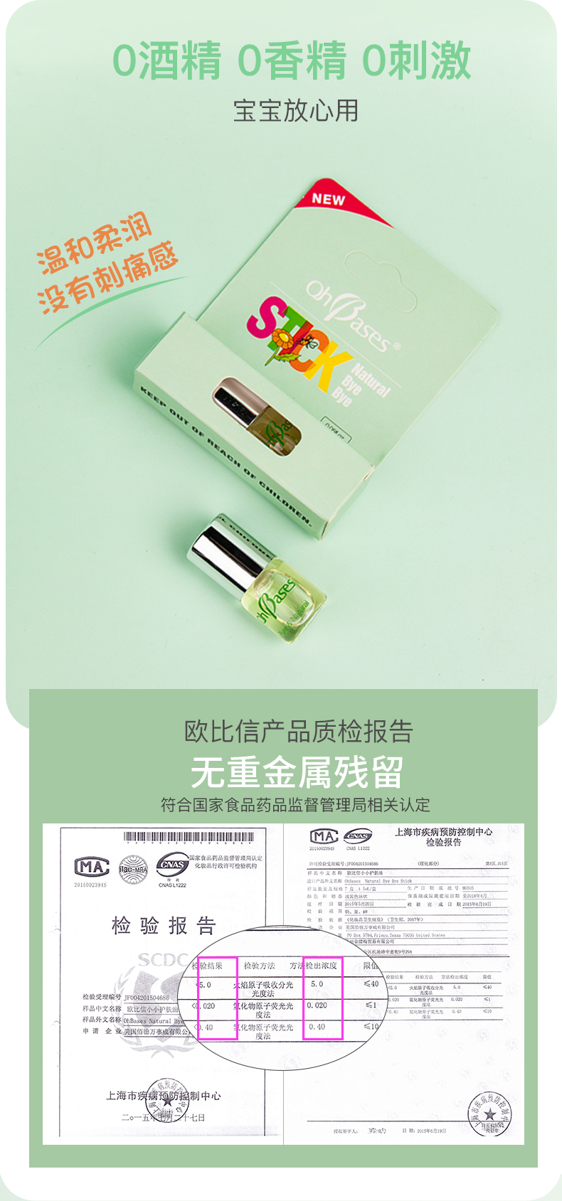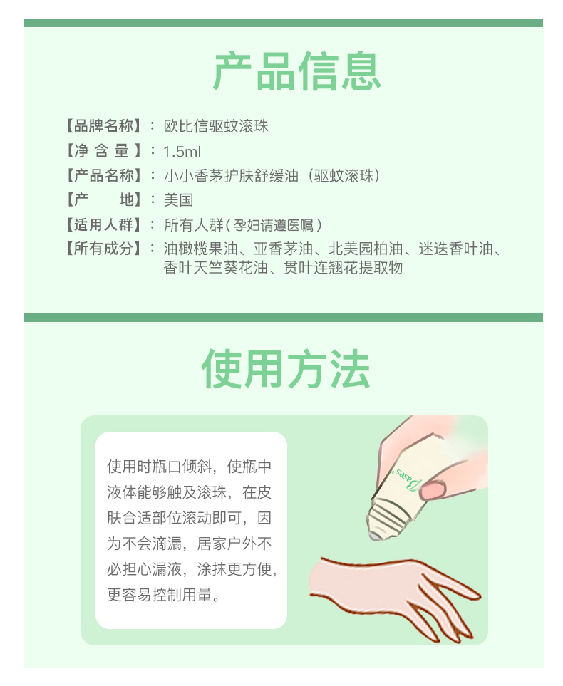 美国欧比信婴儿童驱蚊滚珠小绿珠走珠防蚊虫叮咬止痒消包1.5ml/瓶