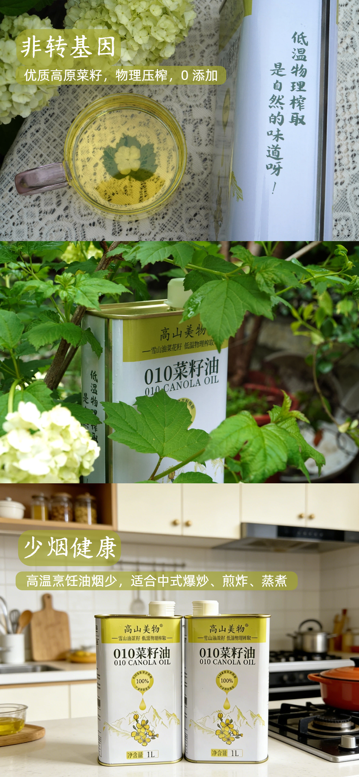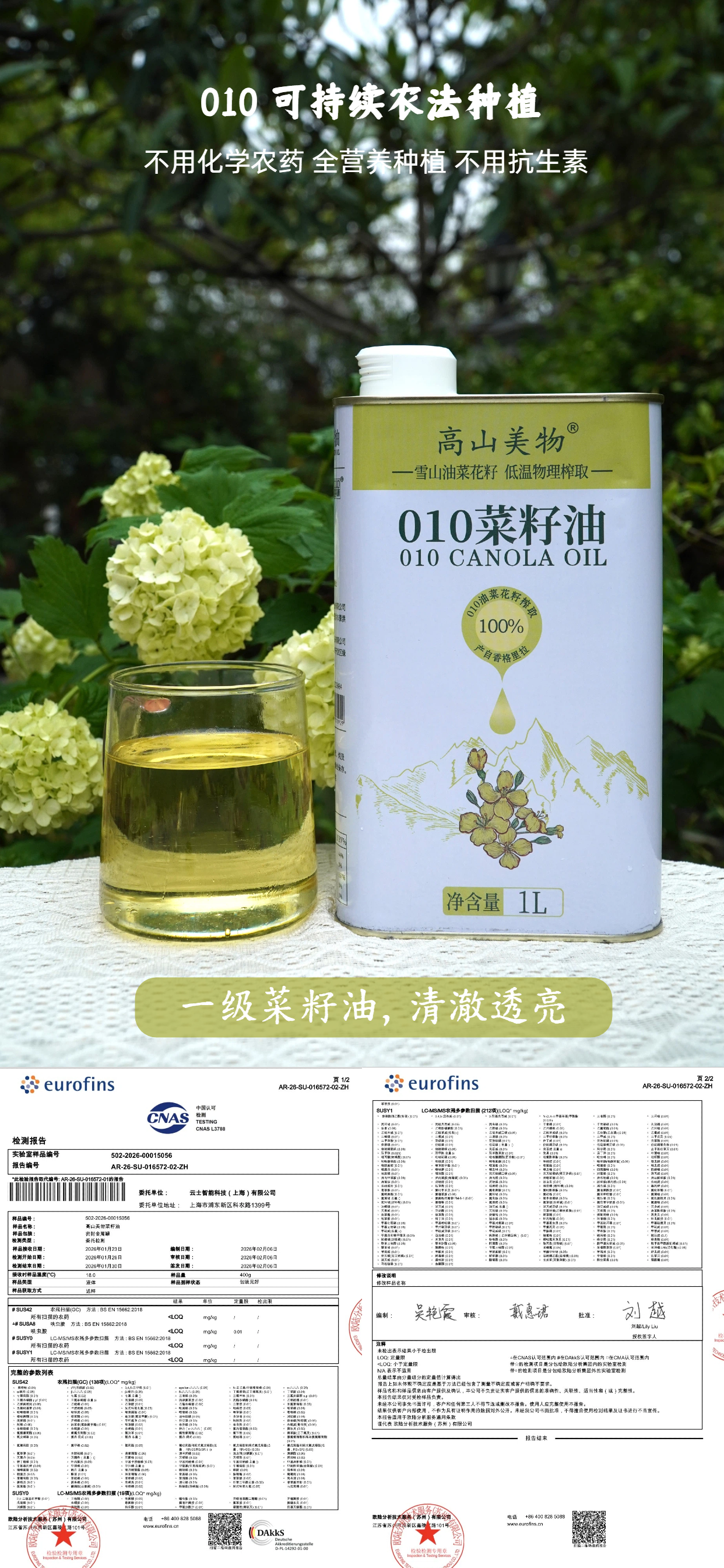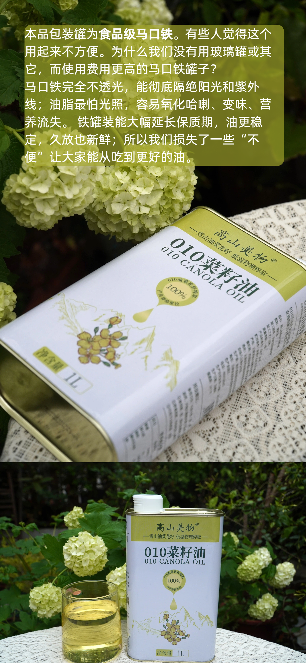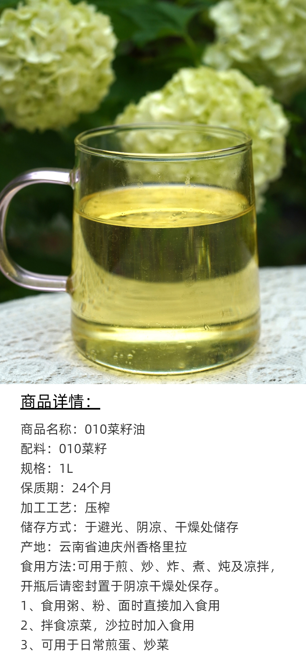 010菜籽油 雪山灌溉 非转基因高原菜籽 物理压榨 0 添加 【一级精炼 清澈透亮】 清香少烟 纯正好油