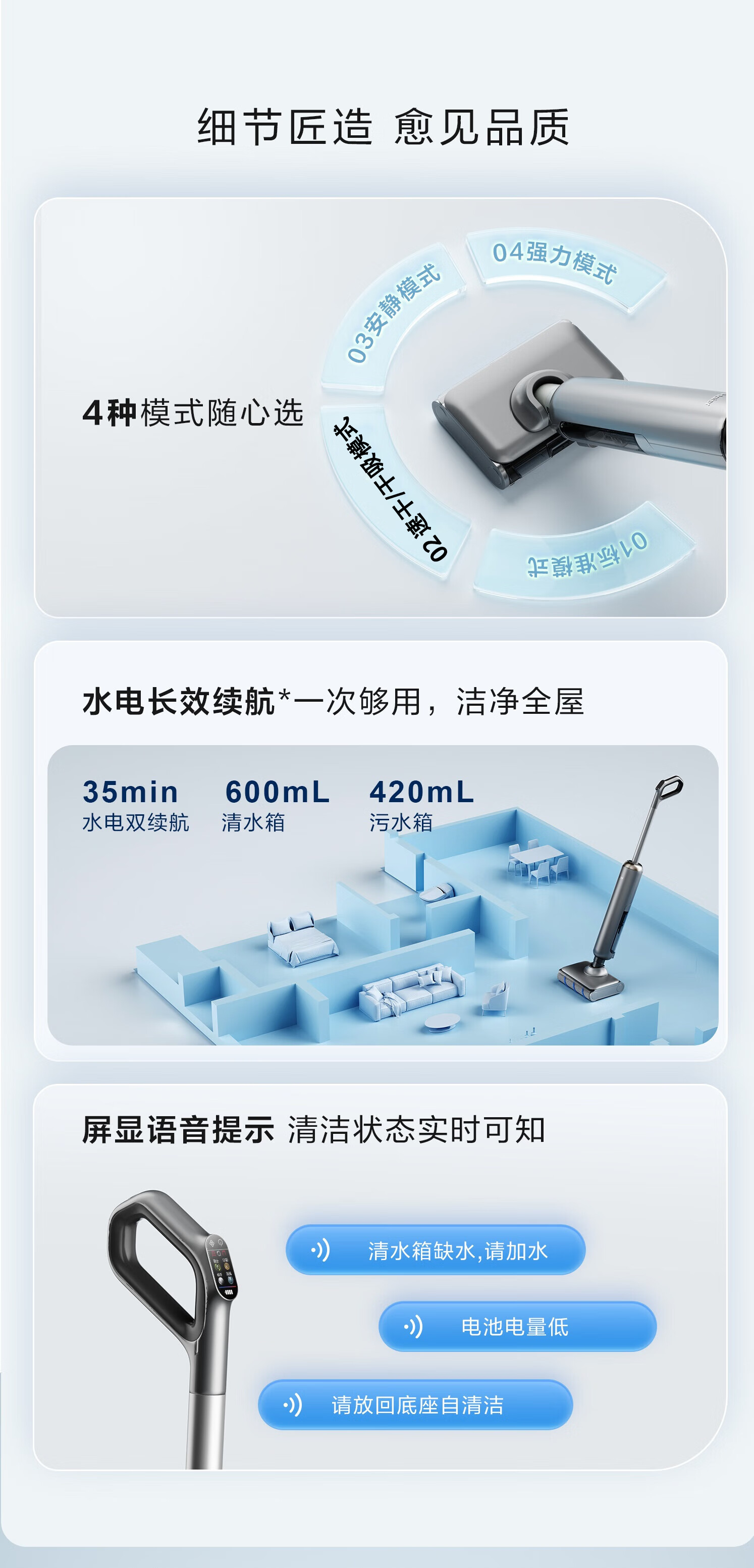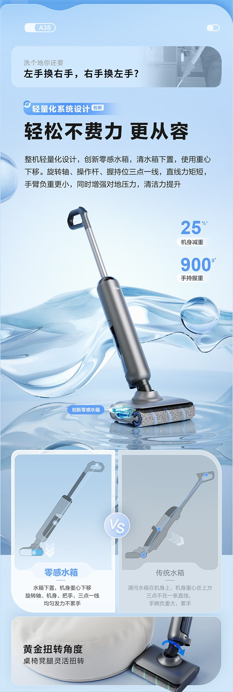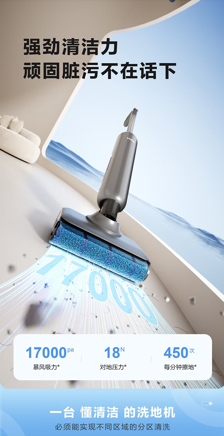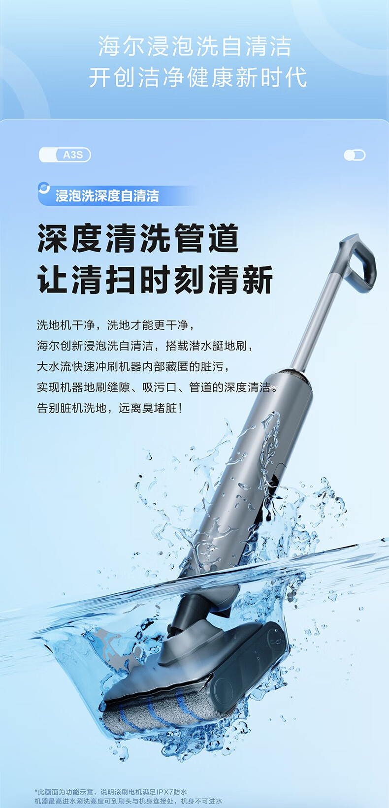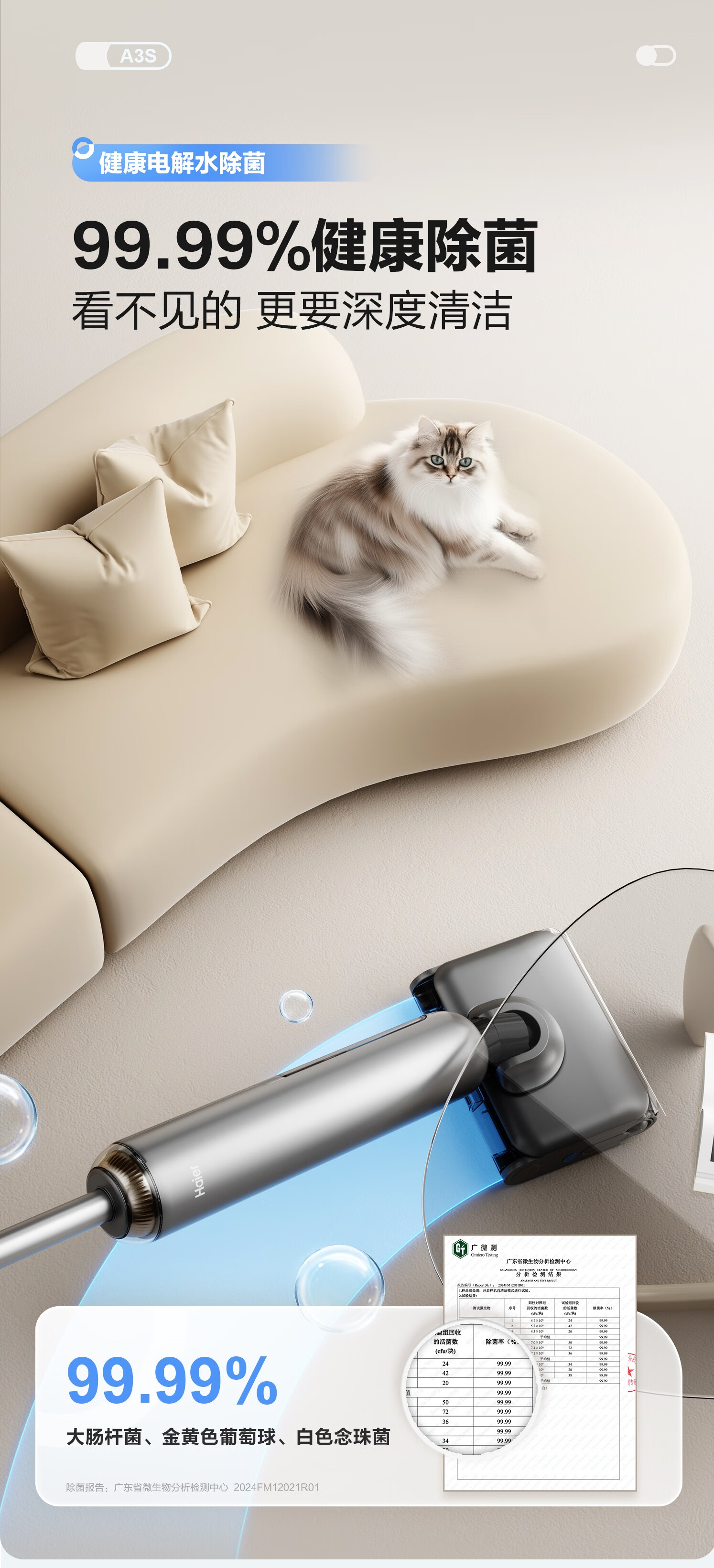 海尔家用洗地机A3S高温70°热风烘干180°平躺防缠绕智能吸拖一体自动清洁洗扫地拖地机除菌手持吸尘器 A3S(典雅钢琴烤漆灰版)
