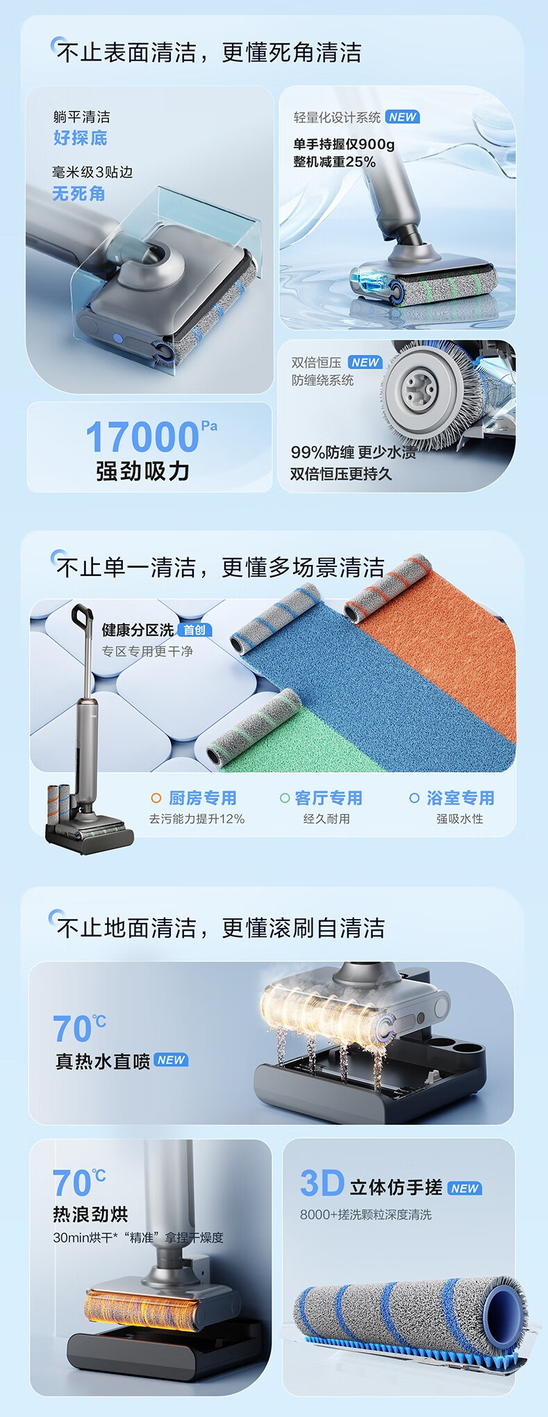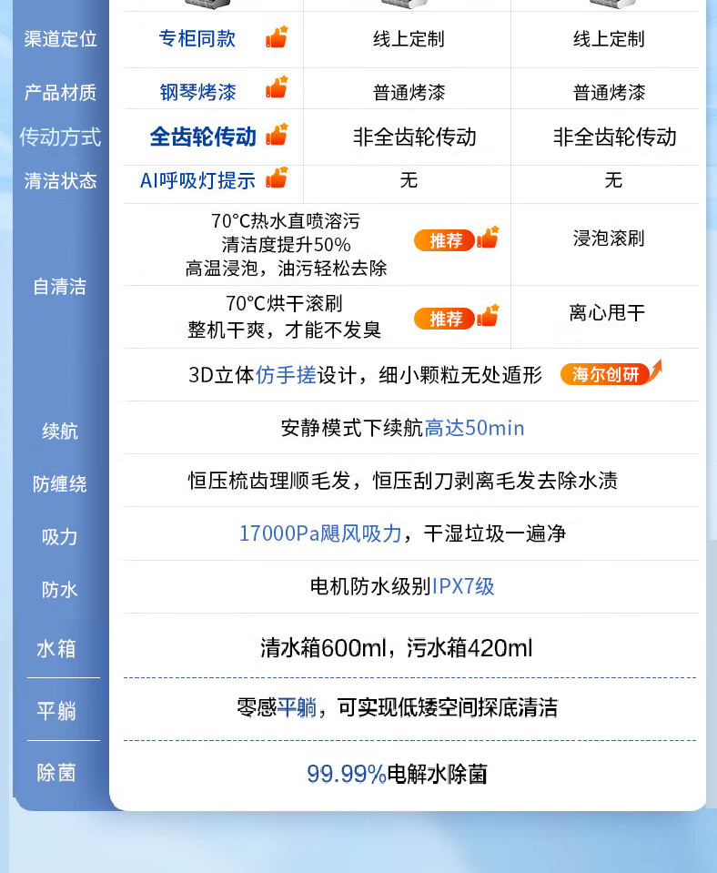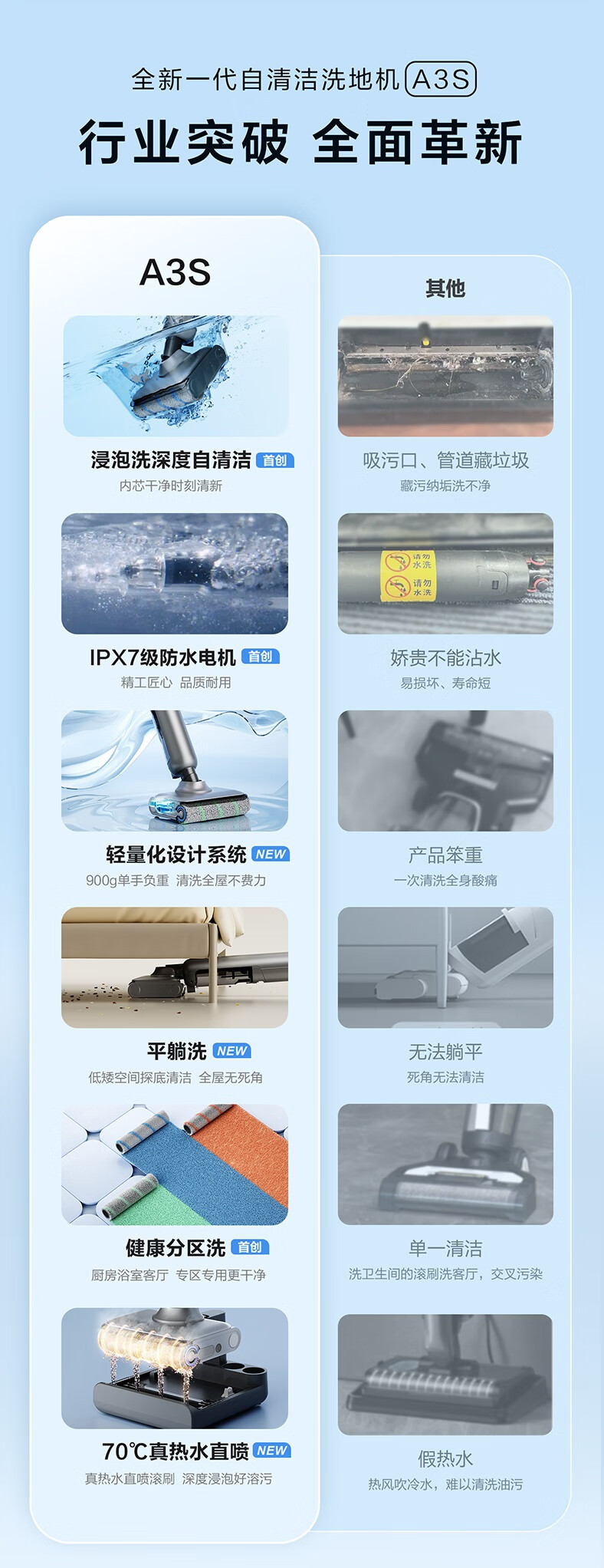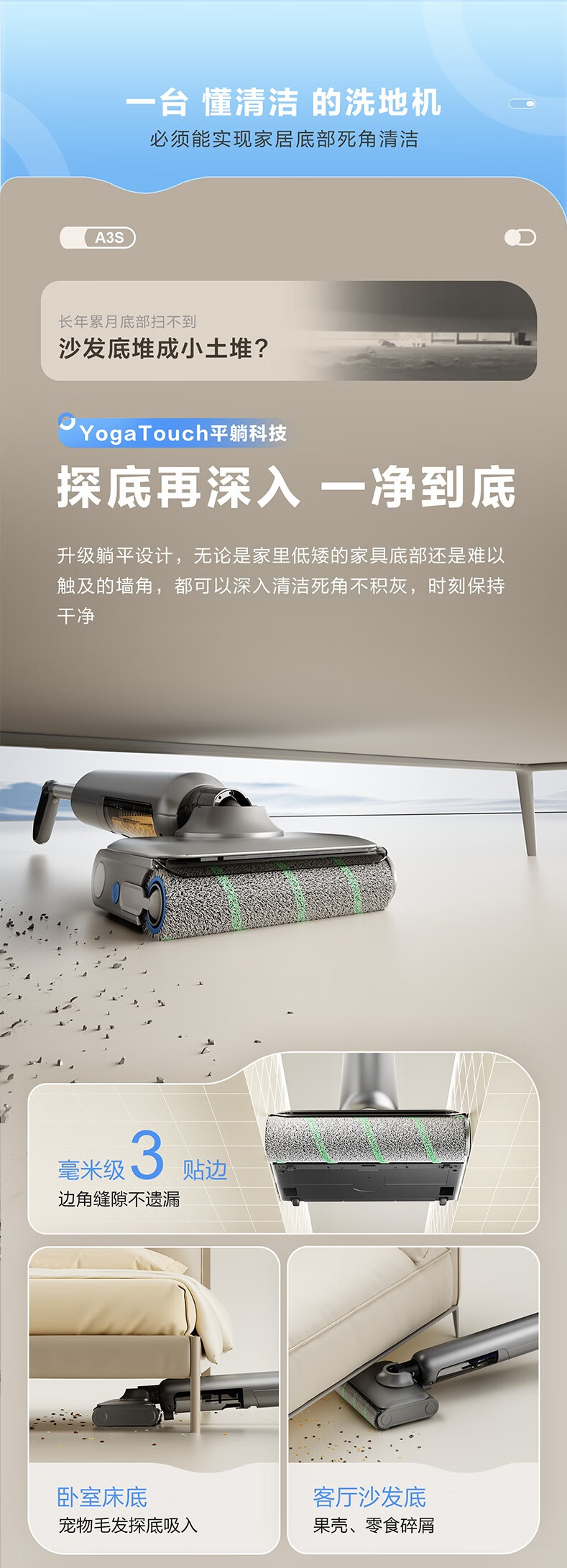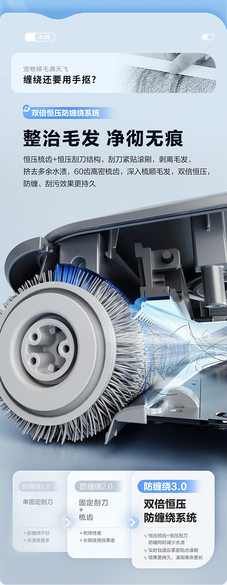 海尔家用洗地机A3S高温70°热风烘干180°平躺防缠绕智能吸拖一体自动清洁洗扫地拖地机除菌手持吸尘器 A3S(典雅钢琴烤漆灰版)