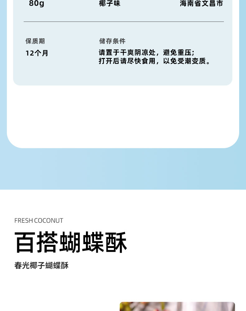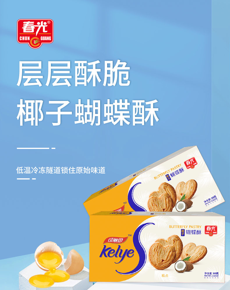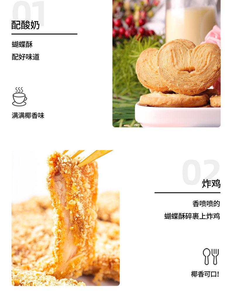 椰子蝴蝶酥80g*3盒 酥脆饼干