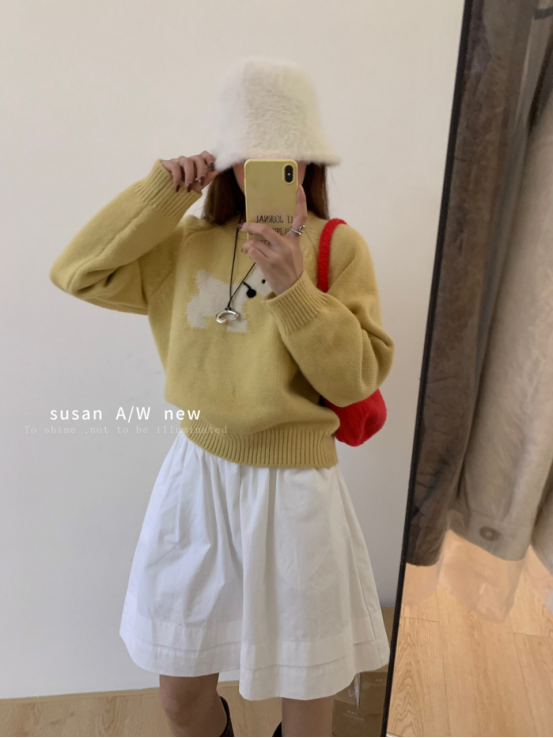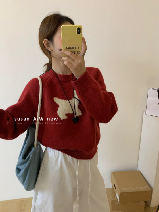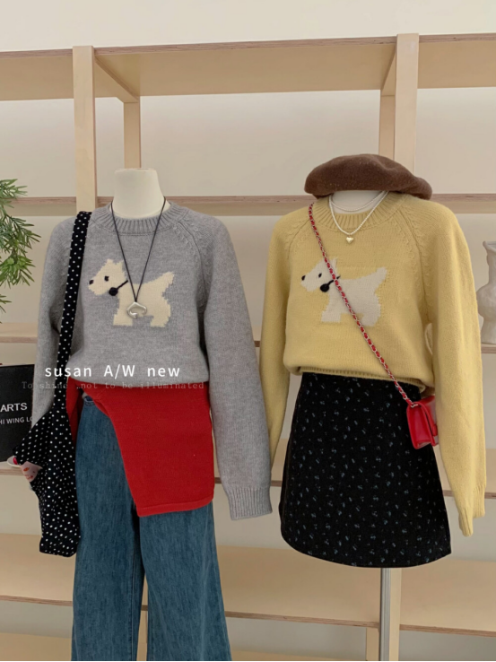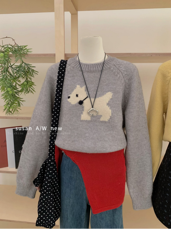😍😍【岚可可韩版减龄卡通小狗圆领毛衣】🌟1、可爱俏皮的卡通小狗图案💯,亮眼夺目,👉提升整衣设计亮点和造型感🌸🌸🌸!