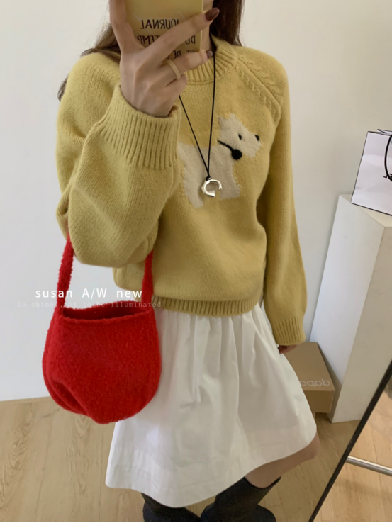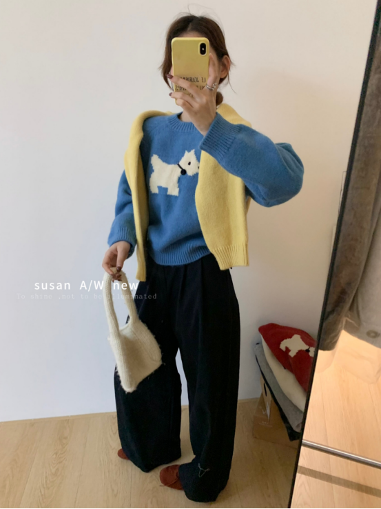 𝐳𝐡𝐢愈感满昏的小狗可爱毛衣 轻松打破秋冬沉闷~ 胸前系绳小狗图案软萌可爱~ 上身元气减龄𝐳𝐡𝐢愈壹切烦恼!
