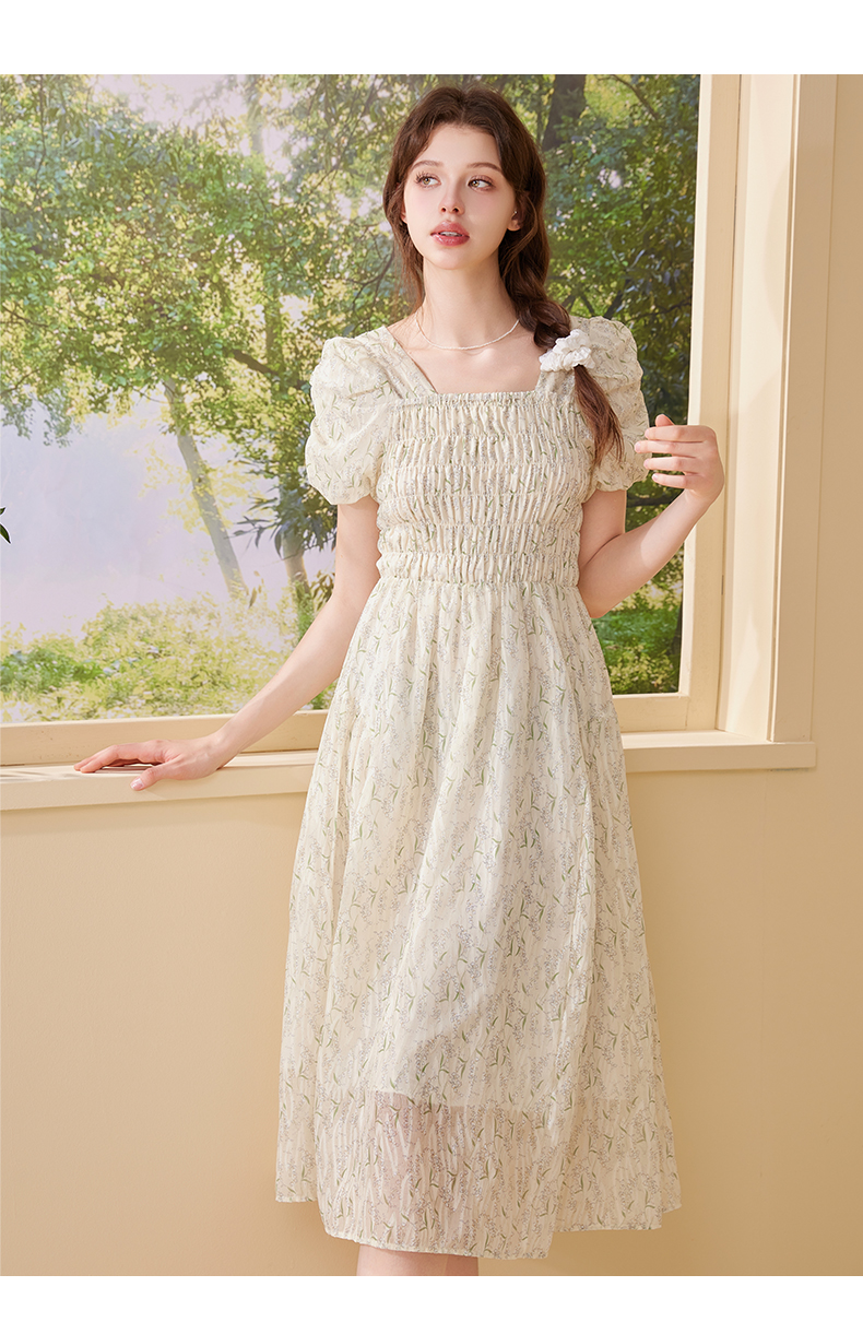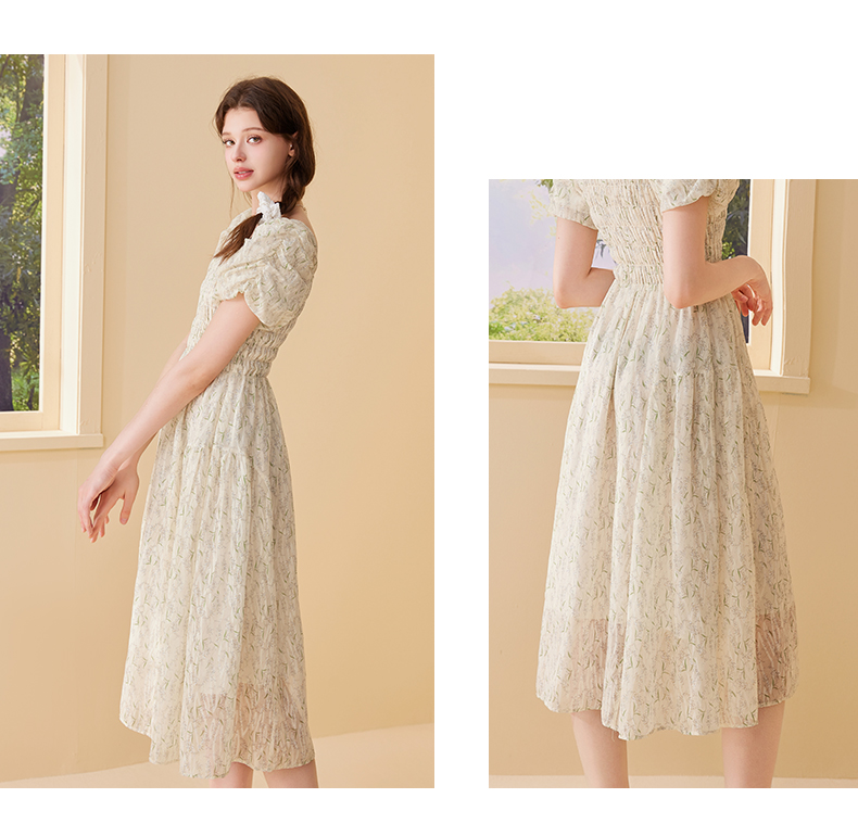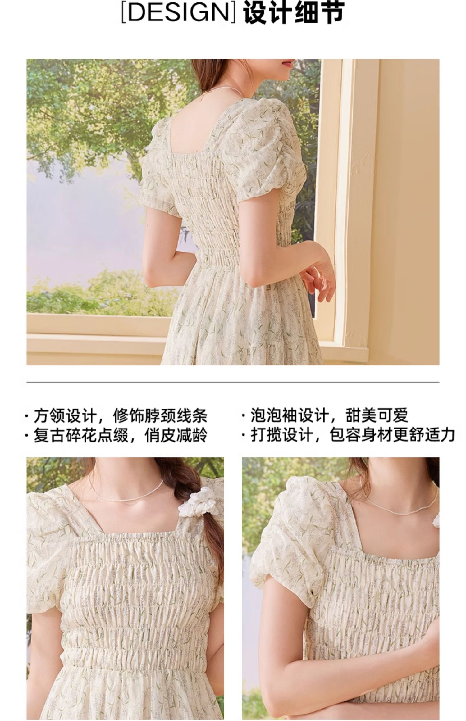 mc2碎花显瘦显高连衣裙女装2024夏季新款法式莫奈风温柔时尚气质