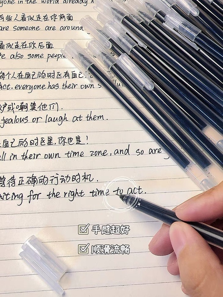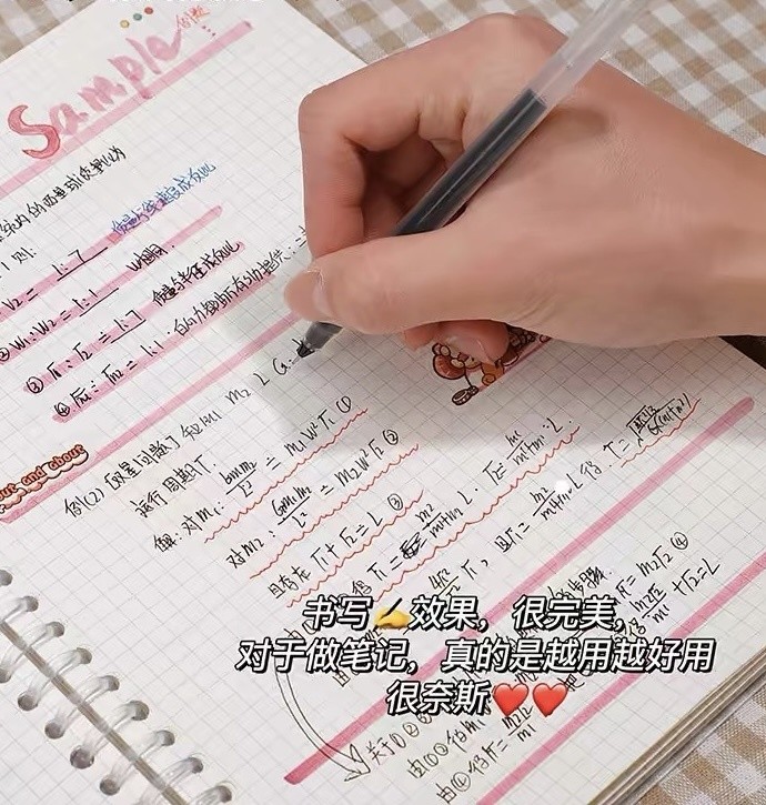 书写流畅全程书写,不漏墨、不断墨、不淡墨 写字很顺滑真的真的巨好用 根本不担心会断墨,可以用好久啦 喜欢直液式走珠笔的学生党冲冲冲 拿上笔就瞬间想学习那种