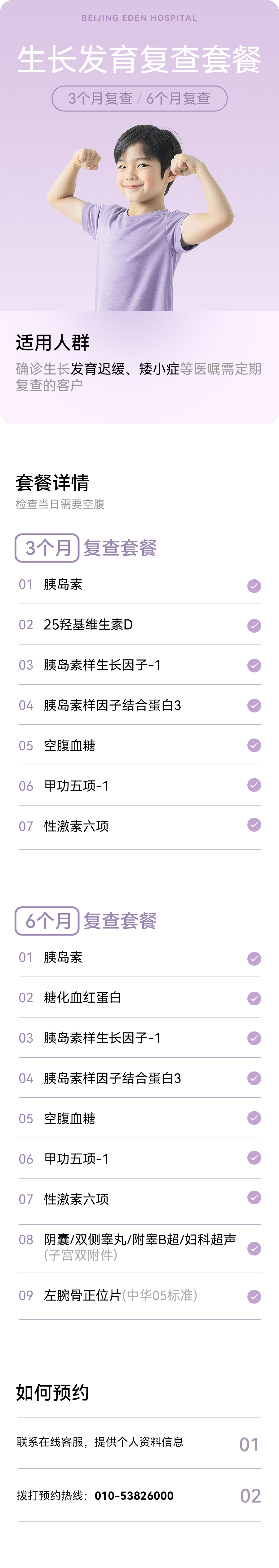 儿童生长发育复查套餐(3个月复查/6个月复查)