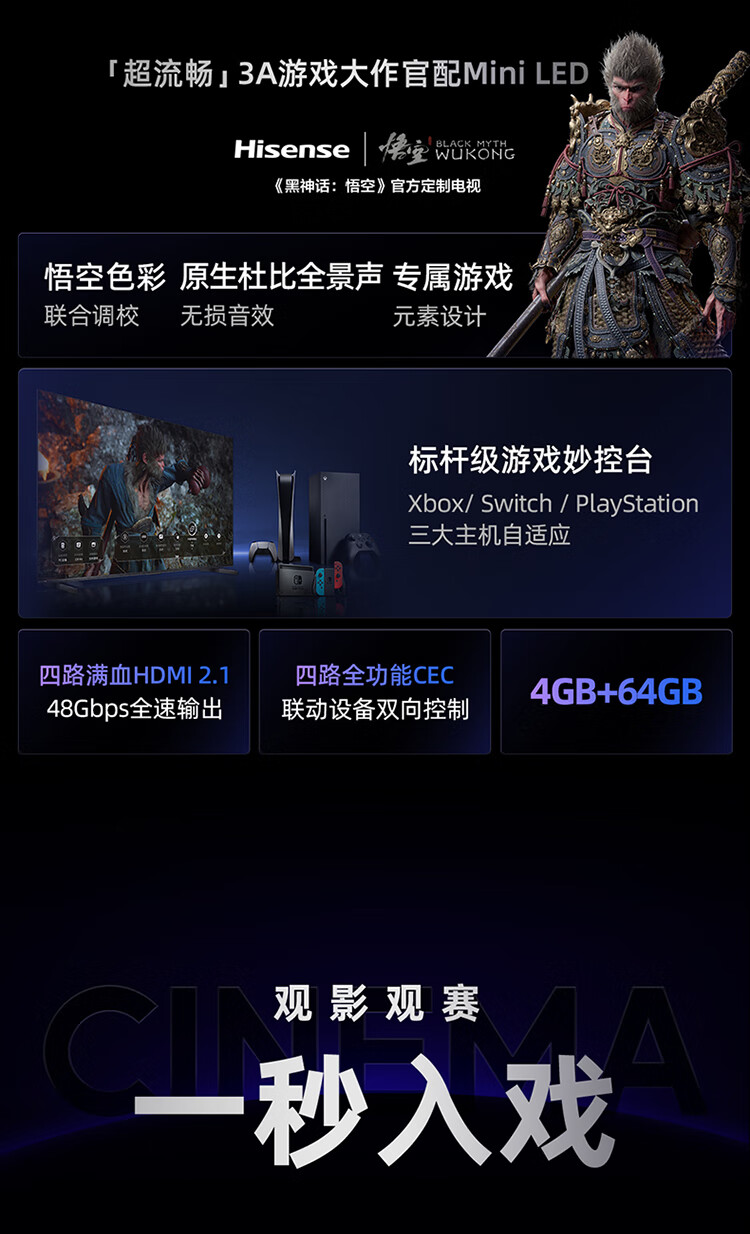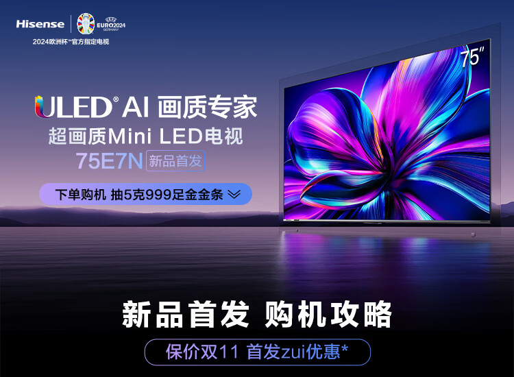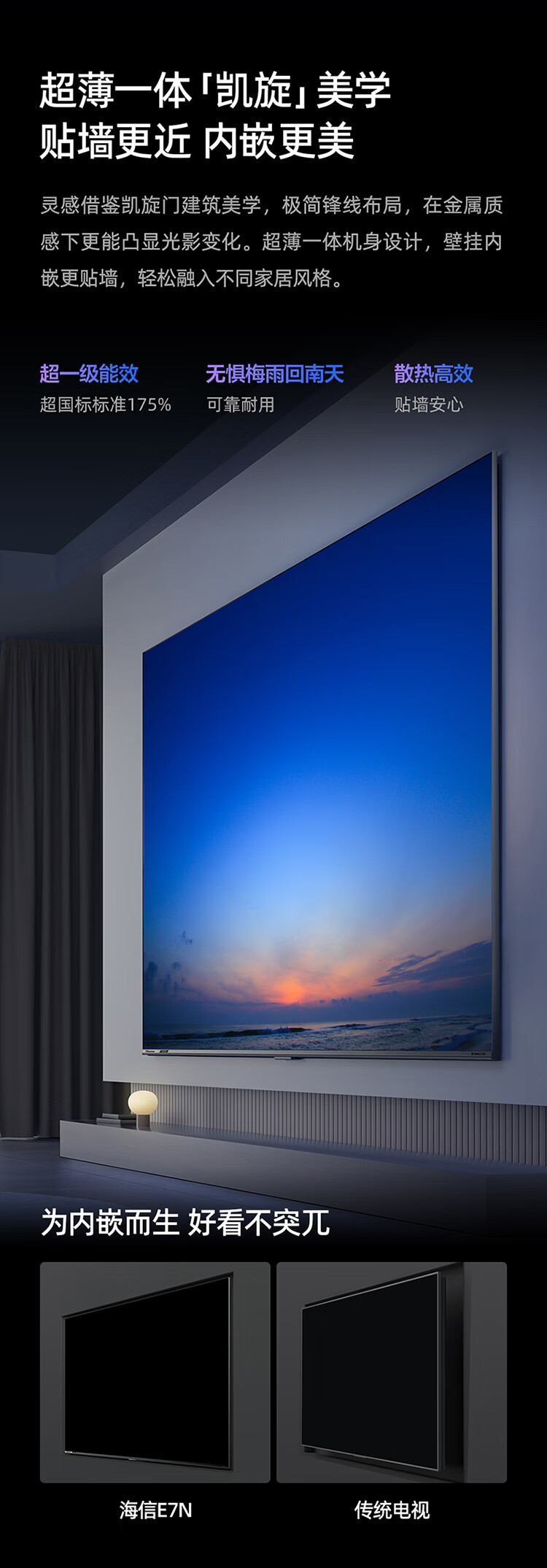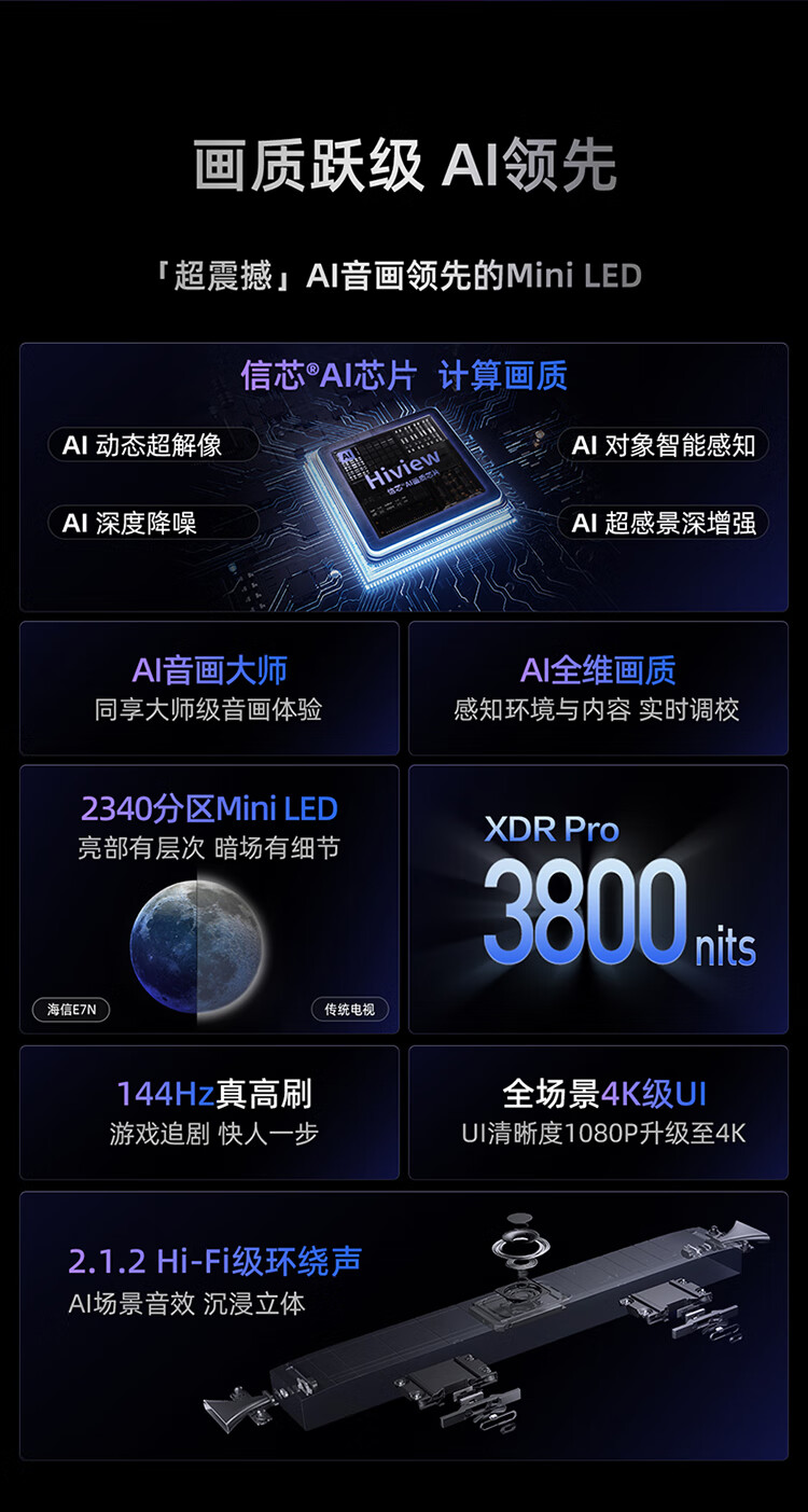 海信电视75E7N 75英寸 ULED超画质 信芯AI芯片 2340分区Mini LED 超薄内嵌巨幕大屏 以旧换新能效补贴